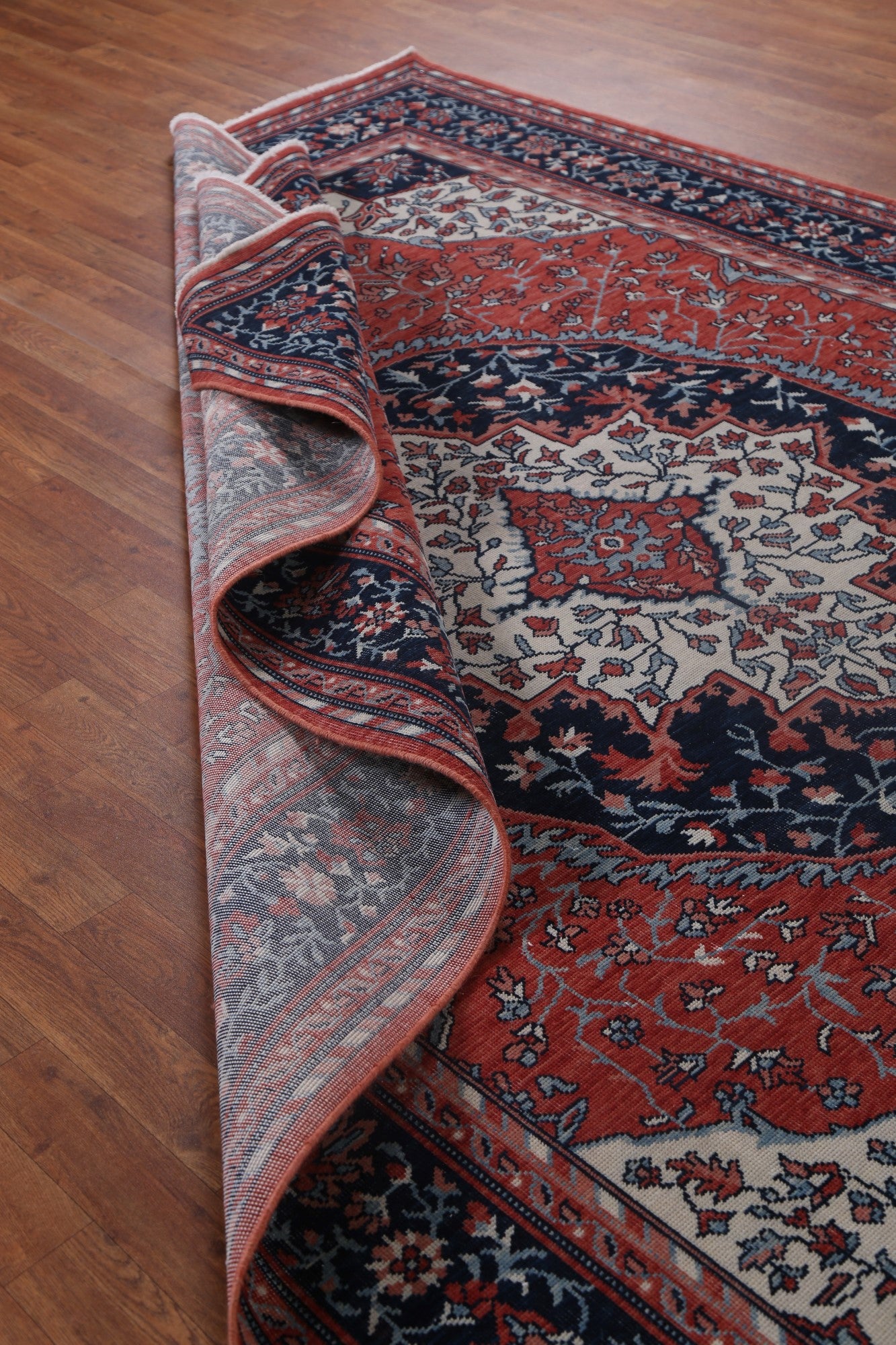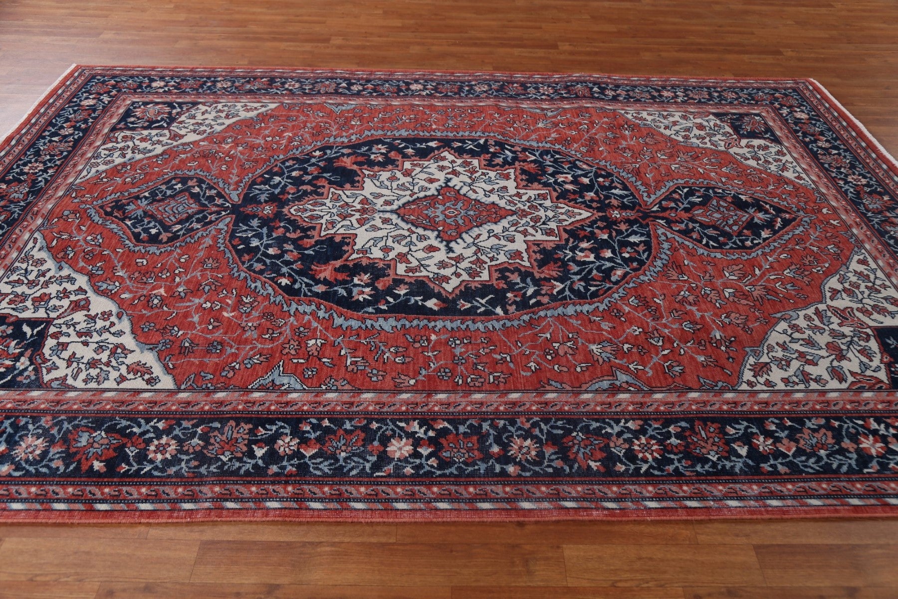A Beautiful Genuine Turkey Sarouk (Farahan) rug is Hand Knotted by skillful weavers in Turkey with 100% Wool Material. This rug is in New, First Quality condition. dimensions are 9' 9'' X 7' 0'' in foot and 297 X 213 in centimeter. the primary color is Red.
