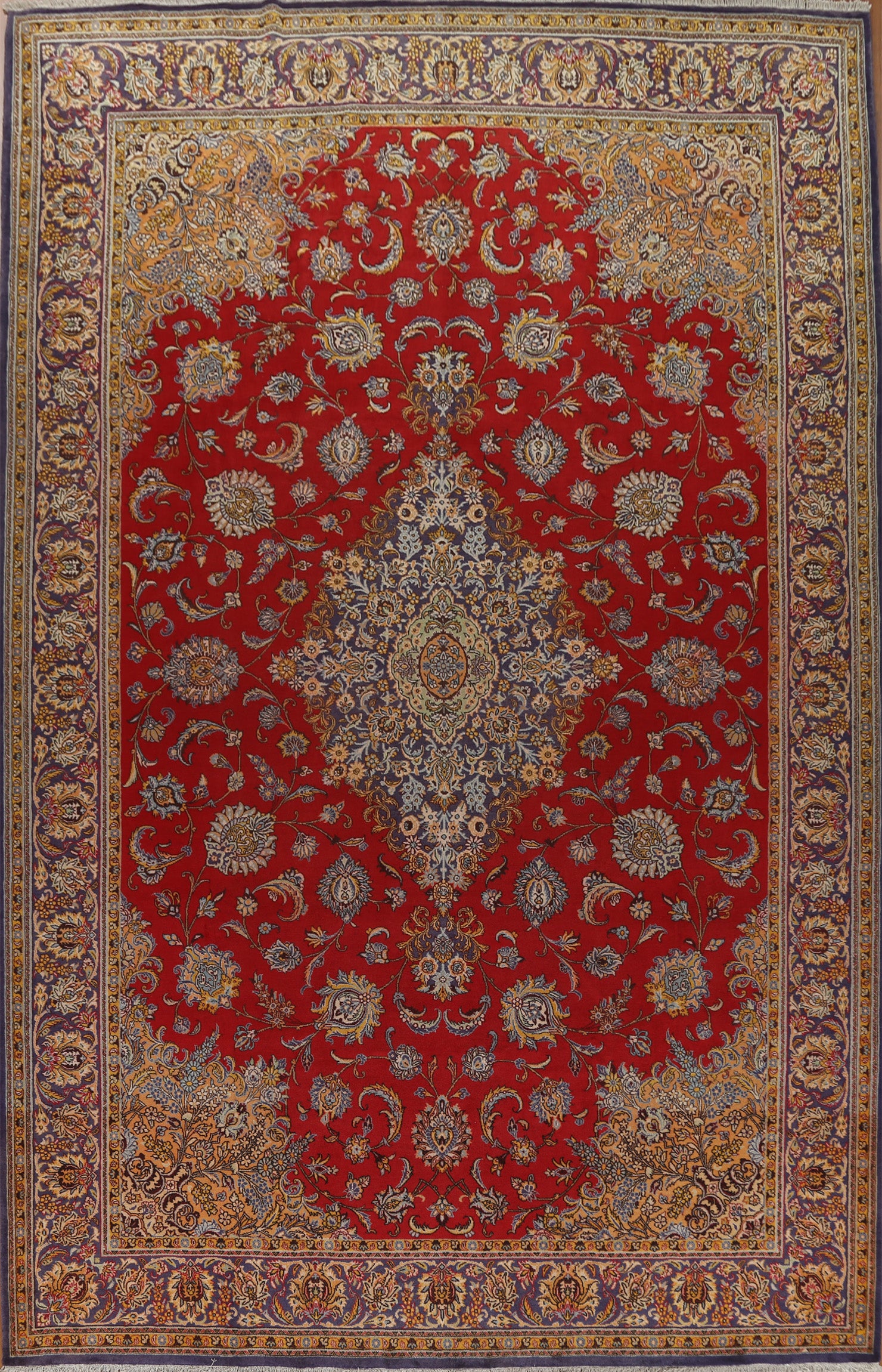 A Beautiful Genuine Persia ( Persia ) Shahreza rug is Hand Knotted by skillful weavers in Persia ( Persia ) with 100% Wool Material. This rug is in Excellent condition. dimensions are 13' 10'' X 10' 4'' in foot and 422 X 315 in centimeter. the primary color is Red.