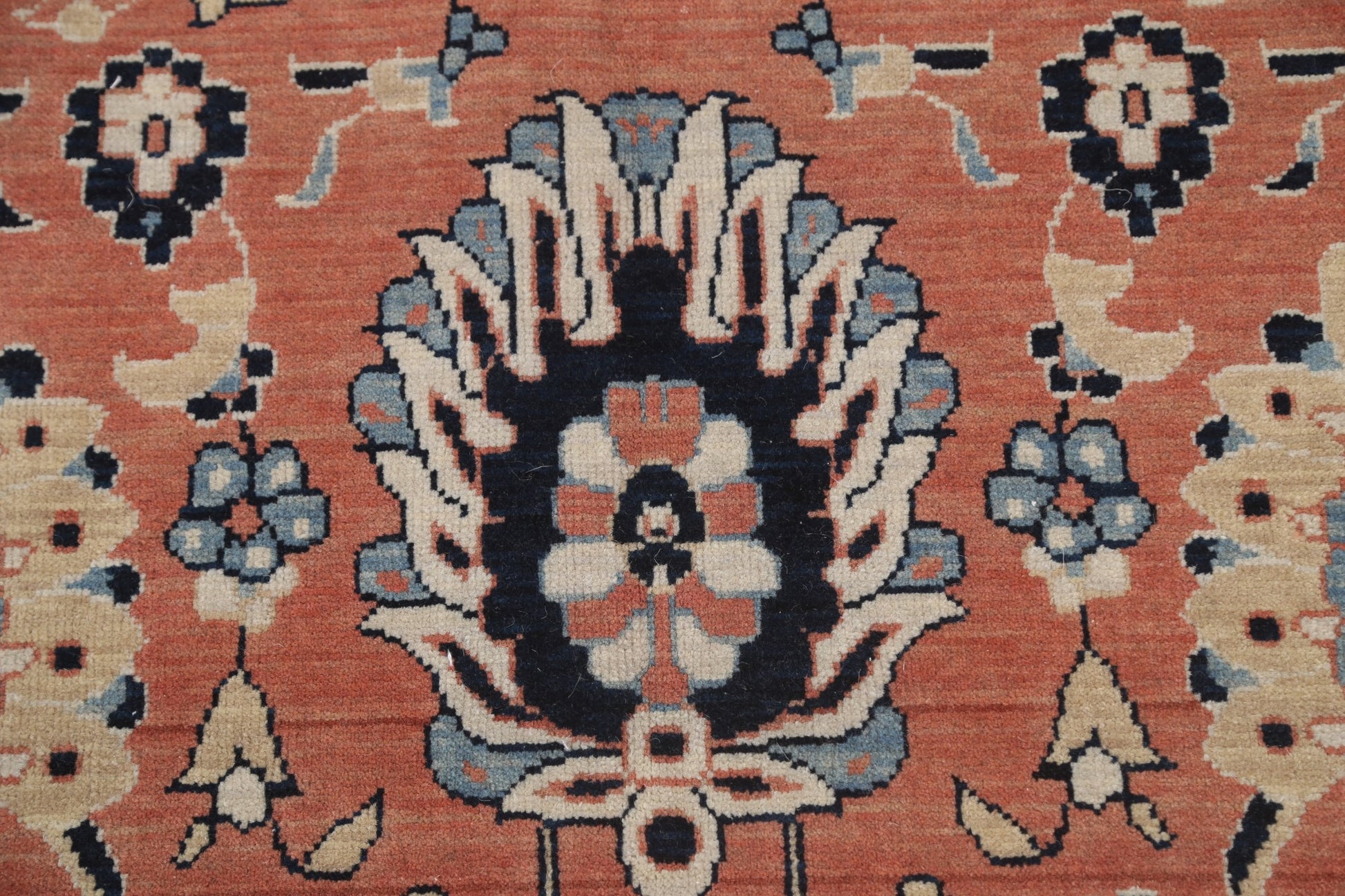 A Beautiful Genuine Turkey Sultanabad (Ziegler) rug is Hand Knotted by skillful weavers in Turkey with 100% Wool Material. This rug is in New, First Quality condition. dimensions are 12' 11'' X 9' 10'' in foot and 394 X 300 in centimeter. the primary color is Coral.