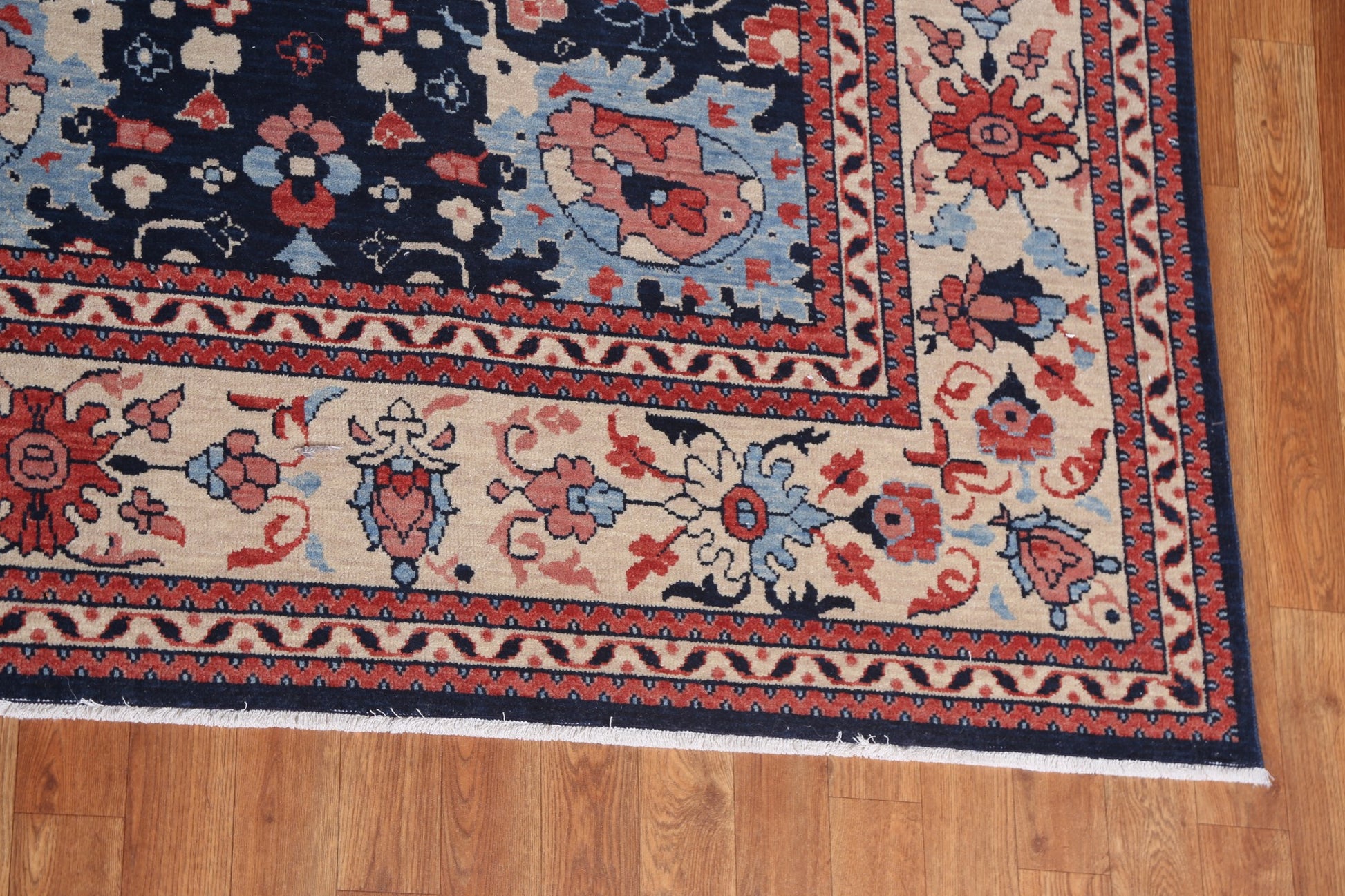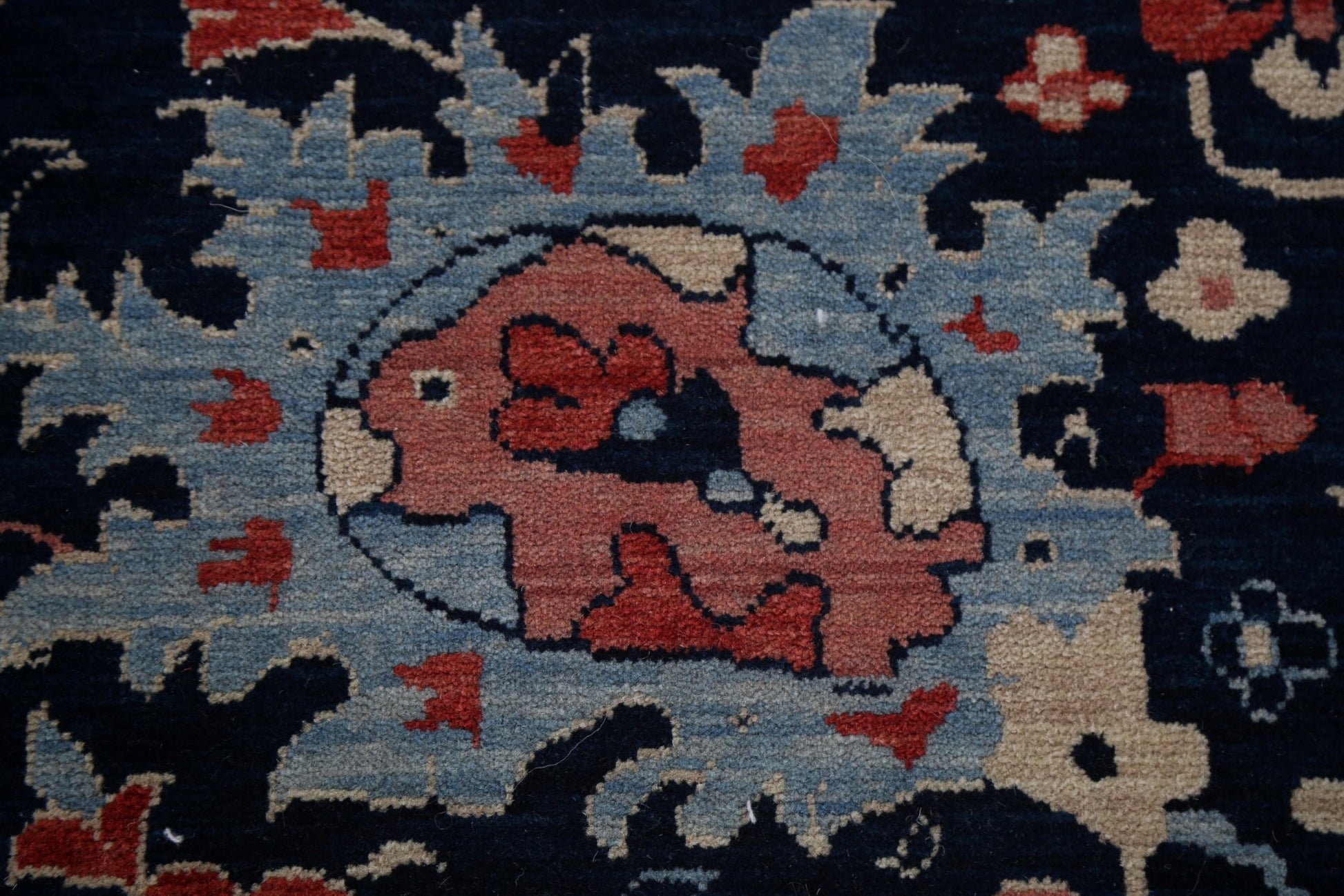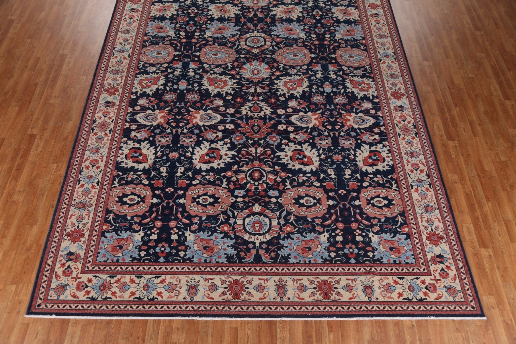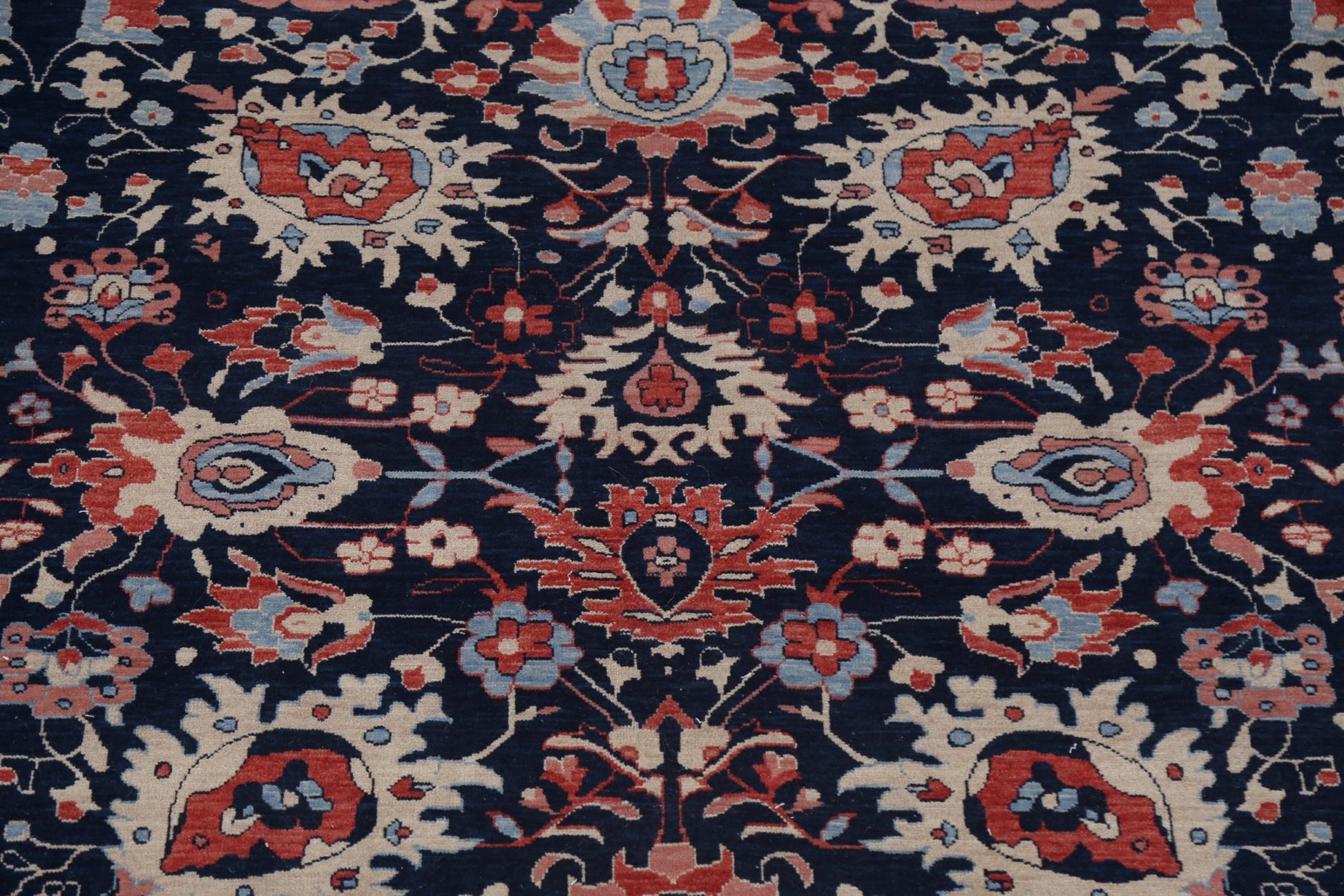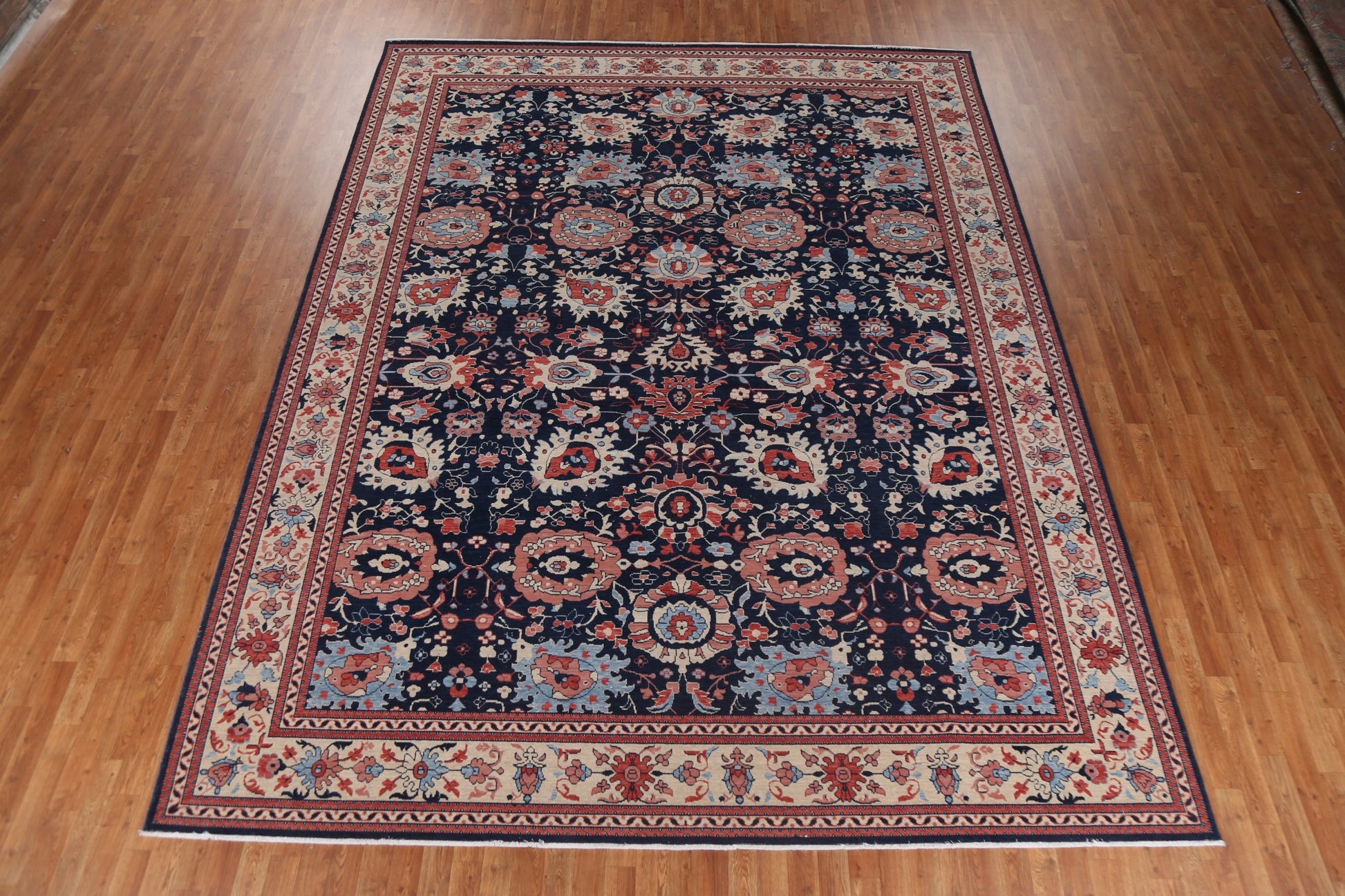 A Beautiful Genuine Turkey Sultanabad (Ziegler) rug is Hand Knotted by skillful weavers in Turkey with 100% Wool Material. This rug is in New, First Quality condition. dimensions are 12' 11'' X 9' 10'' in foot and 394 X 300 in centimeter. the primary color is Navy Blue & Blues.