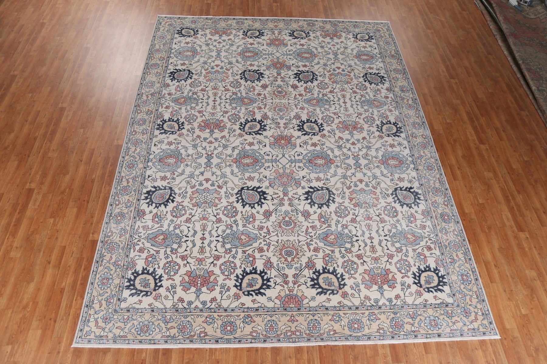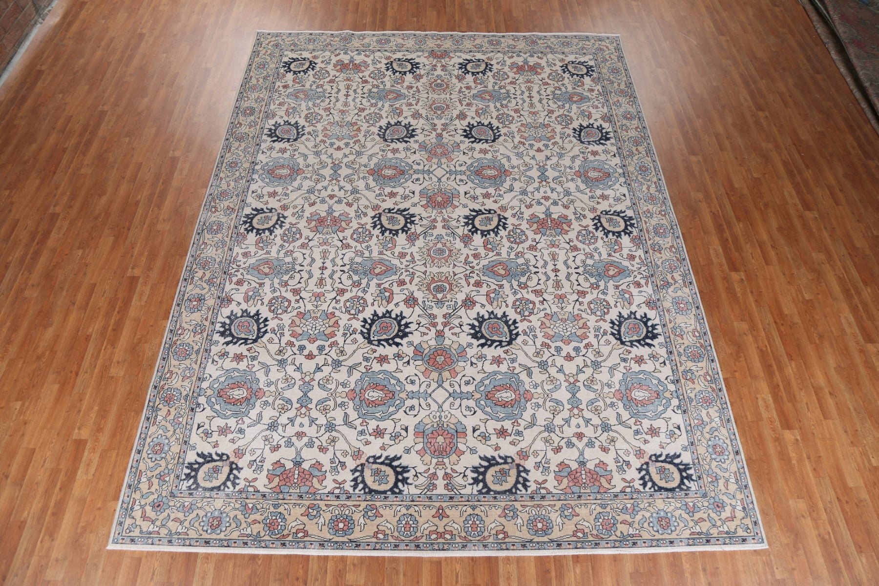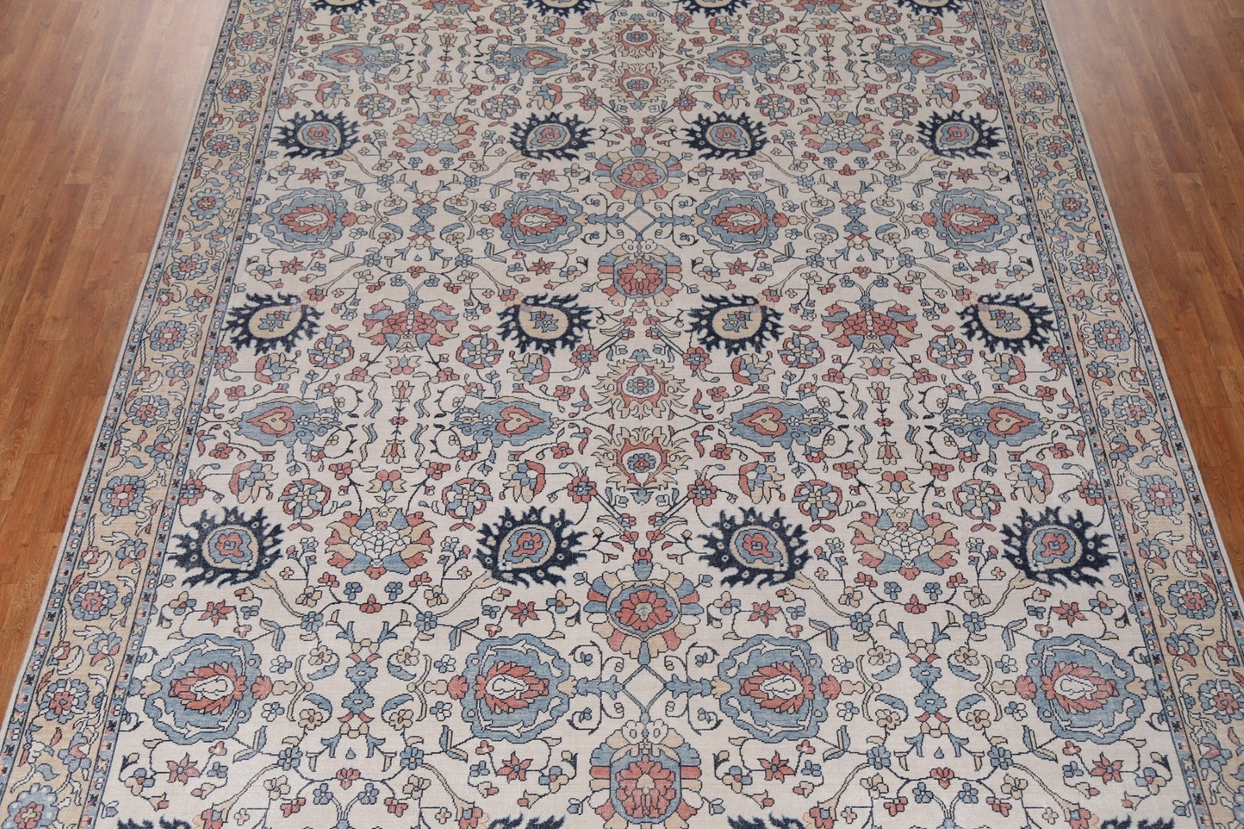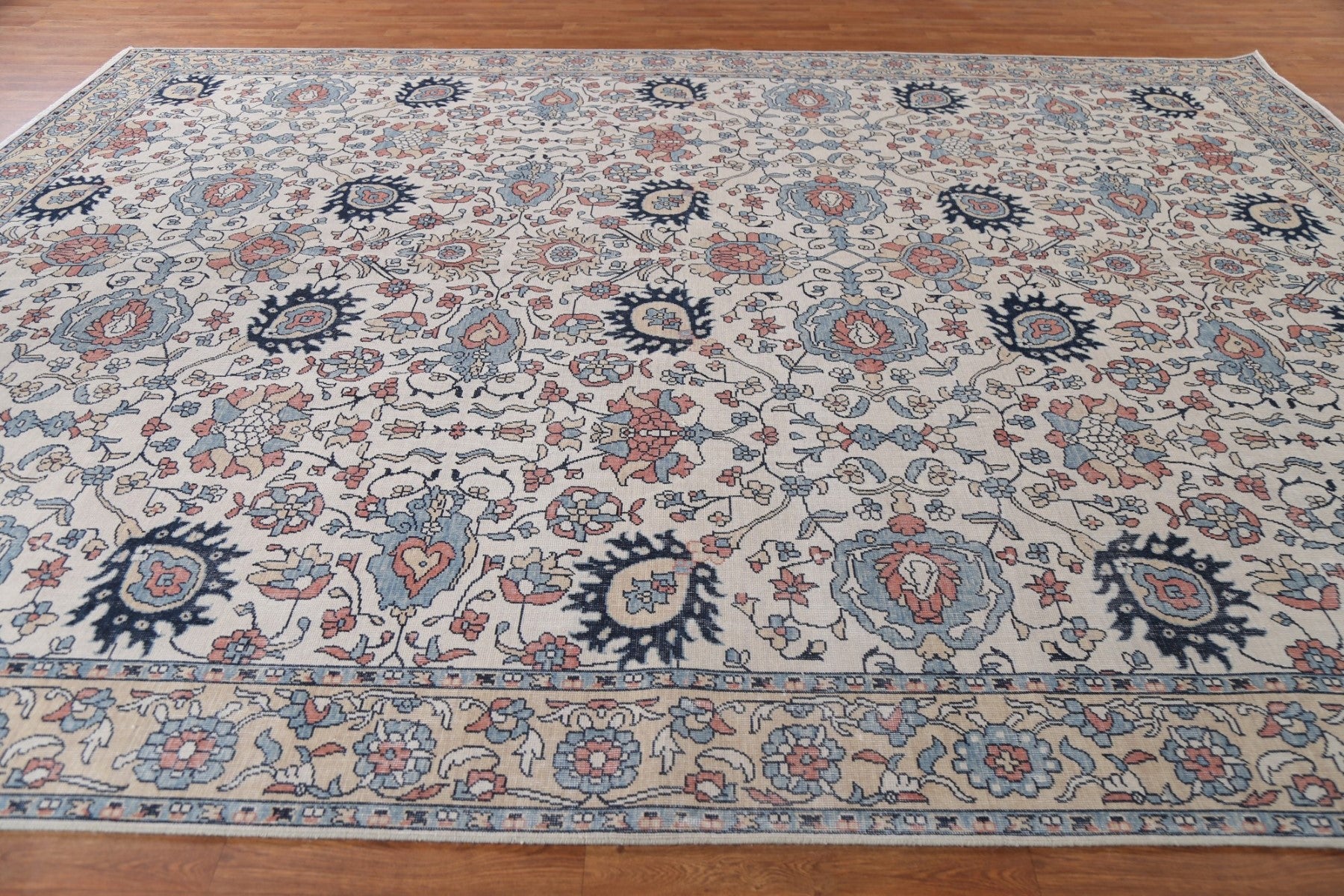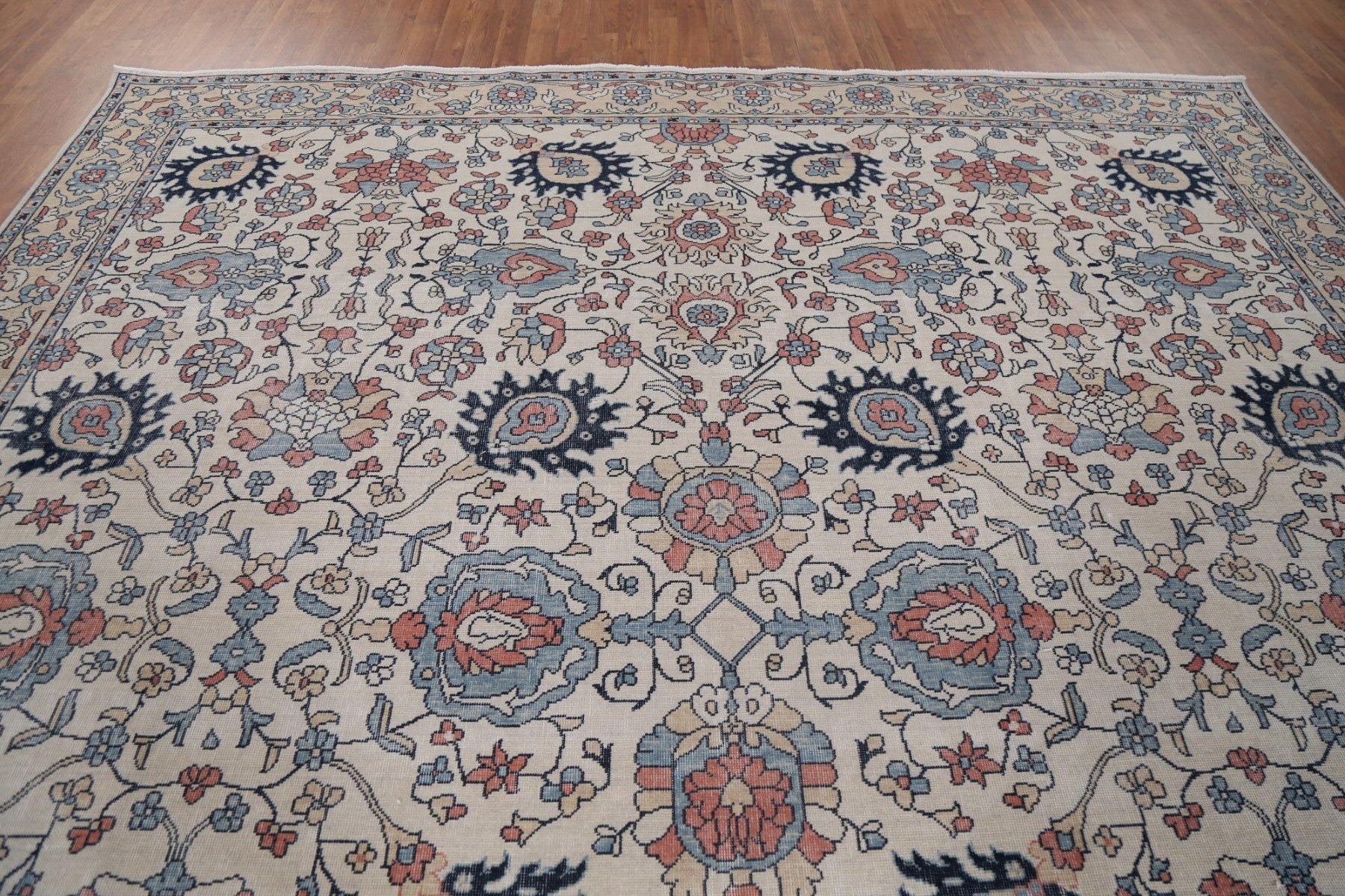 A Beautiful Genuine Turkey Sultanabad (Ziegler) rug is Hand Knotted by skillful weavers in Turkey with 100% Wool Material. This rug is in New, First Quality condition. dimensions are 12' 11'' X 9' 10'' in foot and 394 X 300 in centimeter. the primary color is Beige & Ivories.