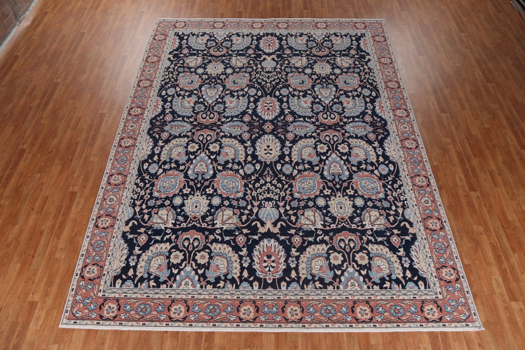 A Beautiful Genuine Turkey Sultanabad (Ziegler) rug is Hand Knotted by skillful weavers in Turkey with 100% Wool Material. This rug is in New, First Quality condition. dimensions are 12' 11'' X 9' 10'' in foot and 394 X 300 in centimeter. the primary color is Navy Blue & Blues.