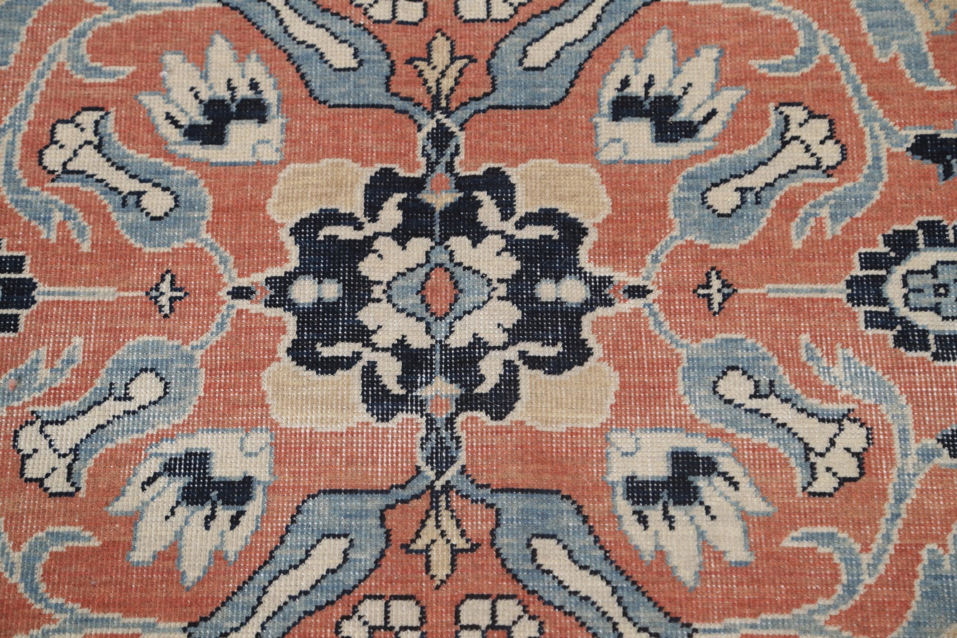 A Beautiful Genuine Turkey Sultanabad (Ziegler) rug is Hand Knotted by skillful weavers in Turkey with 100% Wool Material. This rug is in New, First Quality condition. dimensions are 12' 11'' X 9' 10'' in foot and 394 X 300 in centimeter. the primary color is Coral.