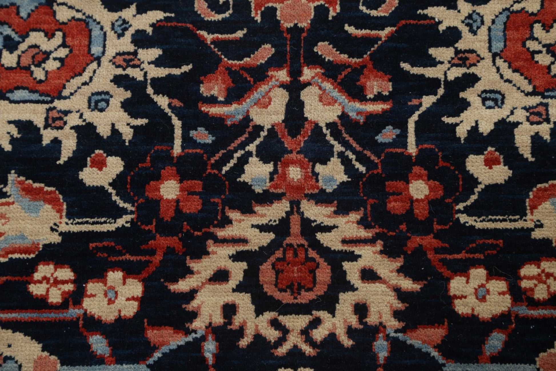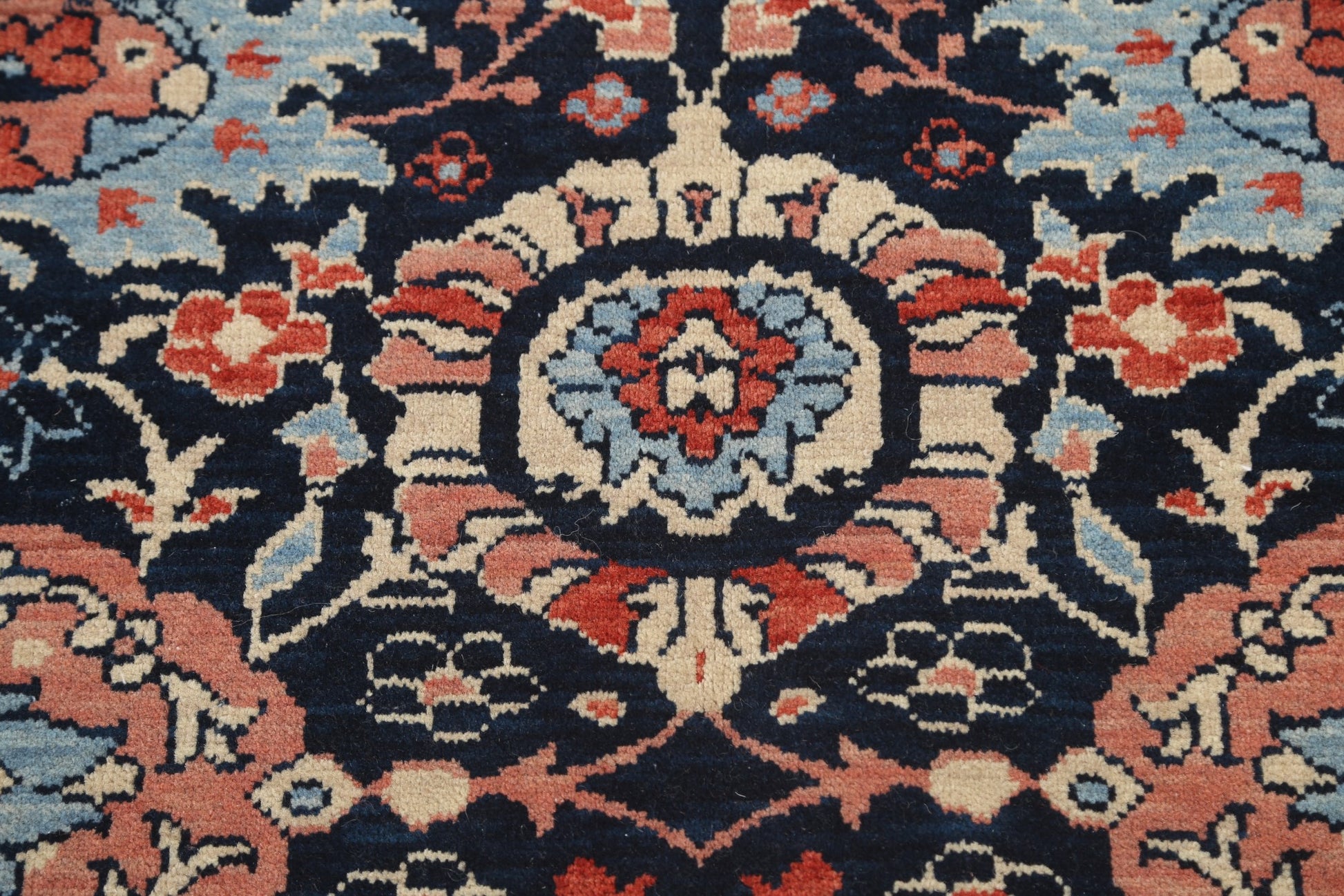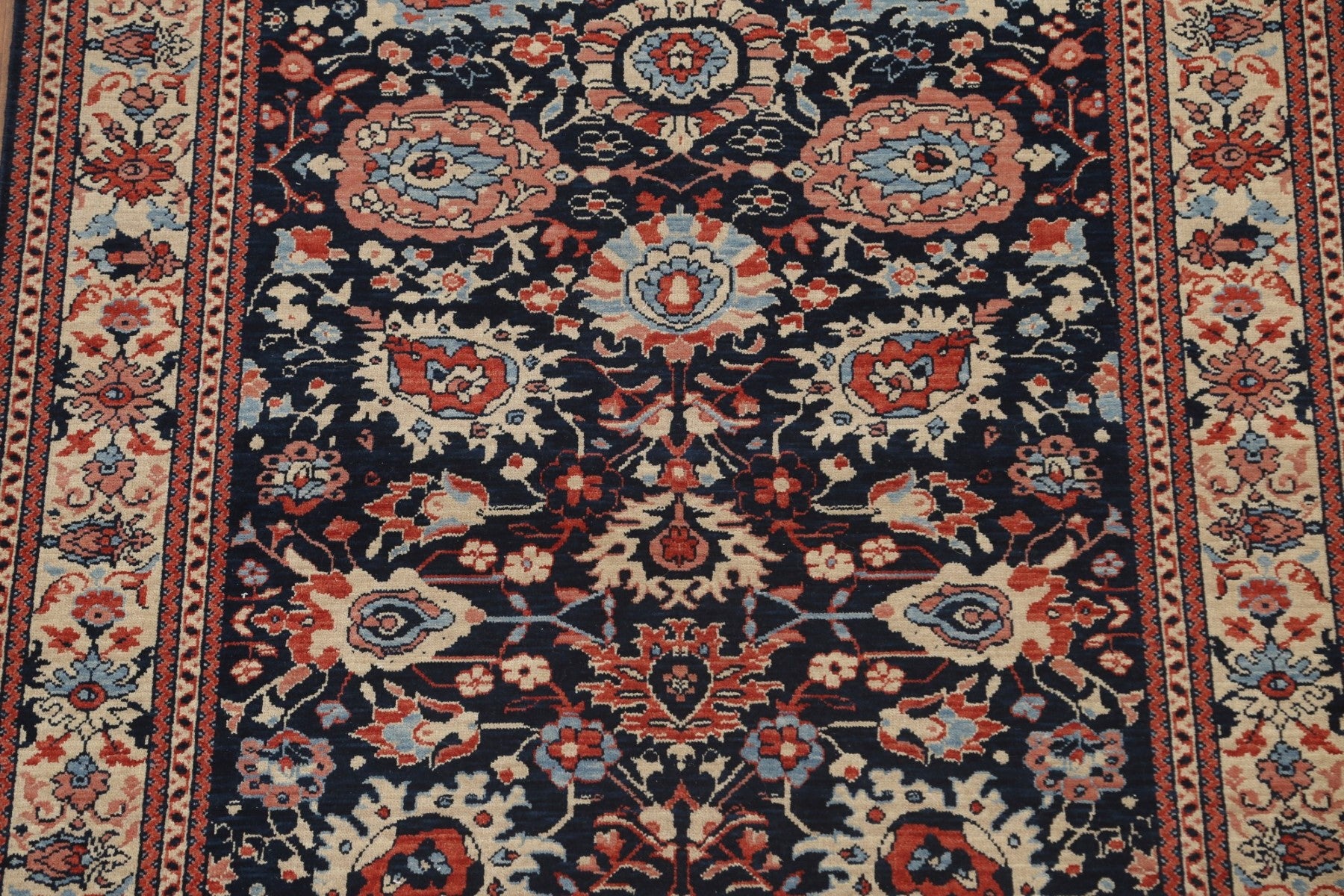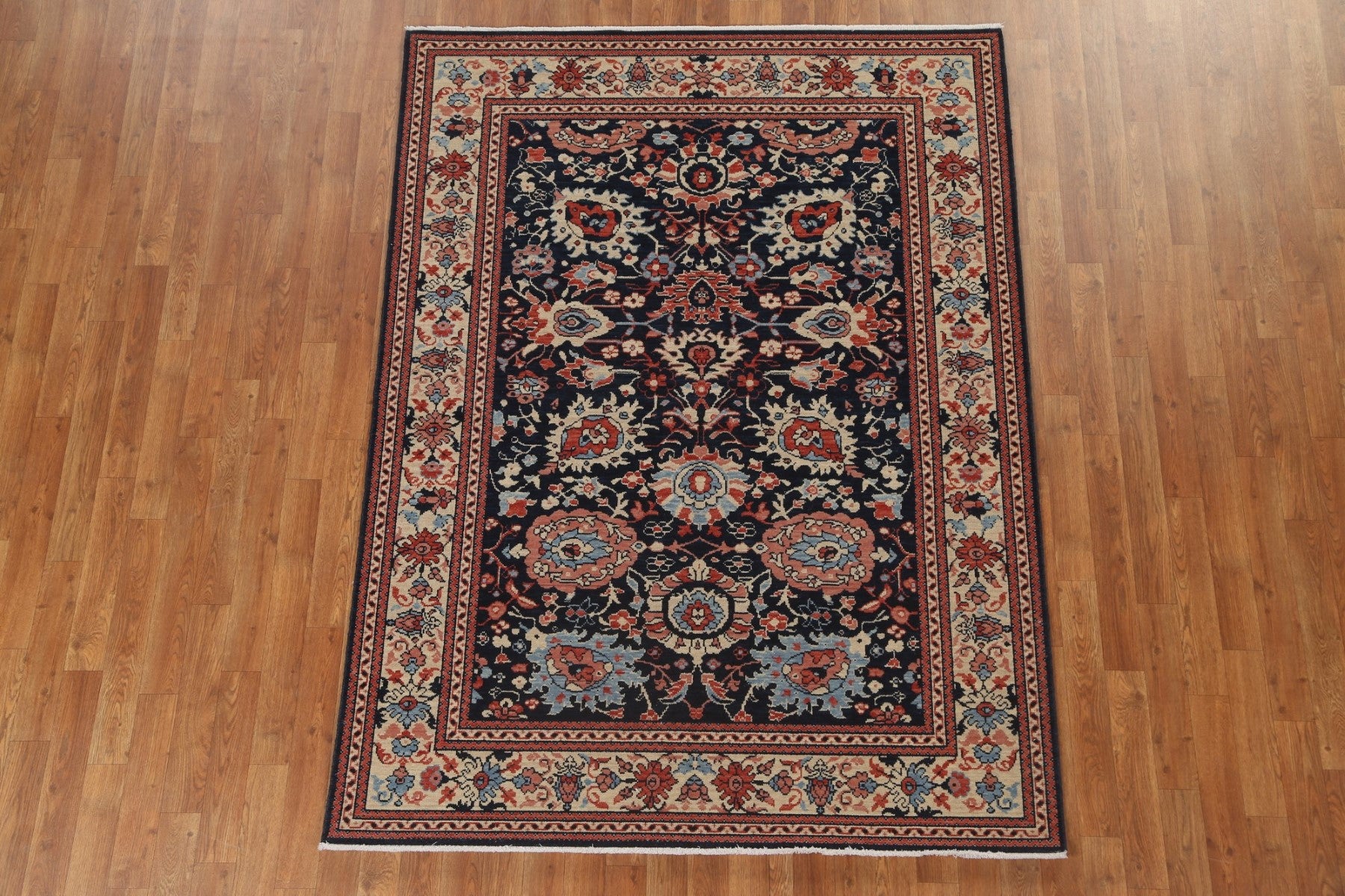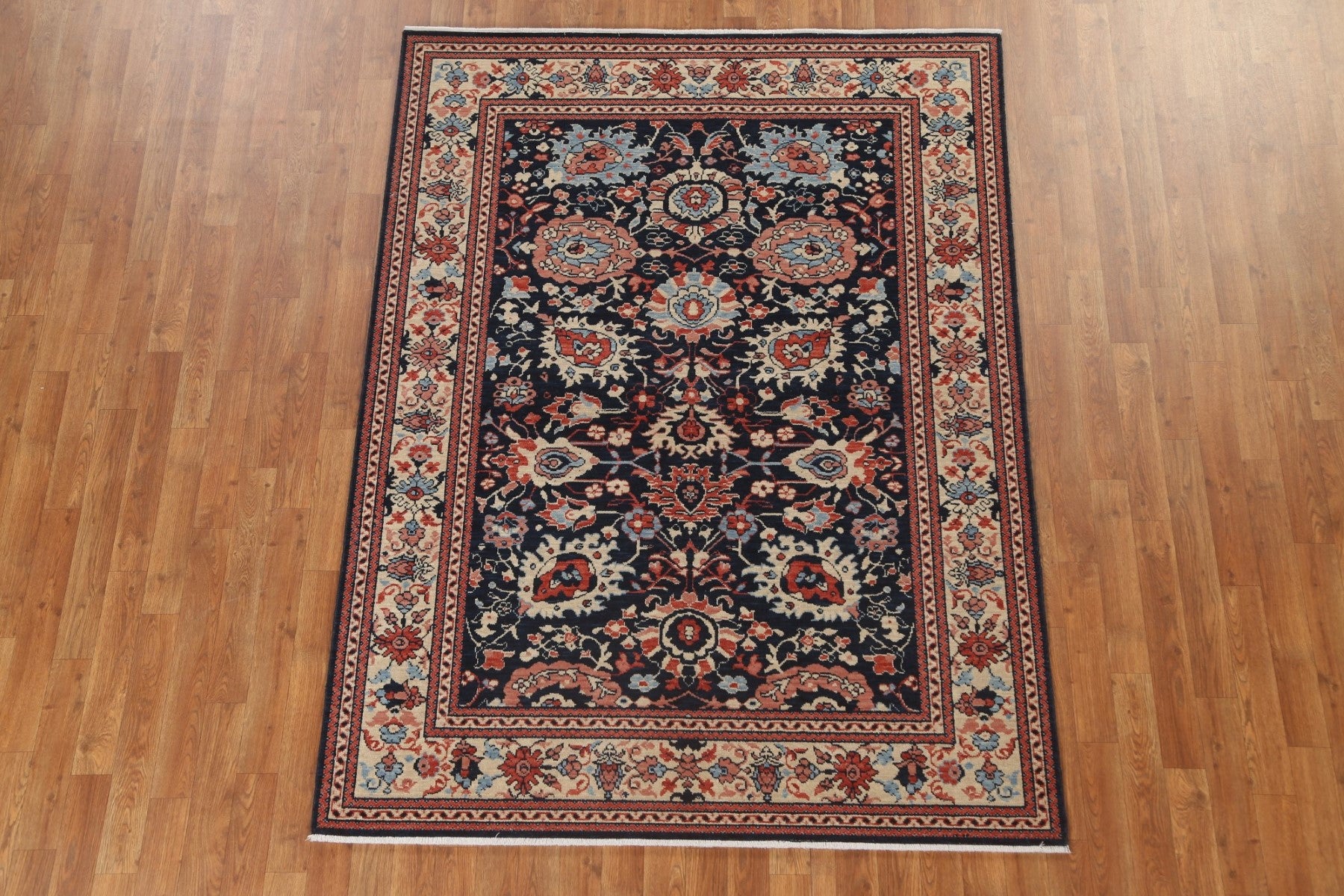 A Beautiful Genuine Turkey Sultanabad (Ziegler) rug is Hand Knotted by skillful weavers in Turkey with 100% Wool Material. This rug is in New, First Quality condition. dimensions are 6' 10'' X 5' 0'' in foot and 208 X 152 in centimeter. the primary color is Navy Blue & Blues.