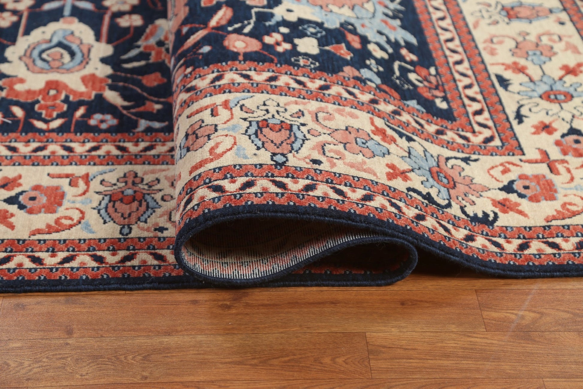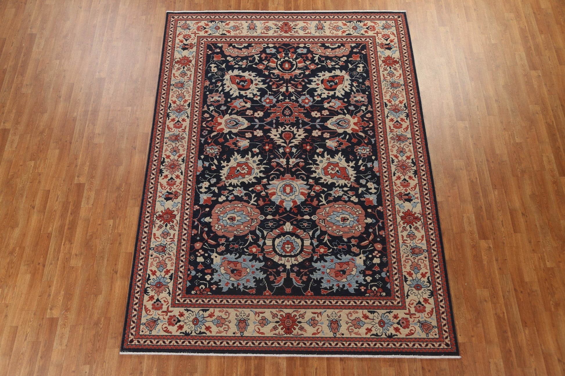 A Beautiful Genuine Turkey Sultanabad (Ziegler) rug is Hand Knotted by skillful weavers in Turkey with 100% Wool Material. This rug is in New, First Quality condition. dimensions are 9' 9'' X 7' 0'' in foot and 297 X 213 in centimeter. the primary color is Navy Blue & Blues.