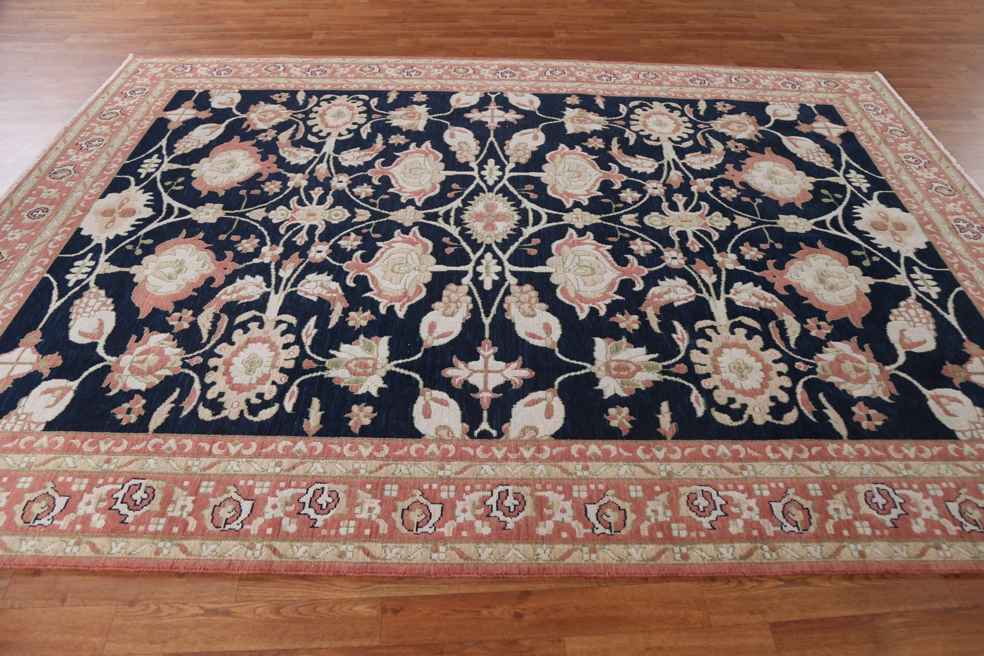 A Beautiful Genuine Turkey Sultanabad (Ziegler) rug is Hand Knotted by skillful weavers in Turkey with 100% Wool Material. This rug is in New, First Quality condition. dimensions are 9' 9'' X 7' 0'' in foot and 297 X 213 in centimeter. the primary color is Navy Blue & Blues.