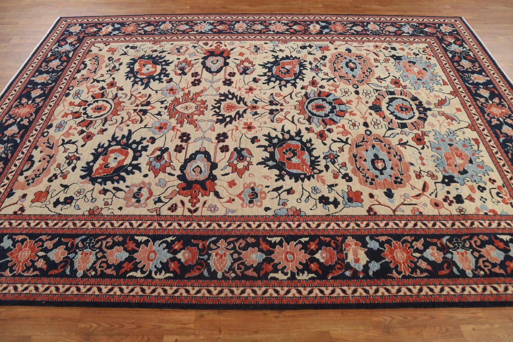 A Beautiful Genuine Turkey Sultanabad (Ziegler) rug is Hand Knotted by skillful weavers in Turkey with 100% Wool Material. This rug is in New, First Quality condition. dimensions are 9' 9'' X 7' 0'' in foot and 297 X 213 in centimeter. the primary color is Beige & Ivories.