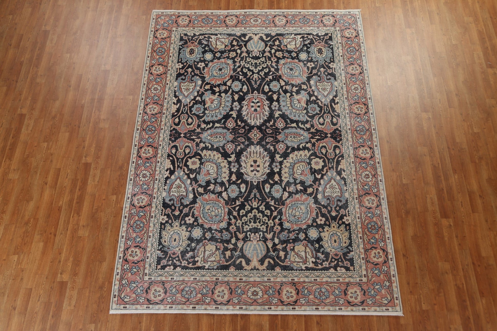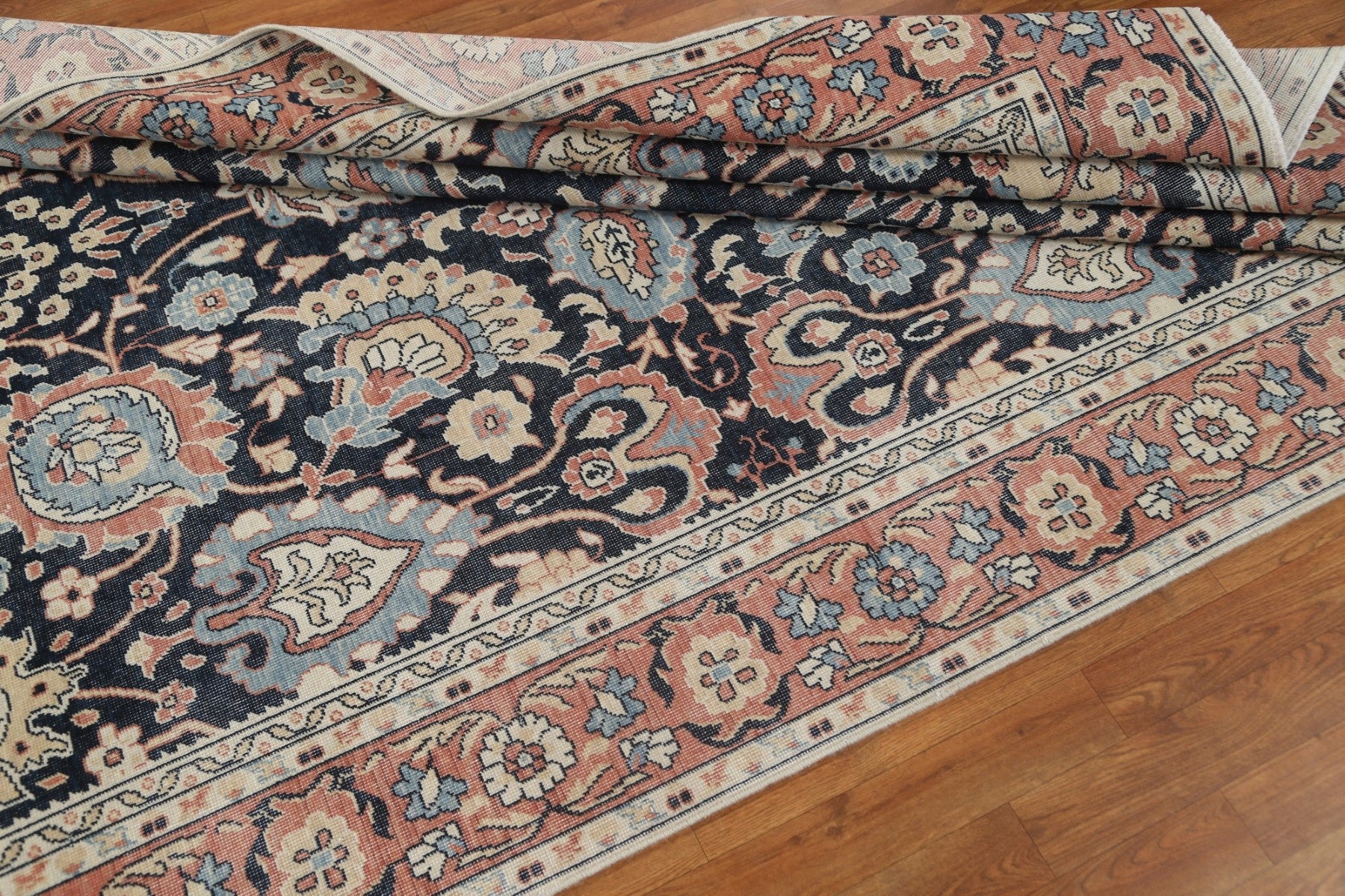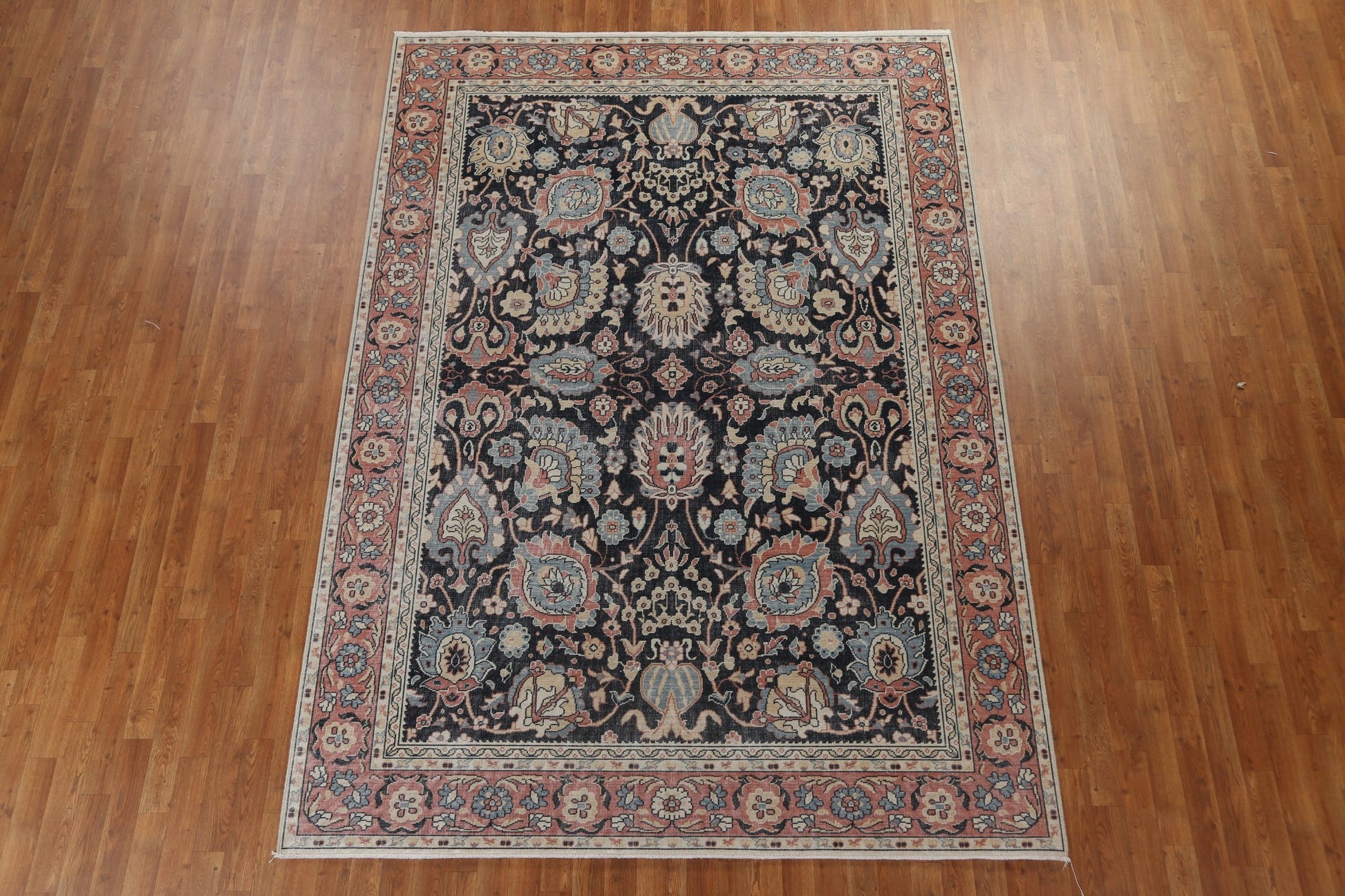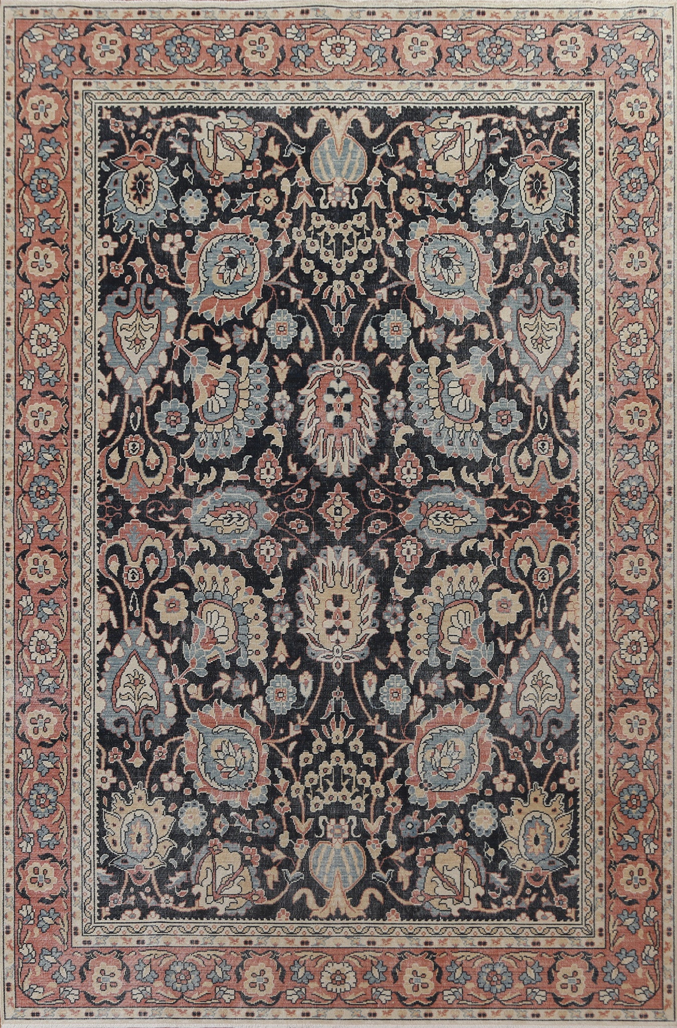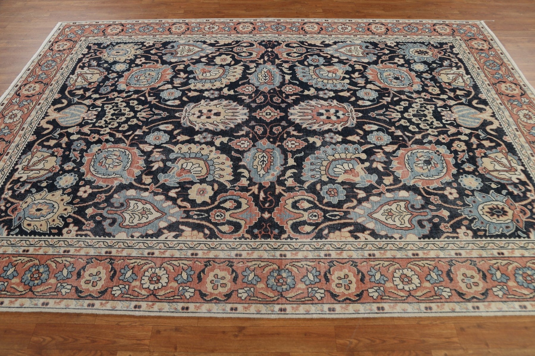 A Beautiful Genuine Turkey Sultanabad (Ziegler) rug is Hand Knotted by skillful weavers in Turkey with 100% Wool Material. This rug is in New, First Quality condition. dimensions are 9' 9'' X 7' 0'' in foot and 297 X 213 in centimeter. the primary color is Navy Blue & Blues.