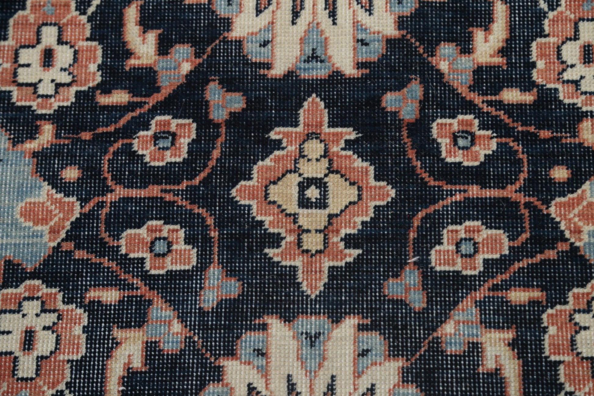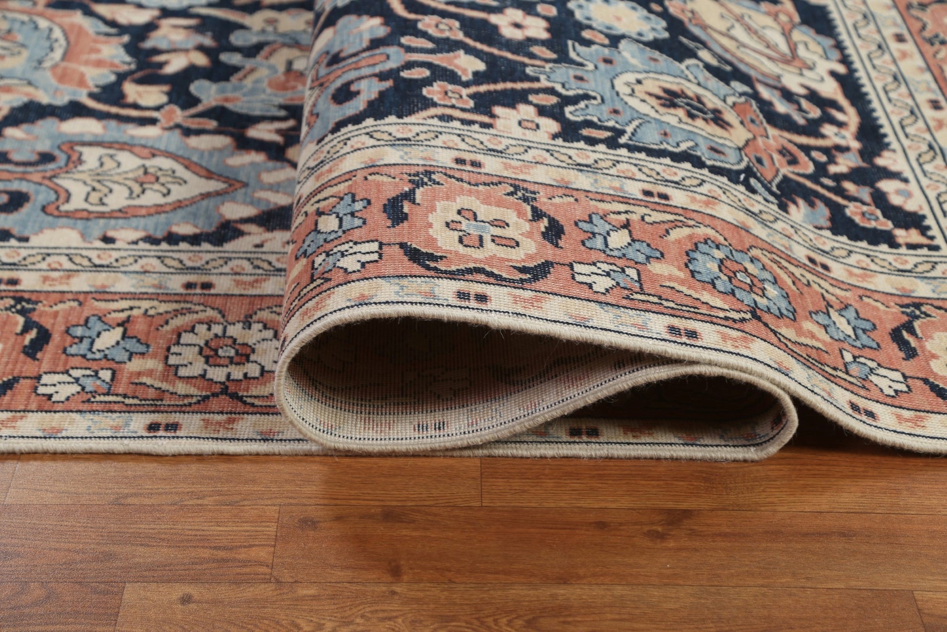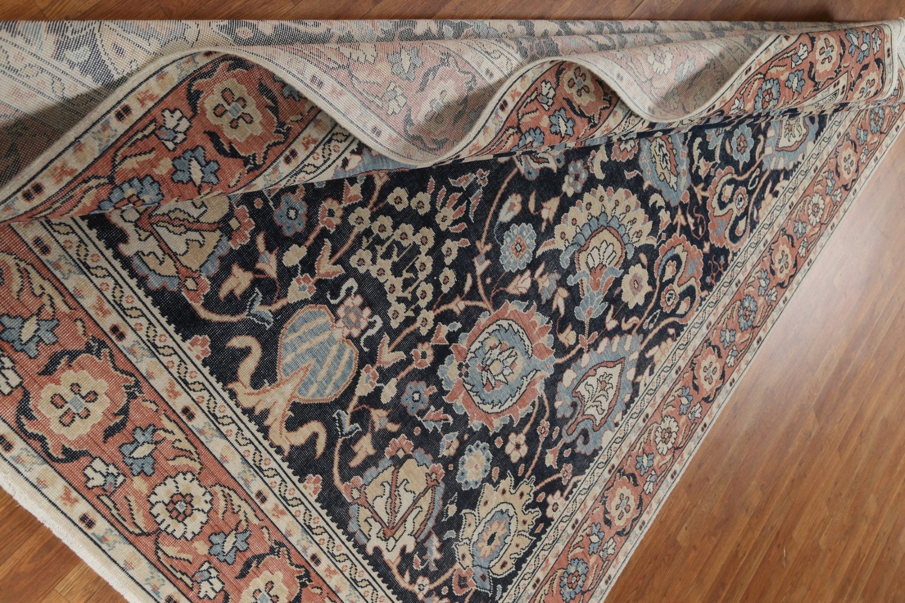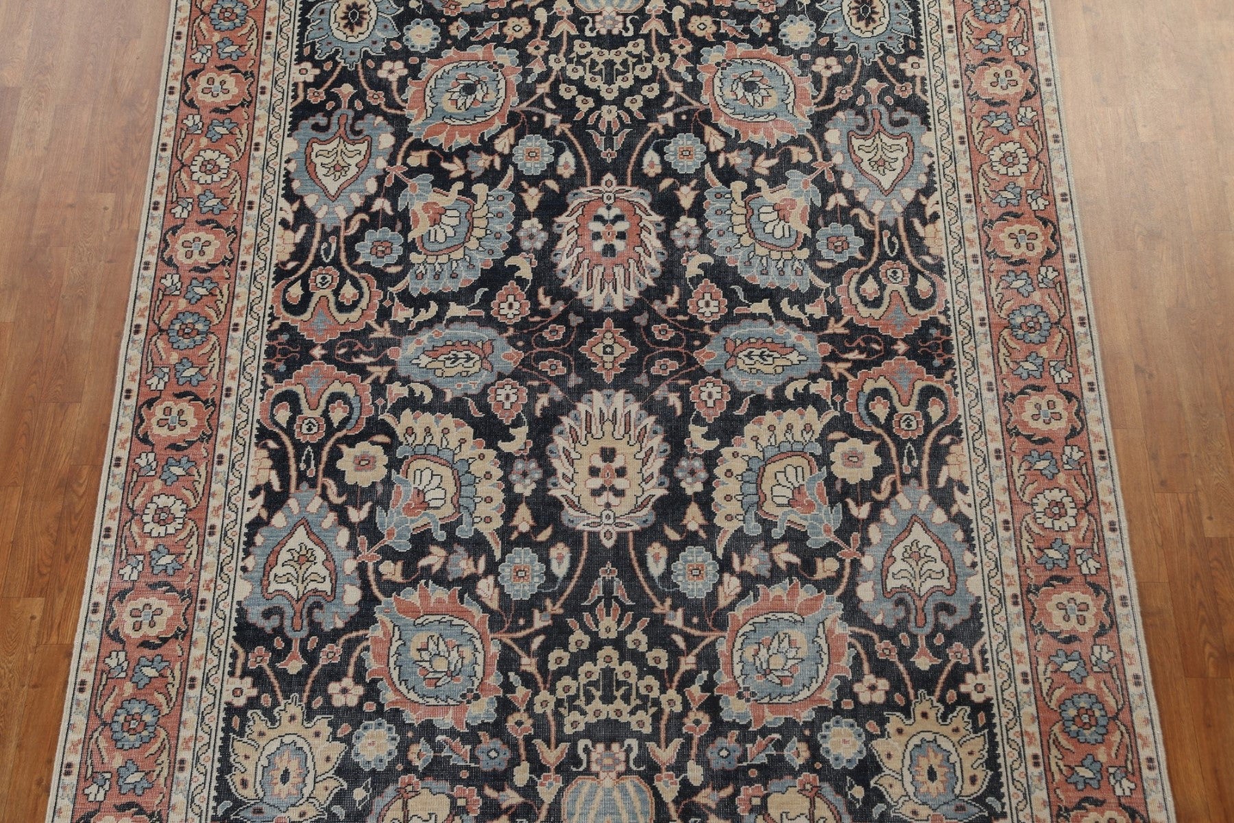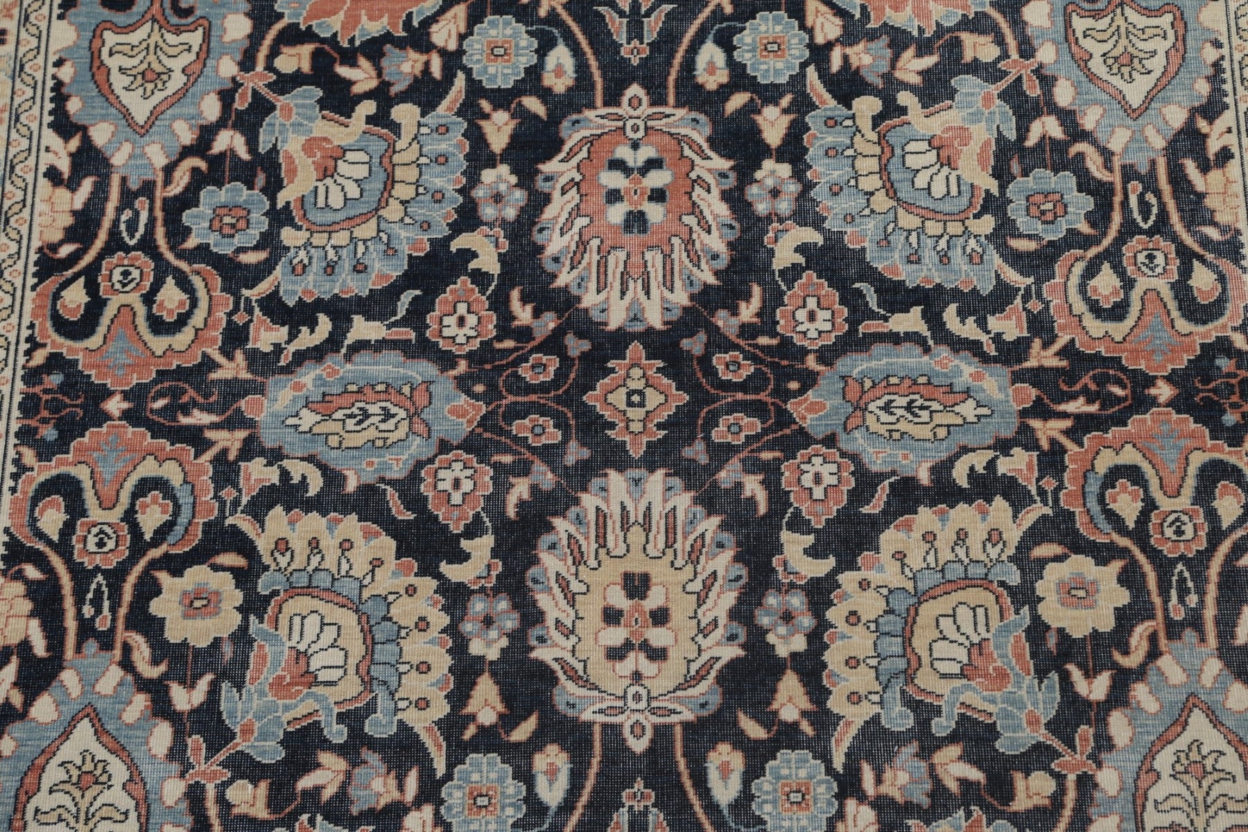 A Beautiful Genuine Turkey Sultanabad (Ziegler) rug is Hand Knotted by skillful weavers in Turkey with 100% Wool Material. This rug is in New, First Quality condition. dimensions are 9' 9'' X 7' 0'' in foot and 297 X 213 in centimeter. the primary color is Navy Blue & Blues.