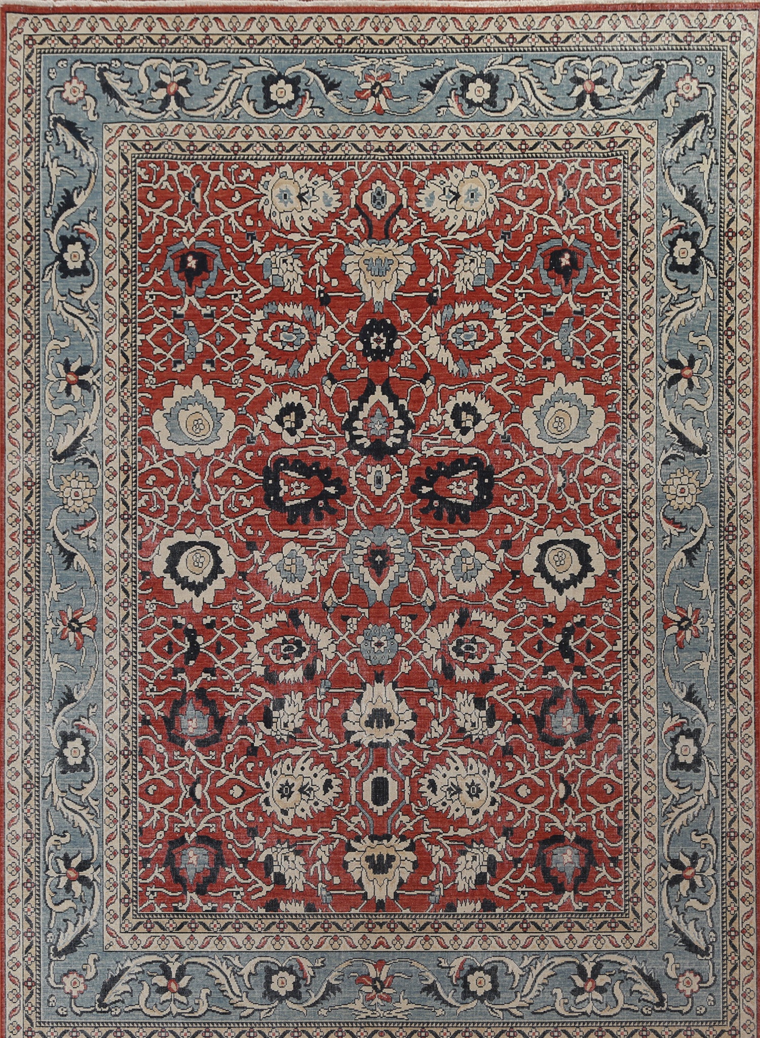 A Beautiful Genuine Turkey Sultanabad (Ziegler) rug is Hand Knotted by skillful weavers in Turkey with 100% Wool Material. This rug is in New, First Quality condition. dimensions are 9' 9'' X 8' 0'' in foot and 297 X 244 in centimeter. the primary color is Red.