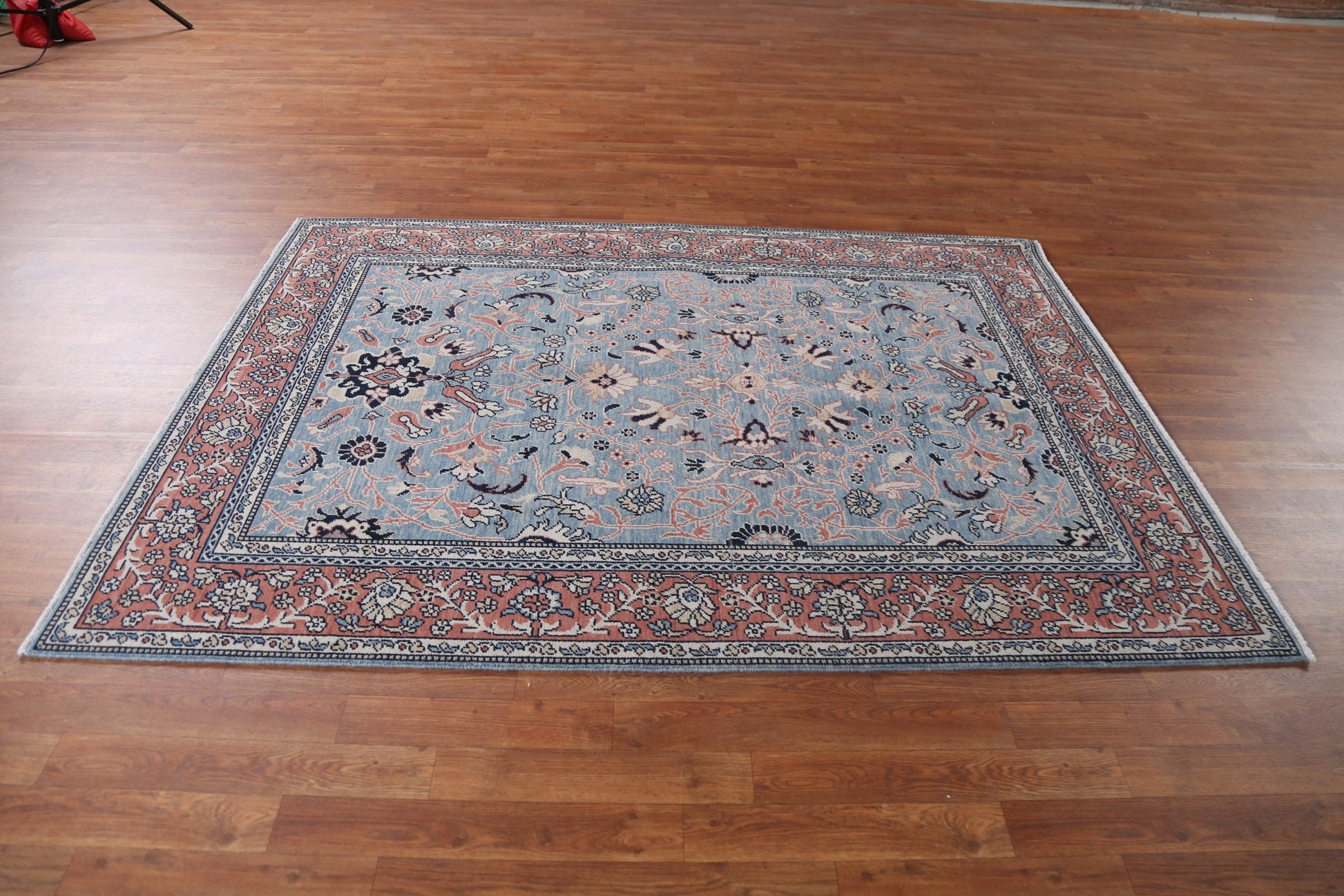 A Beautiful Genuine Turkey Sultanabad (Ziegler) rug is Hand Knotted by skillful weavers in Turkey with 100% Wool Material. This rug is in New, First Quality condition. dimensions are 6' 10'' X 5' 0'' in foot and 208 X 152 in centimeter. the primary color is Navy Blue & Blues.