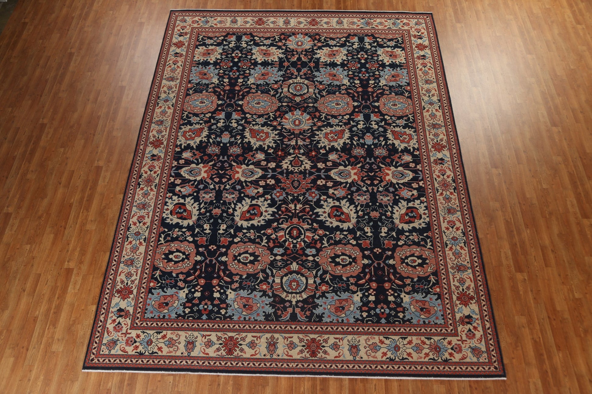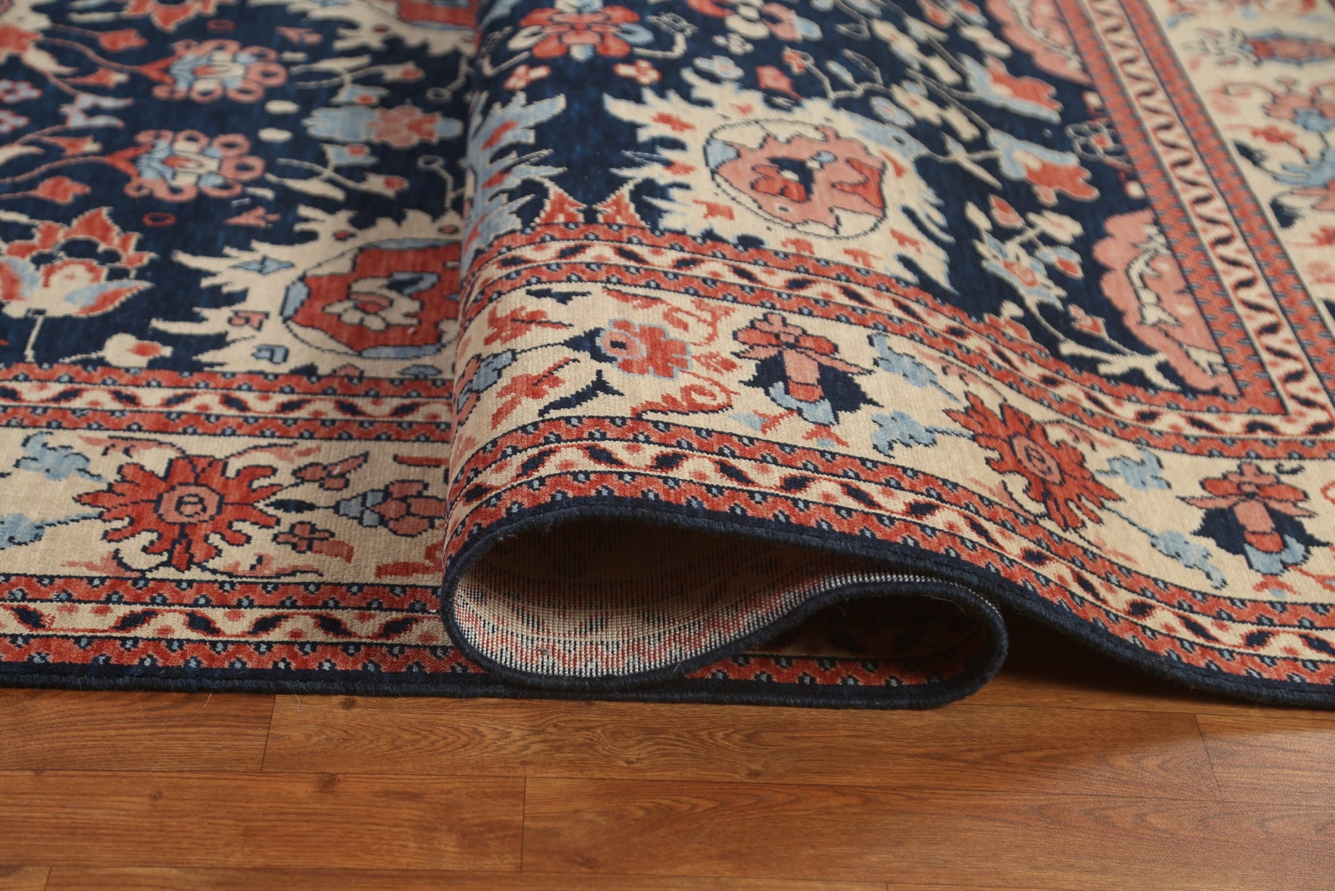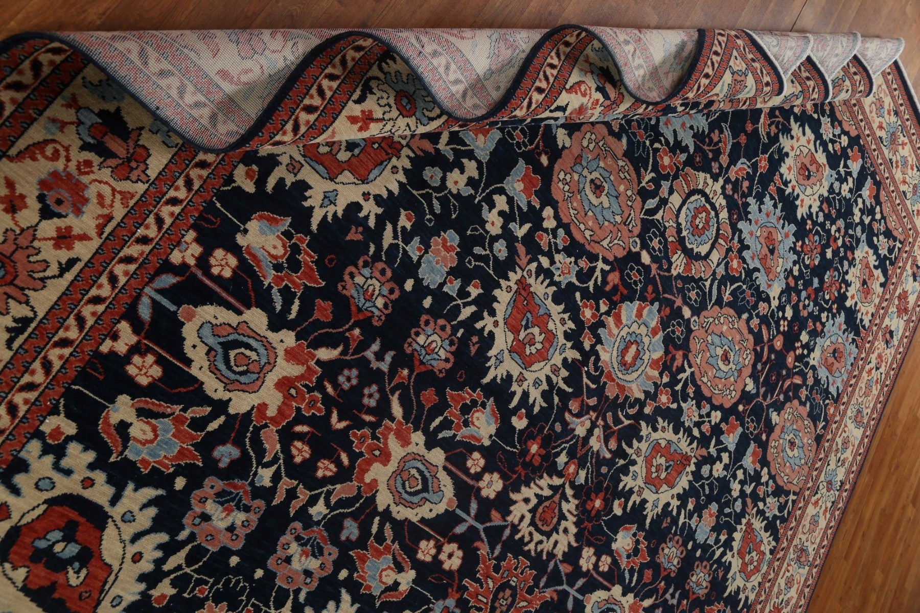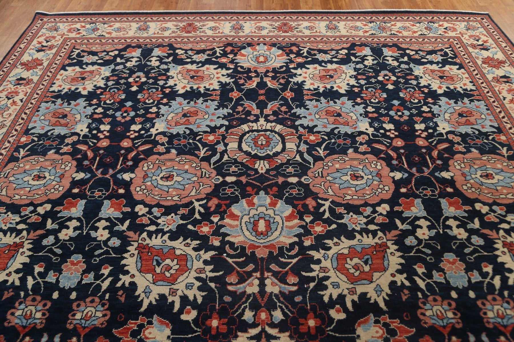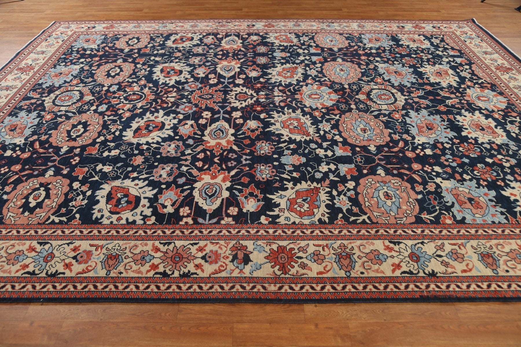 A Beautiful Genuine Turkey Sultanabad (Ziegler) rug is Hand Knotted by skillful weavers in Turkey with 100% Wool Material. This rug is in New, First Quality condition. dimensions are 12' 11'' X 9' 10'' in foot and 394 X 300 in centimeter. the primary color is Navy Blue & Blues.