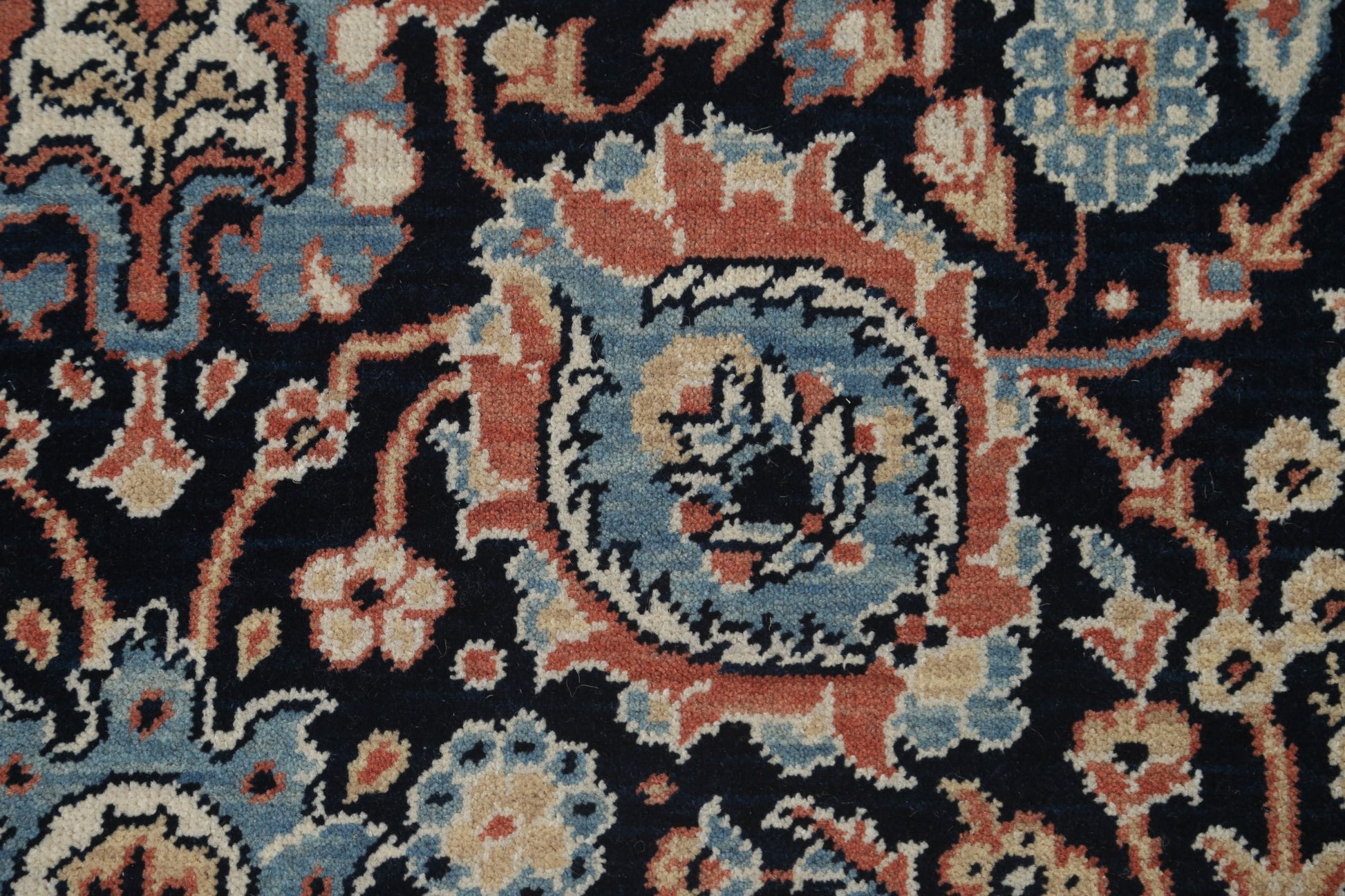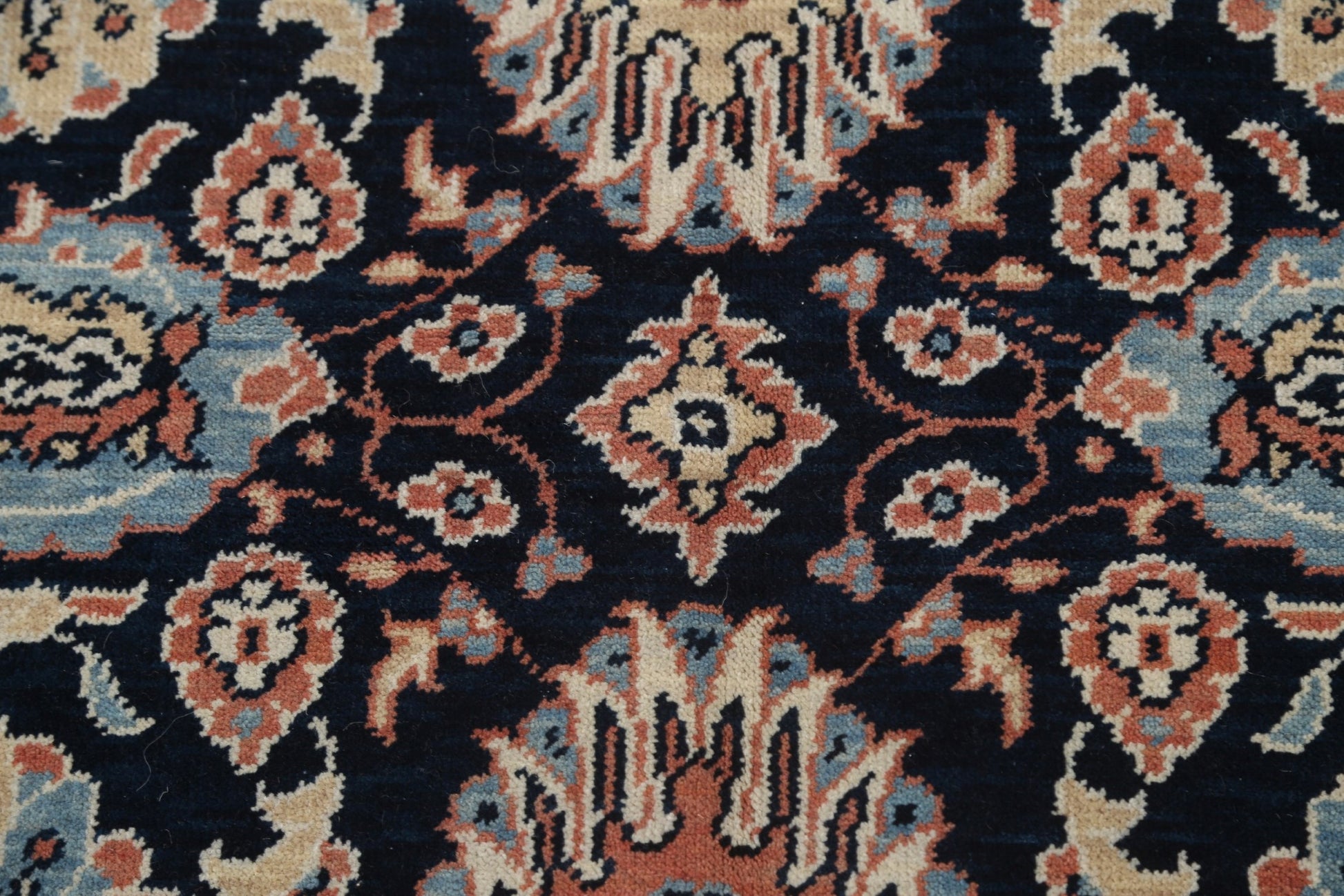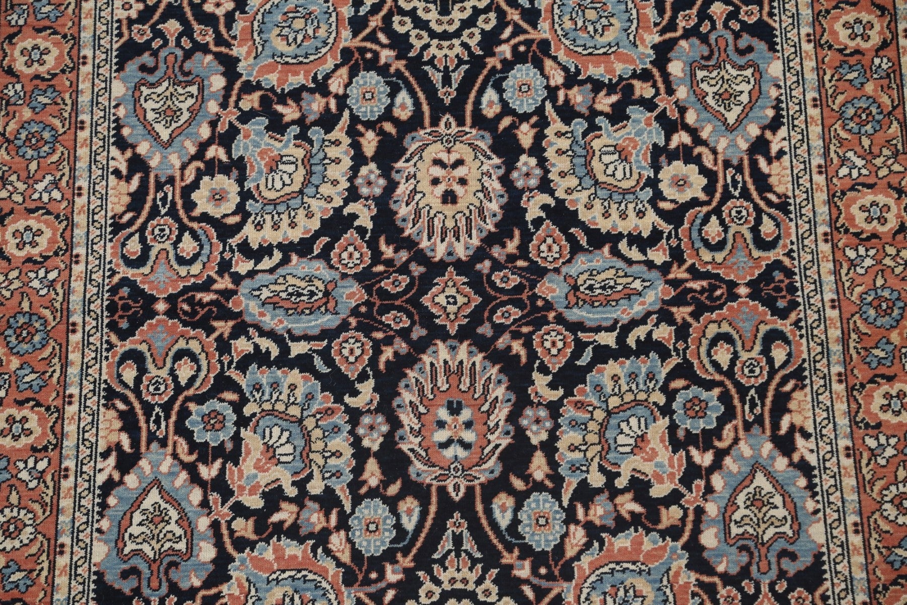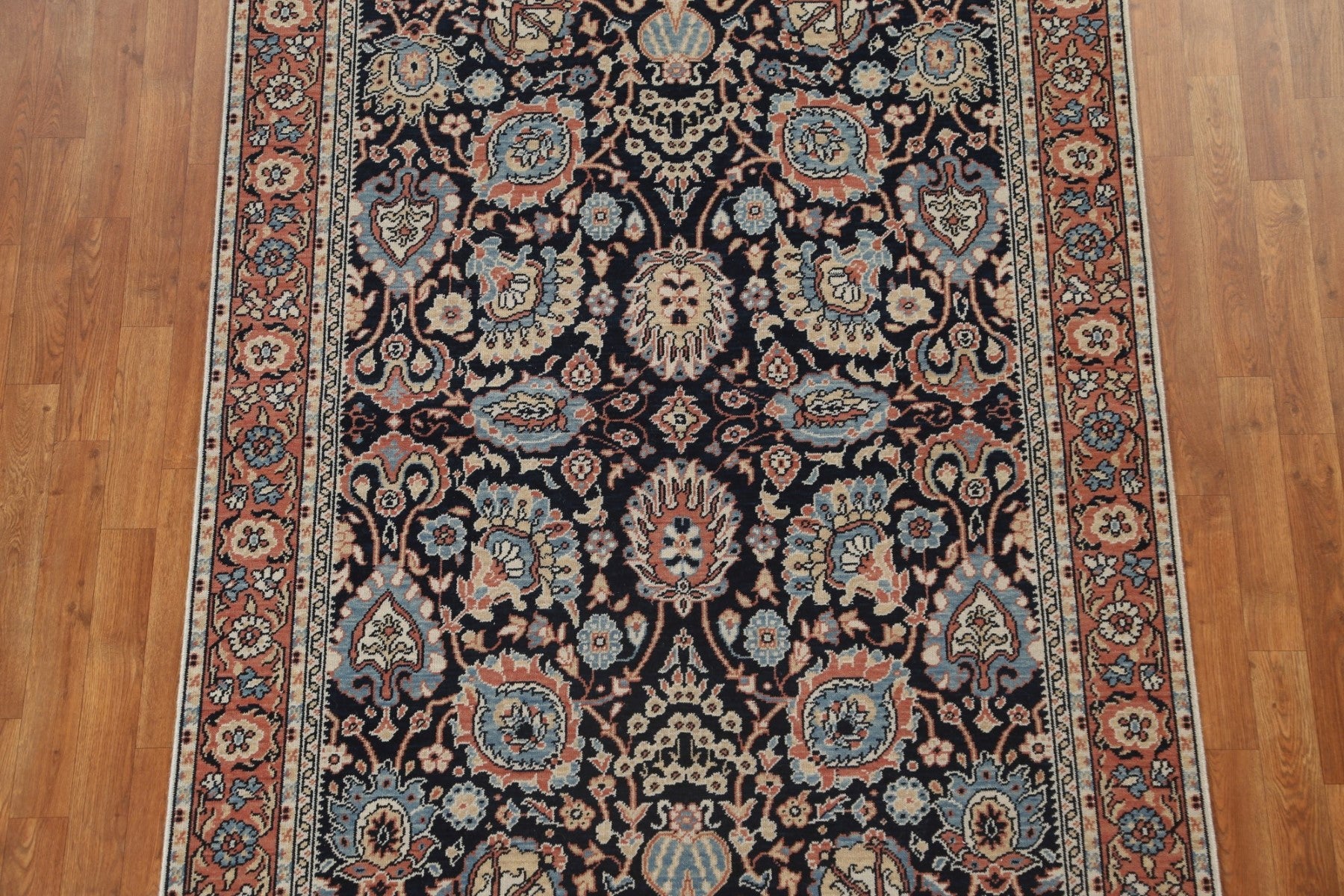 A Beautiful Genuine Turkey Sultanabad (Ziegler) rug is Hand Knotted by skillful weavers in Turkey with 100% Wool Material. This rug is in New, First Quality condition. dimensions are 6' 10'' X 5' 0'' in foot and 208 X 152 in centimeter. the primary color is Navy Blue & Blues.
