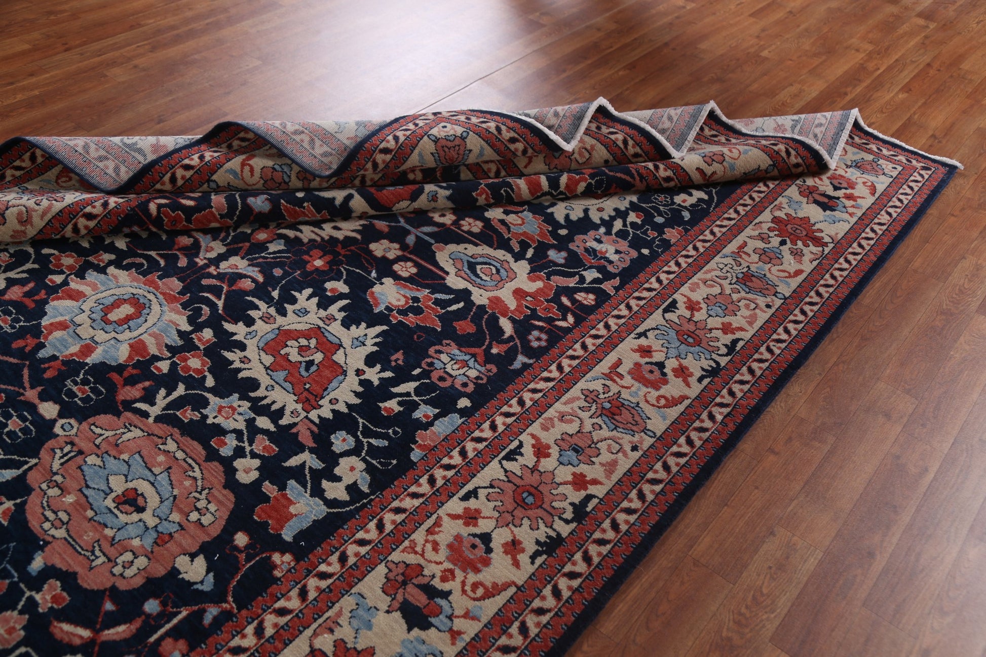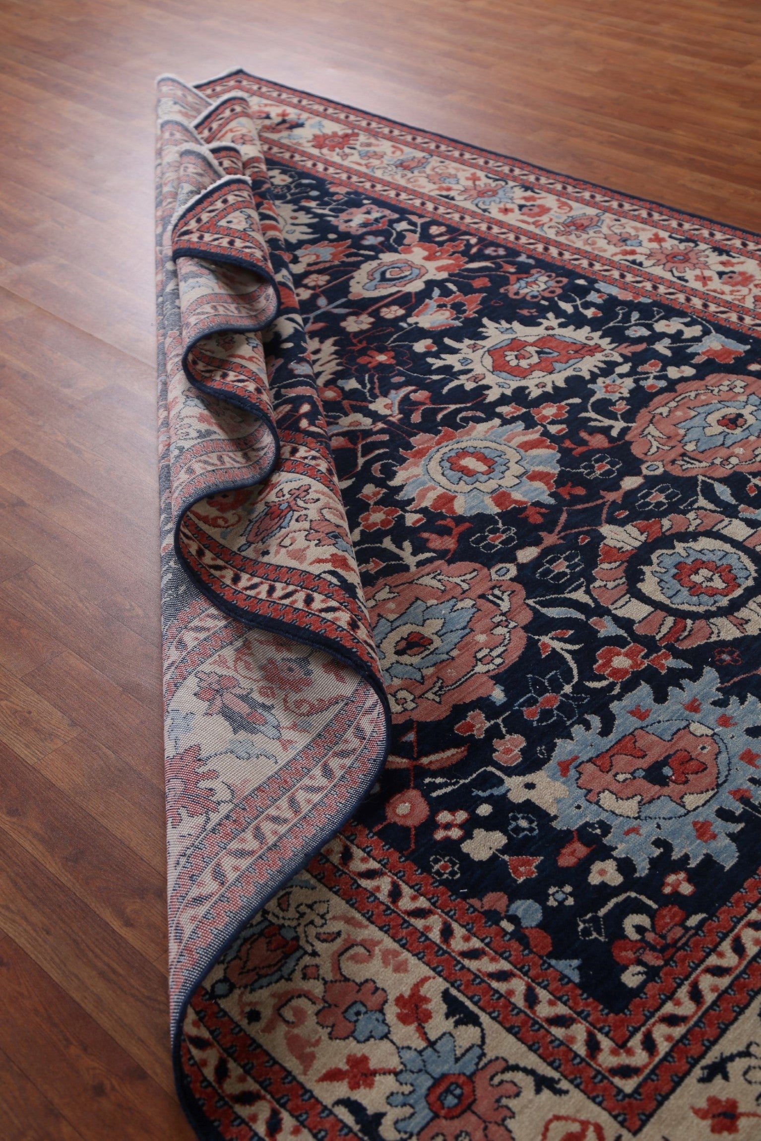 A Beautiful Genuine Turkey Sultanabad (Ziegler) rug is Hand Knotted by skillful weavers in Turkey with 100% Wool Material. This rug is in New, First Quality condition. dimensions are 9' 9'' X 7' 0'' in foot and 297 X 213 in centimeter. the primary color is Navy Blue & Blues.