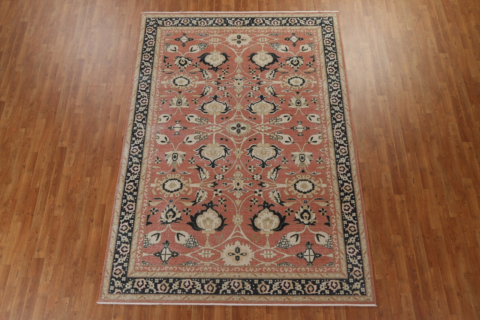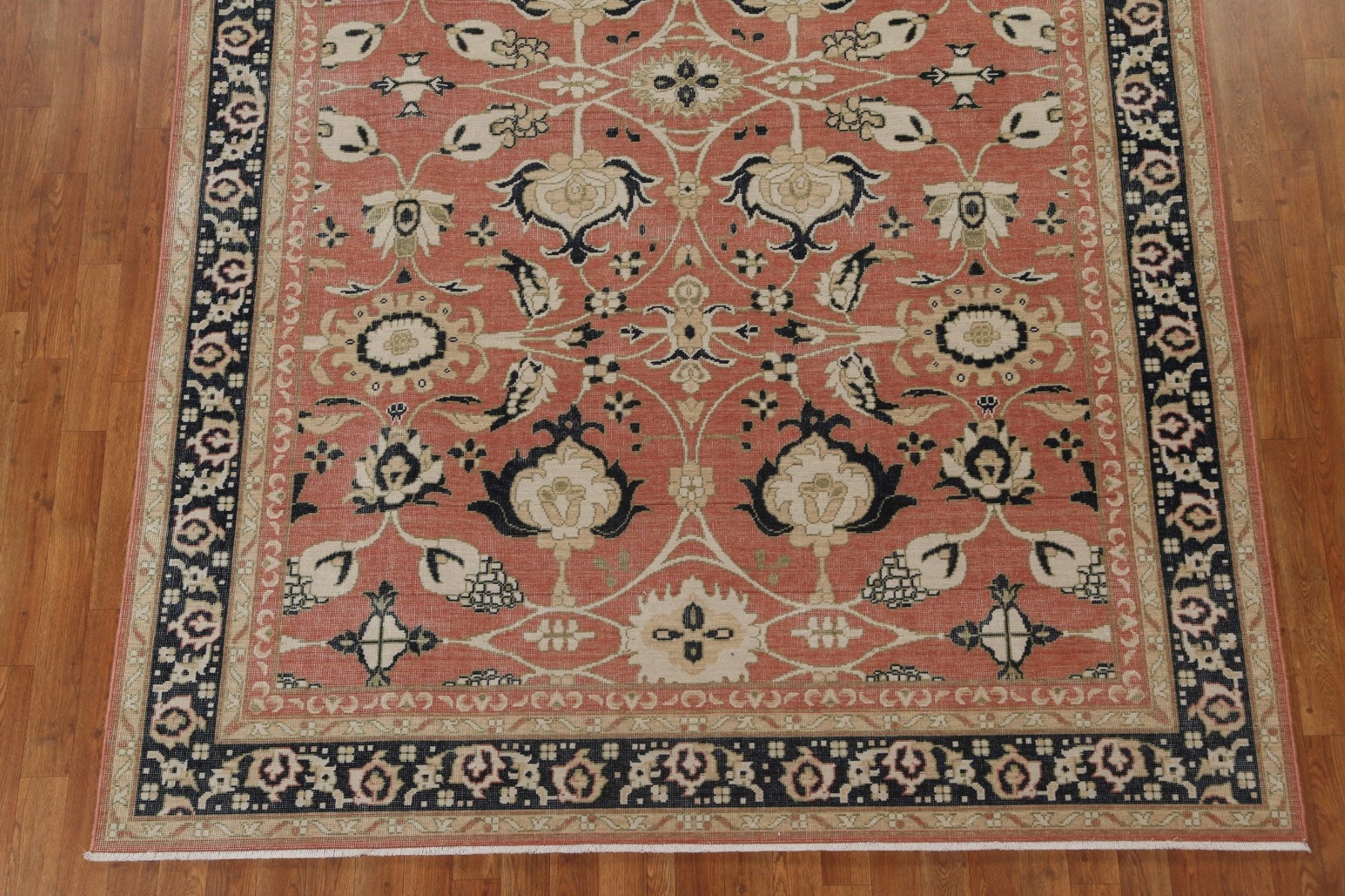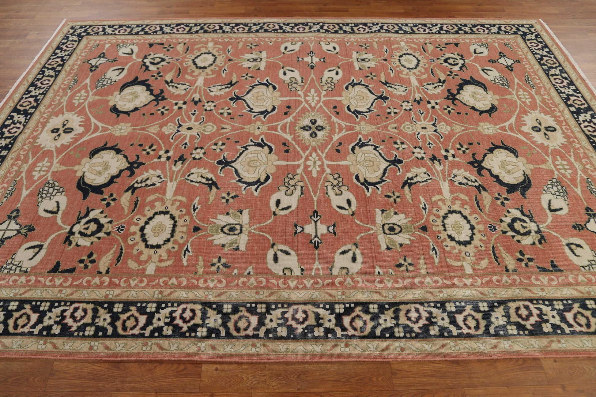 A Beautiful Genuine Turkey Sultanabad (Ziegler) rug is Hand Knotted by skillful weavers in Turkey with 100% Wool Material. This rug is in New, First Quality condition. dimensions are 9' 9'' X 7' 0'' in foot and 297 X 213 in centimeter. the primary color is Coral.