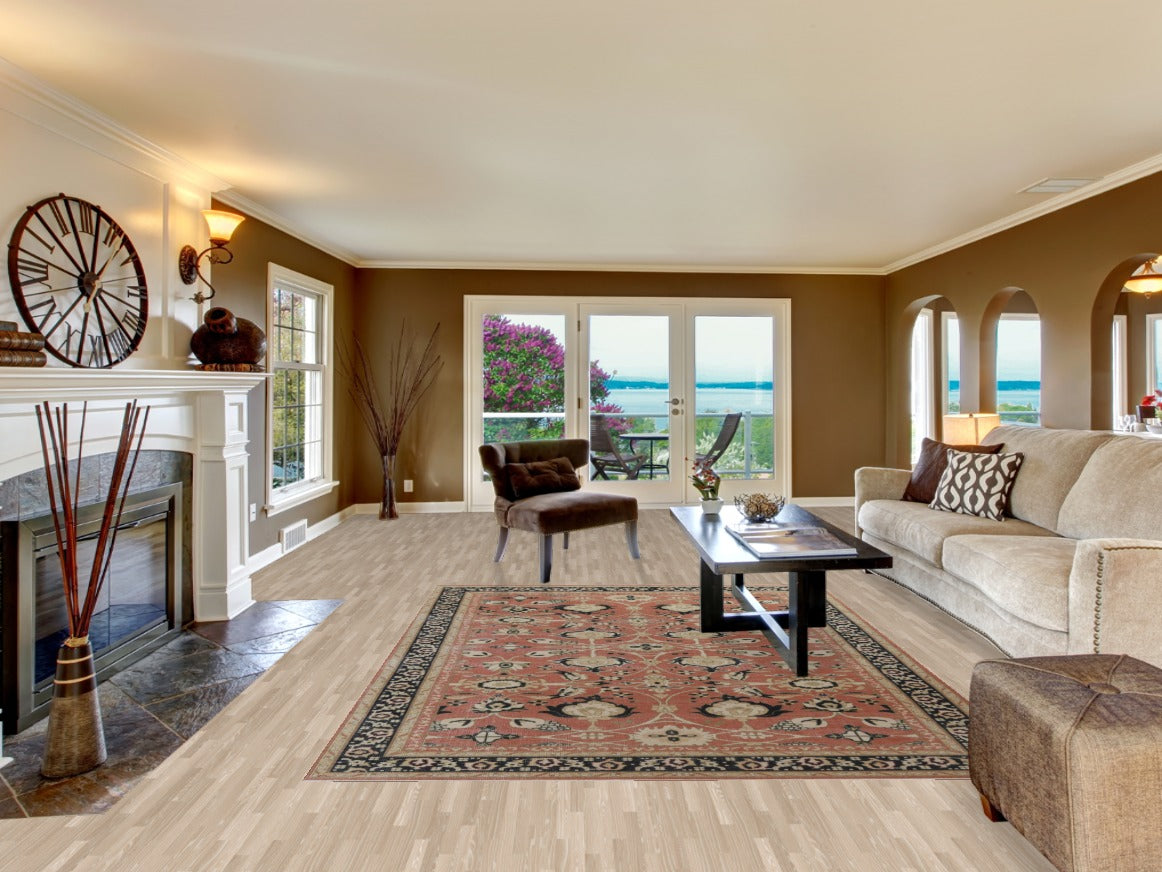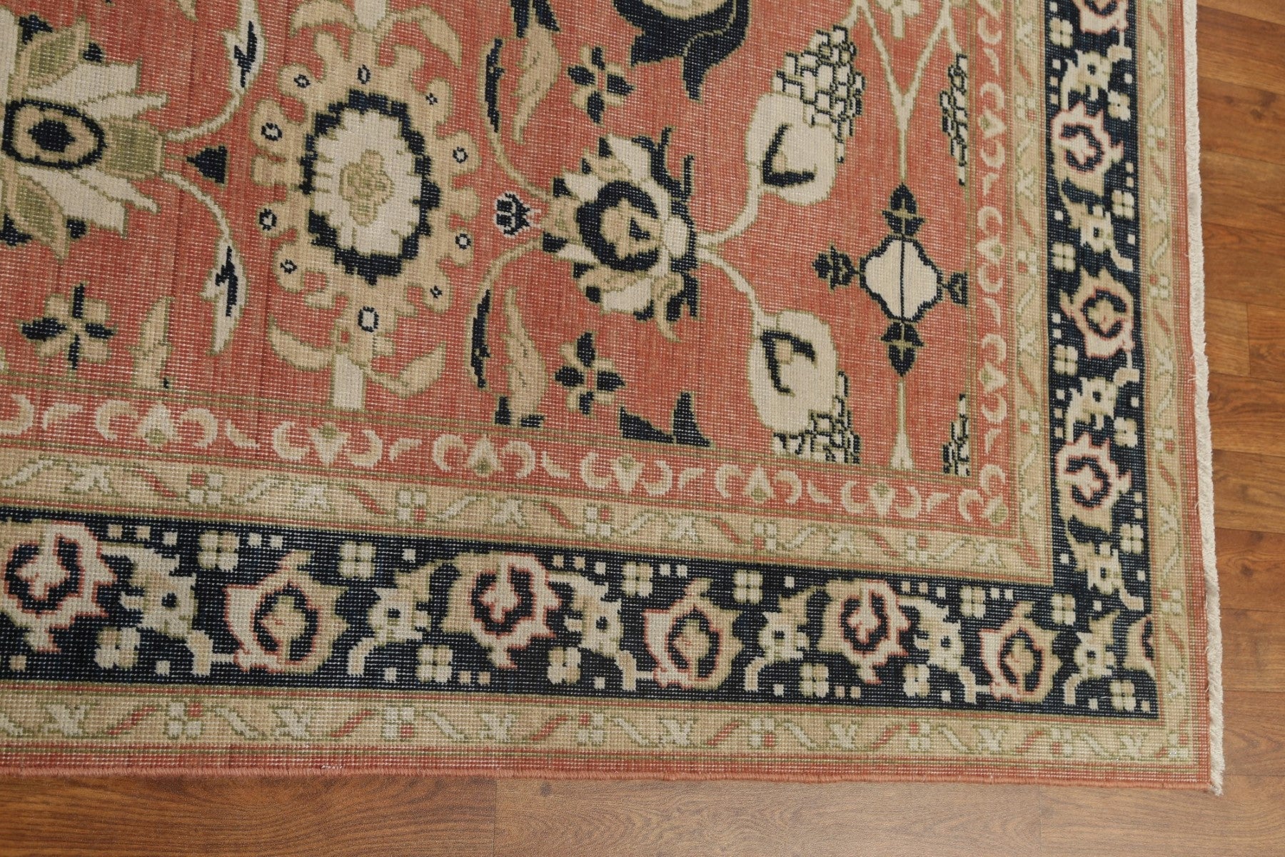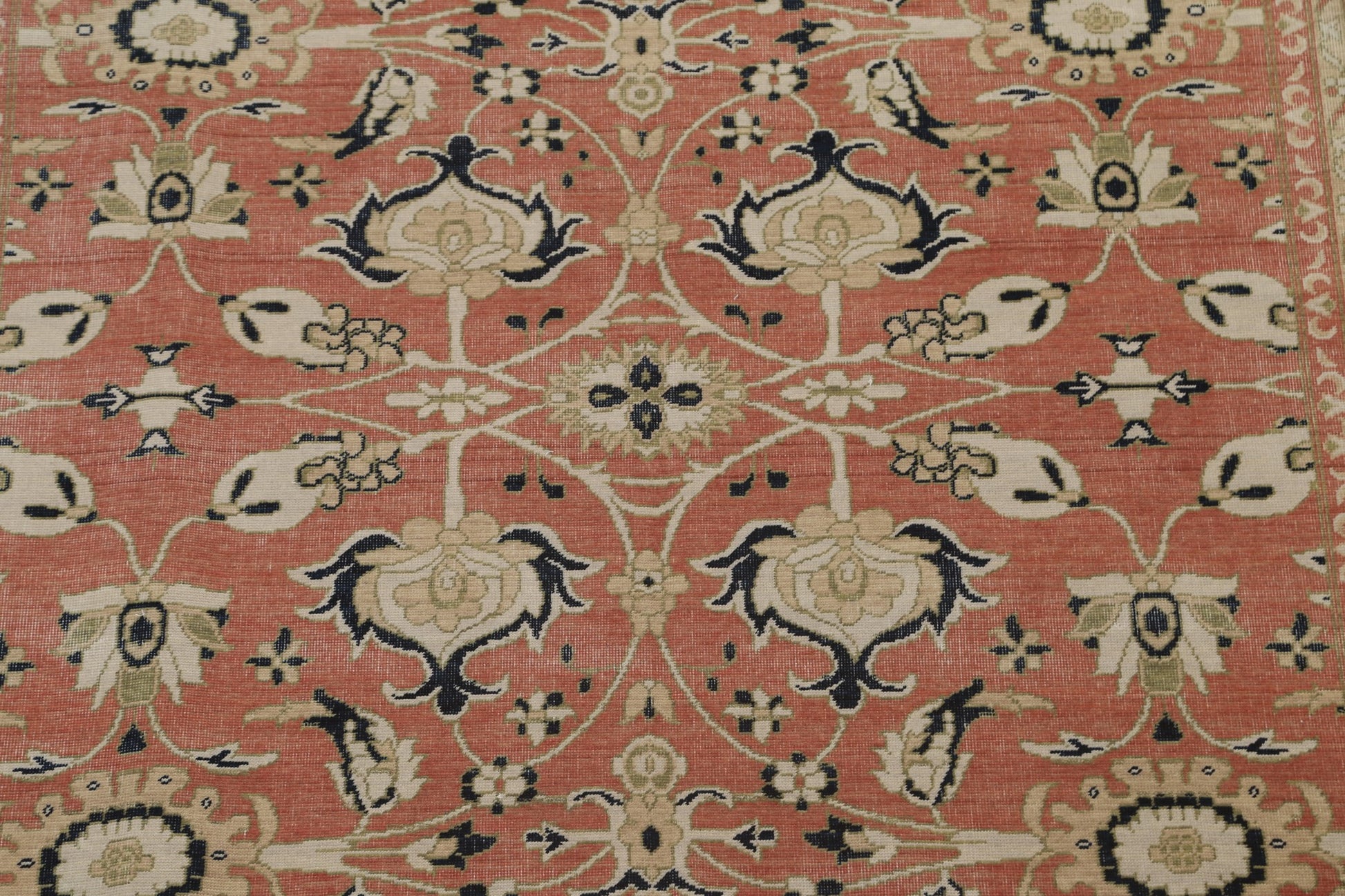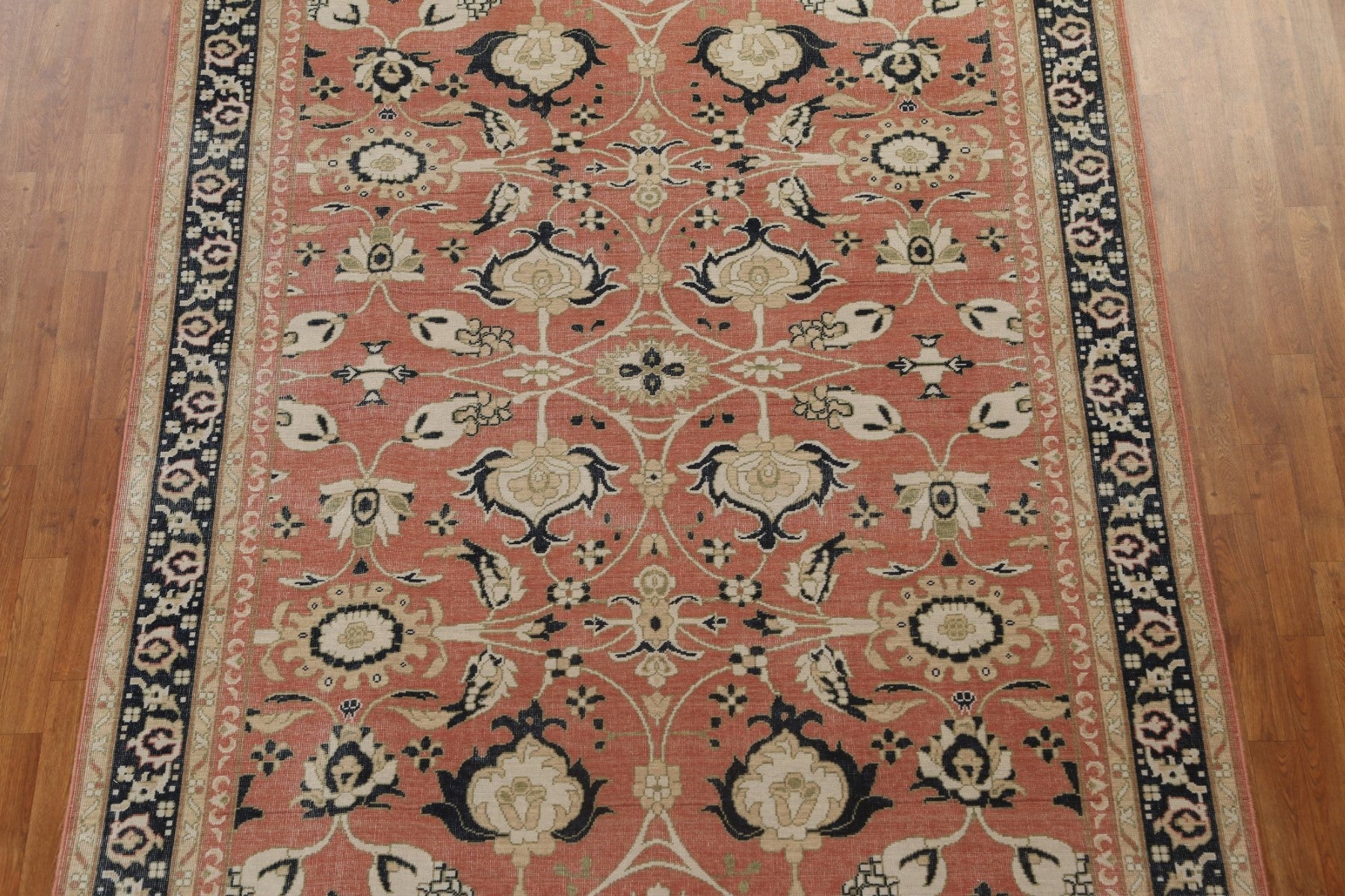 A Beautiful Genuine Turkey Sultanabad (Ziegler) rug is Hand Knotted by skillful weavers in Turkey with 100% Wool Material. This rug is in New, First Quality condition. dimensions are 9' 9'' X 7' 0'' in foot and 297 X 213 in centimeter. the primary color is Coral.