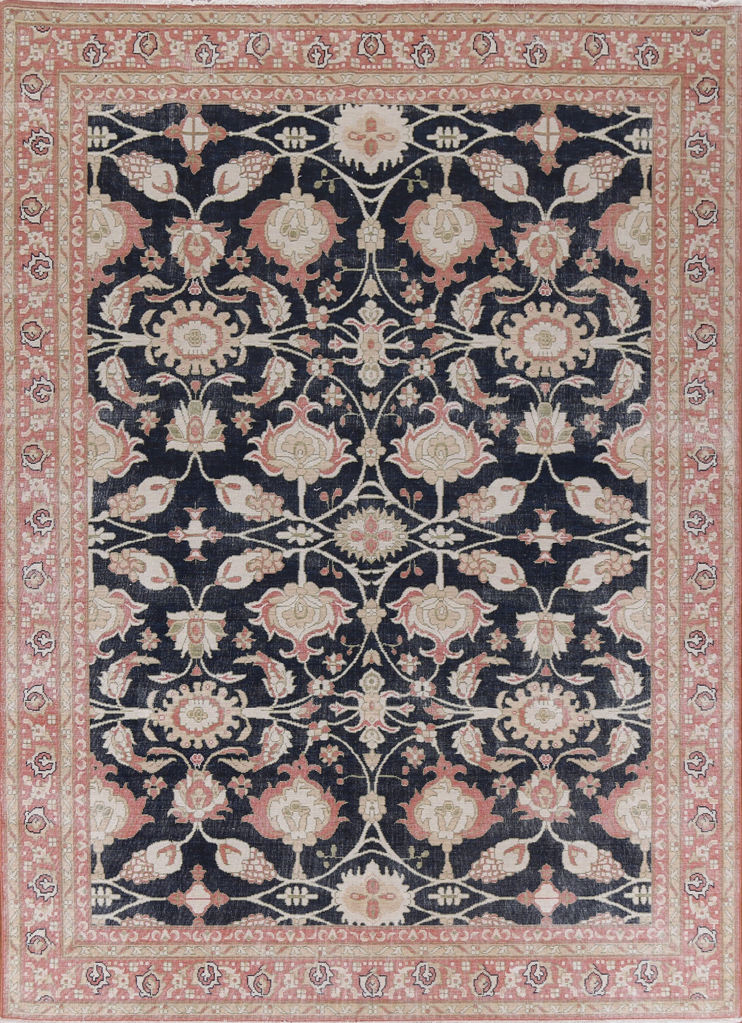 A Beautiful Genuine Turkey Sultanabad (Ziegler) rug is Hand Knotted by skillful weavers in Turkey with 100% Wool Material. This rug is in New, First Quality condition. dimensions are 9' 9'' X 8' 0'' in foot and 297 X 244 in centimeter. the primary color is Navy Blue & Blues.