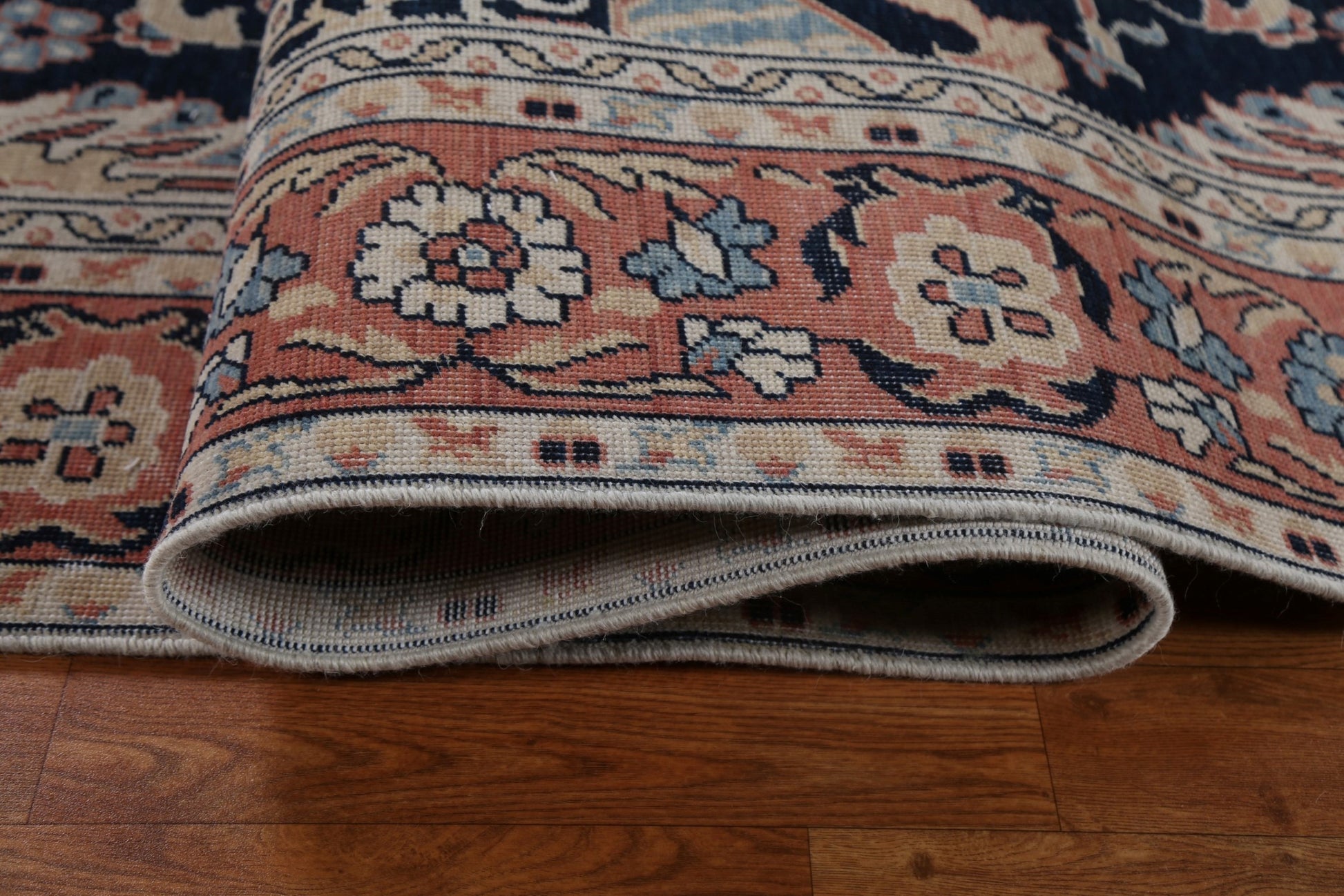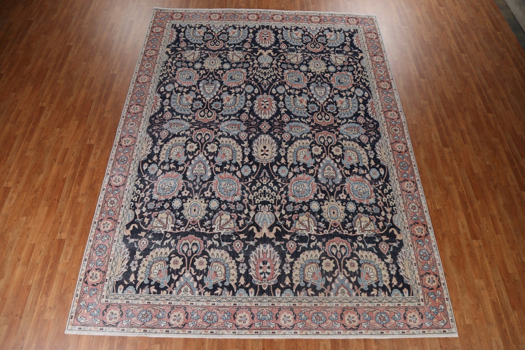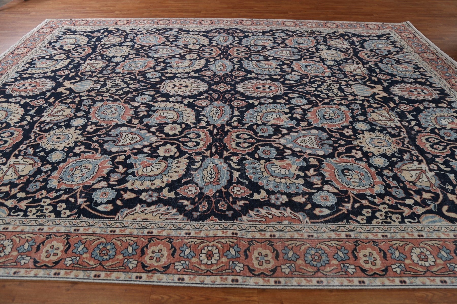 A Beautiful Genuine Turkey Sultanabad (Ziegler) rug is Hand Knotted by skillful weavers in Turkey with 100% Wool Material. This rug is in New, First Quality condition. dimensions are 12' 9'' X 9' 10'' in foot and 389 X 300 in centimeter. the primary color is Navy Blue & Blues.