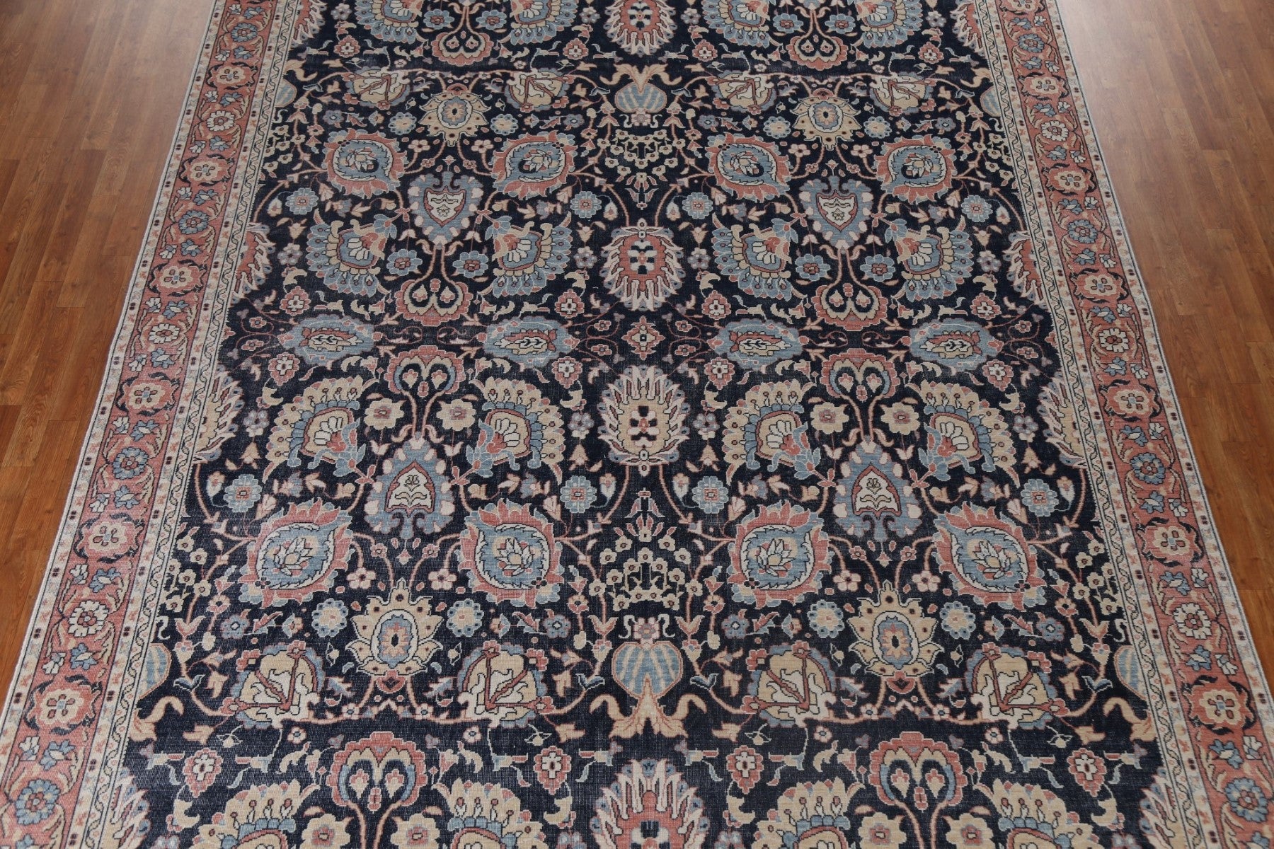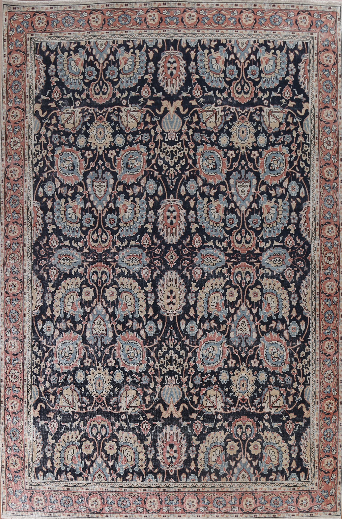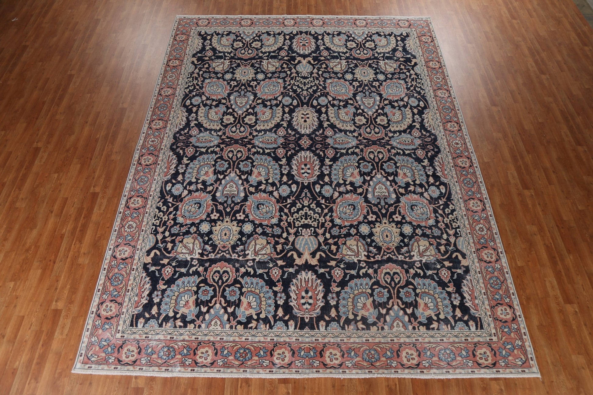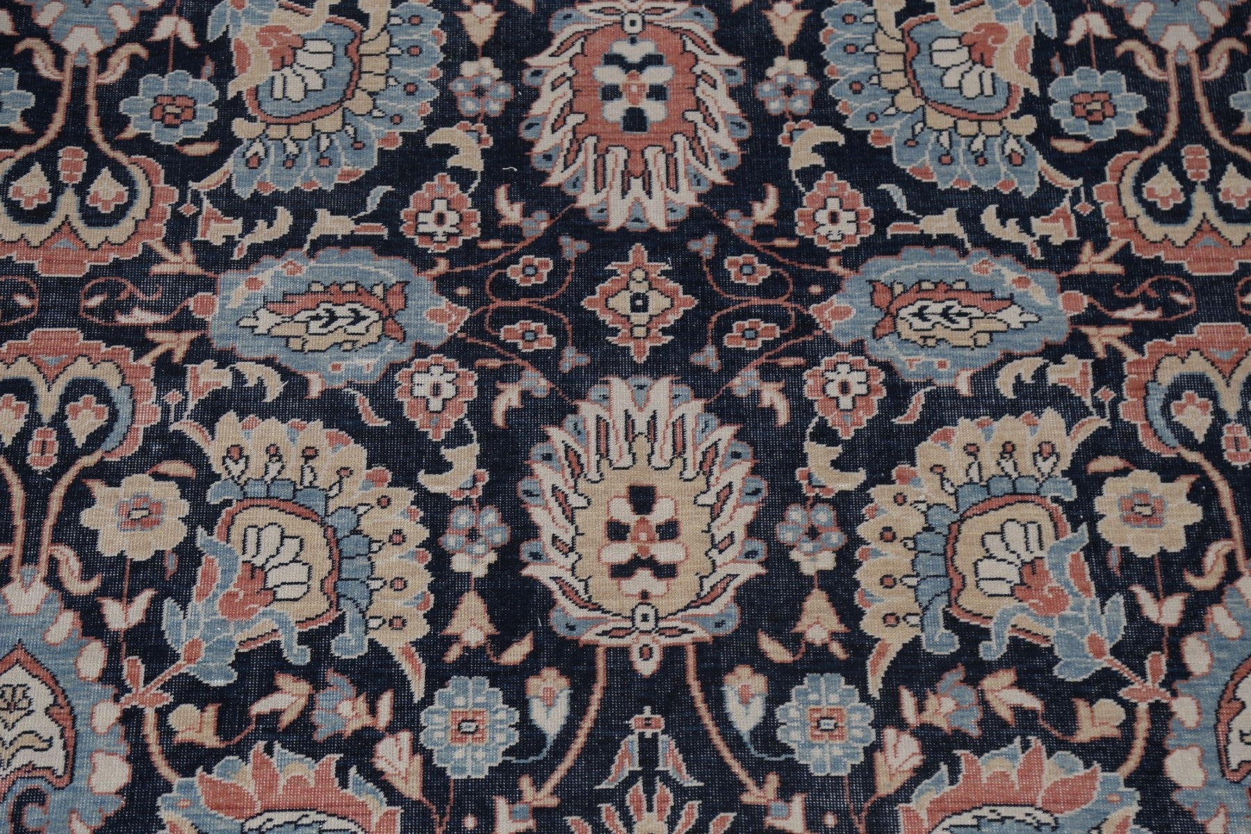 A Beautiful Genuine Turkey Sultanabad (Ziegler) rug is Hand Knotted by skillful weavers in Turkey with 100% Wool Material. This rug is in New, First Quality condition. dimensions are 12' 9'' X 9' 10'' in foot and 389 X 300 in centimeter. the primary color is Navy Blue & Blues.