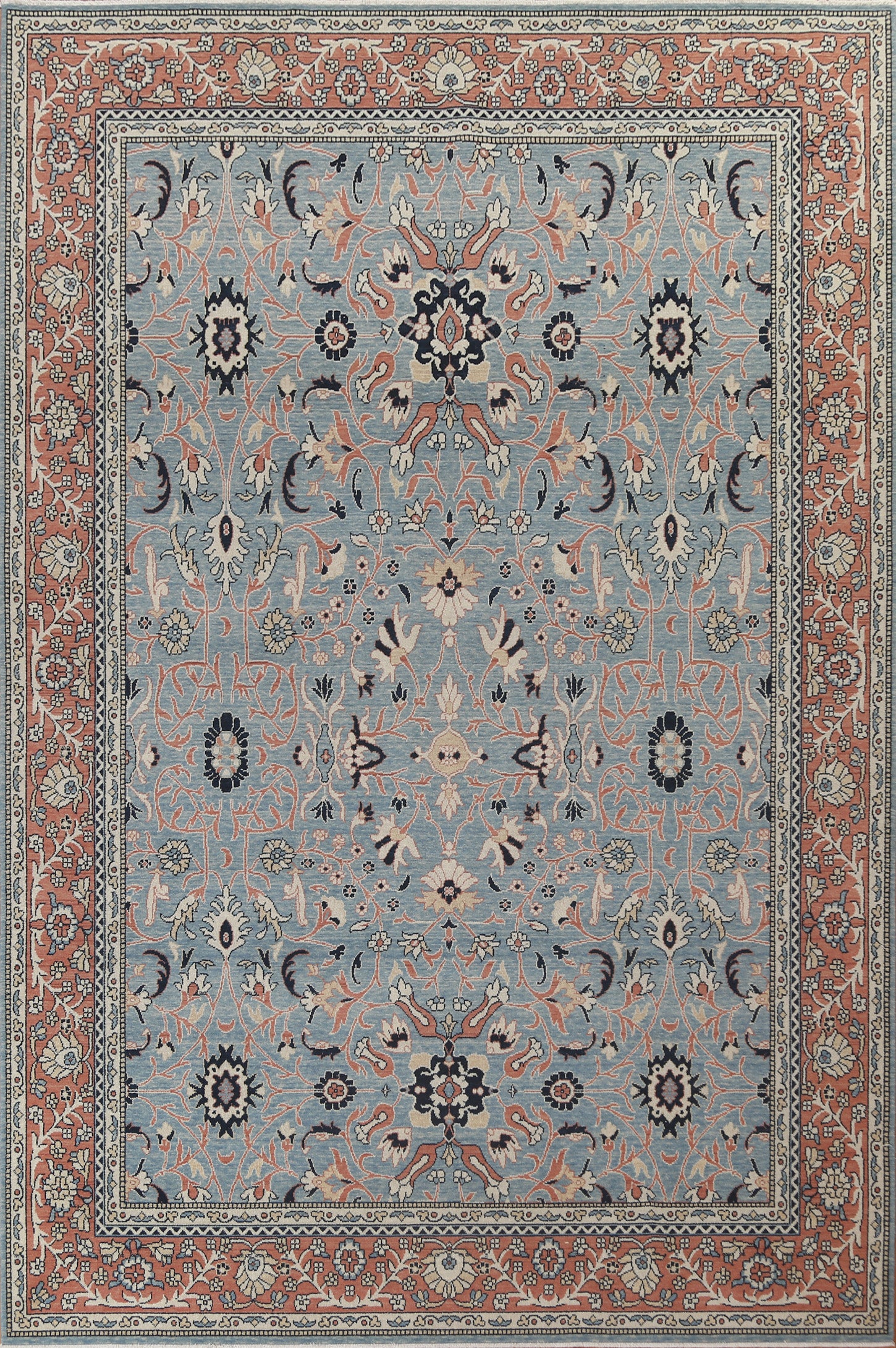 A Beautiful Genuine Turkey Sultanabad (Ziegler) rug is Hand Knotted by skillful weavers in Turkey with 100% Wool Material. This rug is in New, First Quality condition. dimensions are 11' 9'' X 9' 0'' in foot and 358 X 274 in centimeter. the primary color is Navy Blue & Blues.