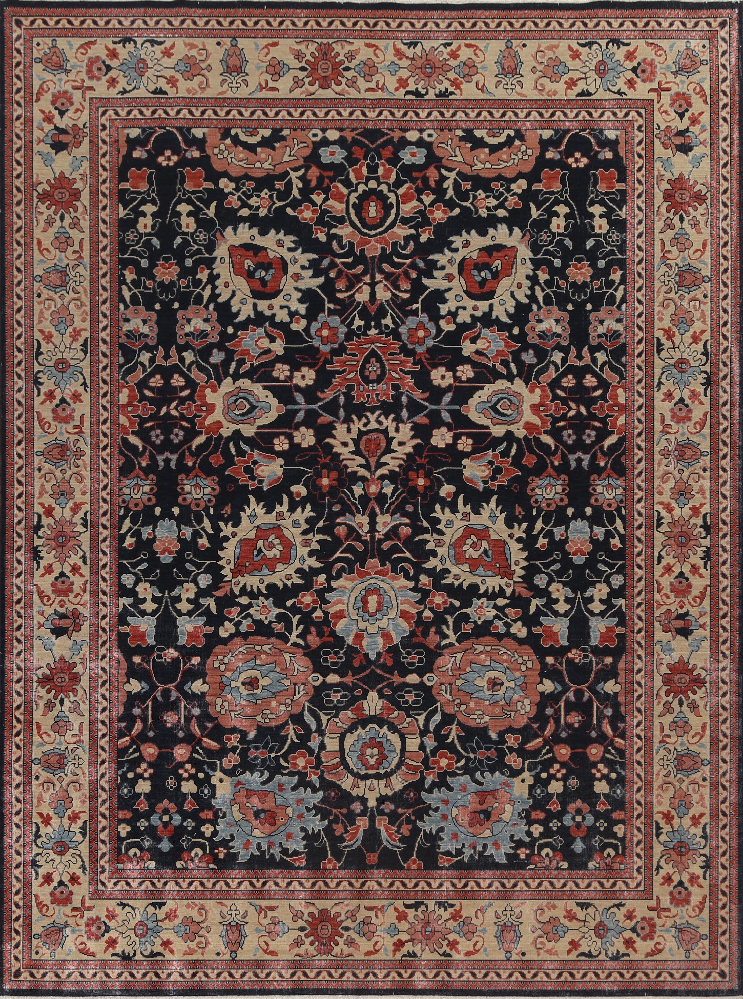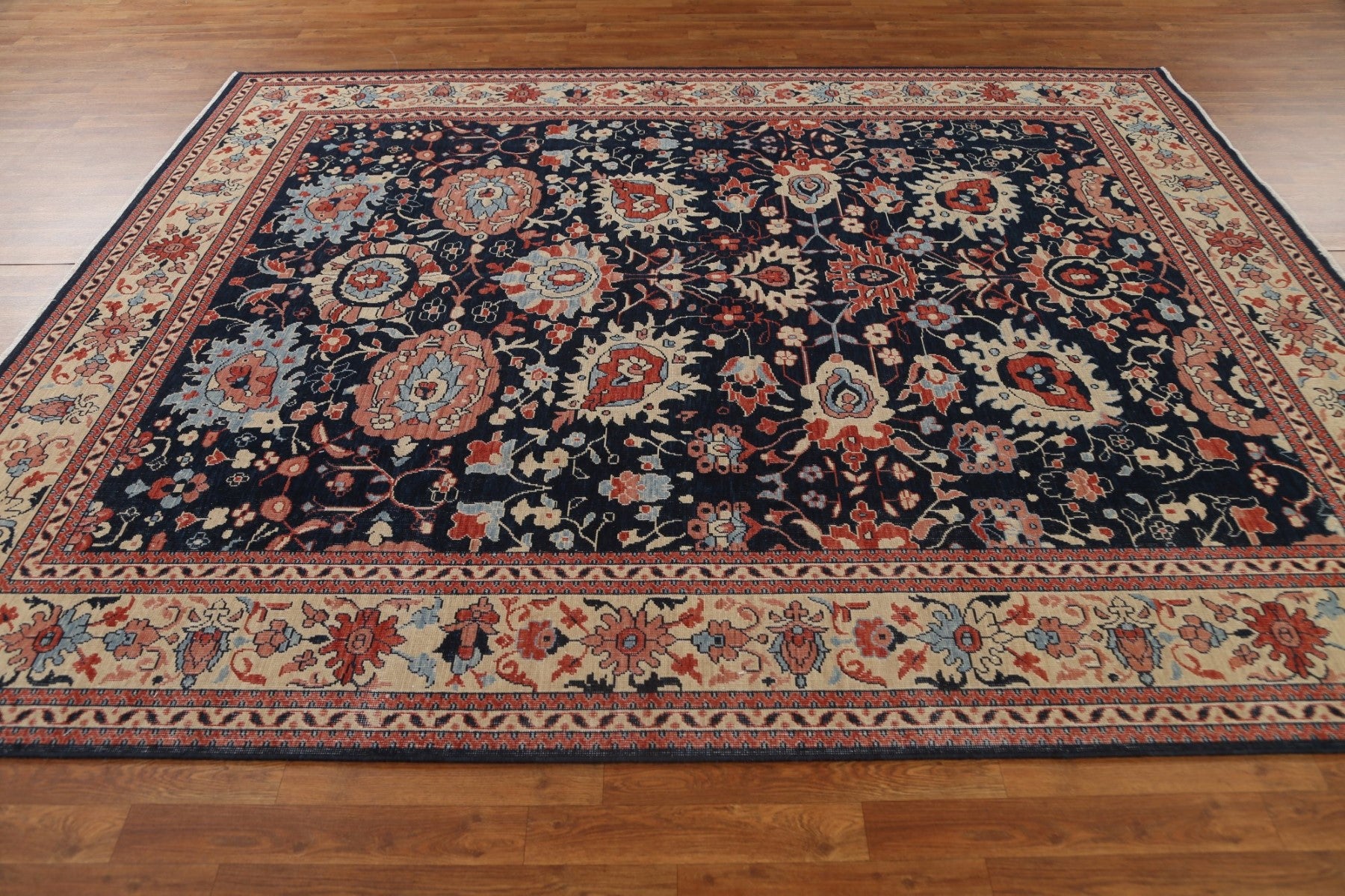 A Beautiful Genuine Turkey Sultanabad (Ziegler) rug is Hand Knotted by skillful weavers in Turkey with 100% Wool Material. This rug is in New, First Quality condition. dimensions are 9' 9'' X 8' 0'' in foot and 297 X 244 in centimeter. the primary color is Navy Blue & Blues.