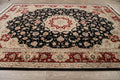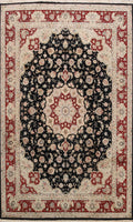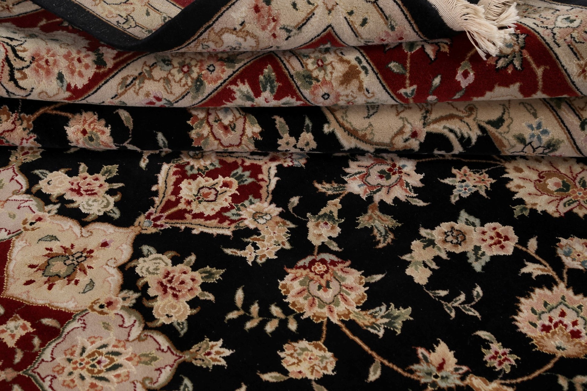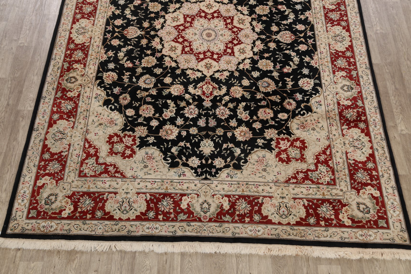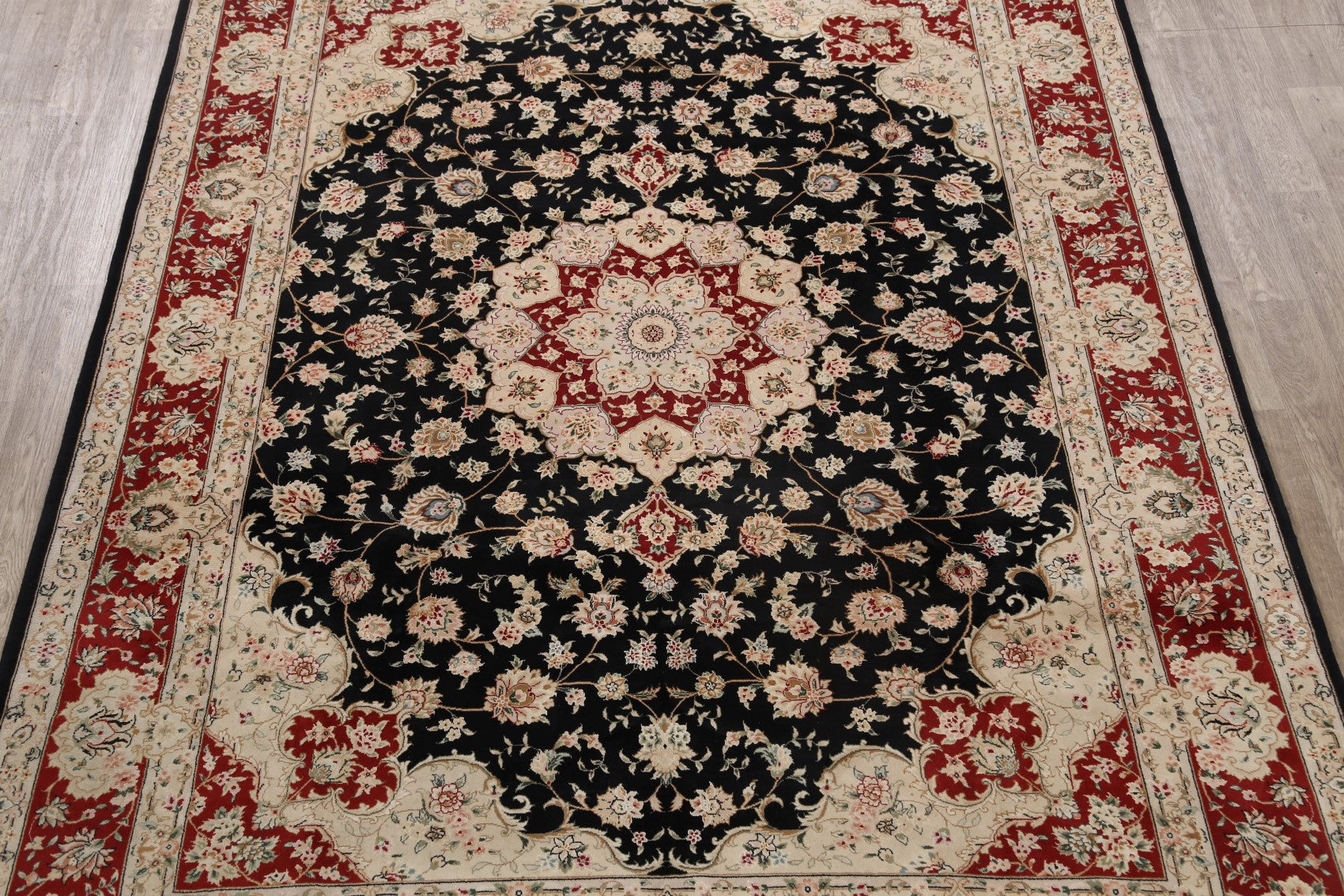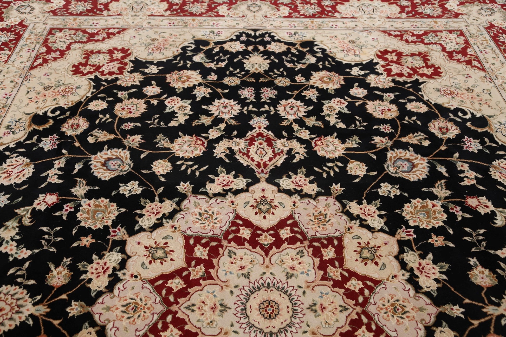 A Beautiful Genuine Pakistan Tabriz rug is Hand Knotted by skillful weavers in Pakistan with wool and silk highlight Material. This rug is in New, First Quality condition. dimensions are 11' 10'' X 8' 9'' in foot and 361 X 267 in centimeter. the primary color is Black.