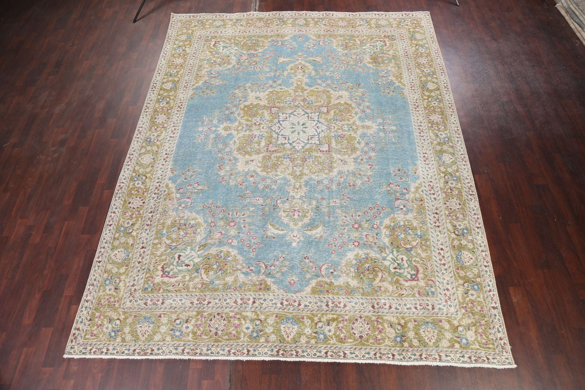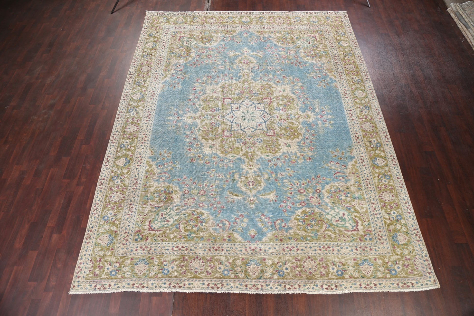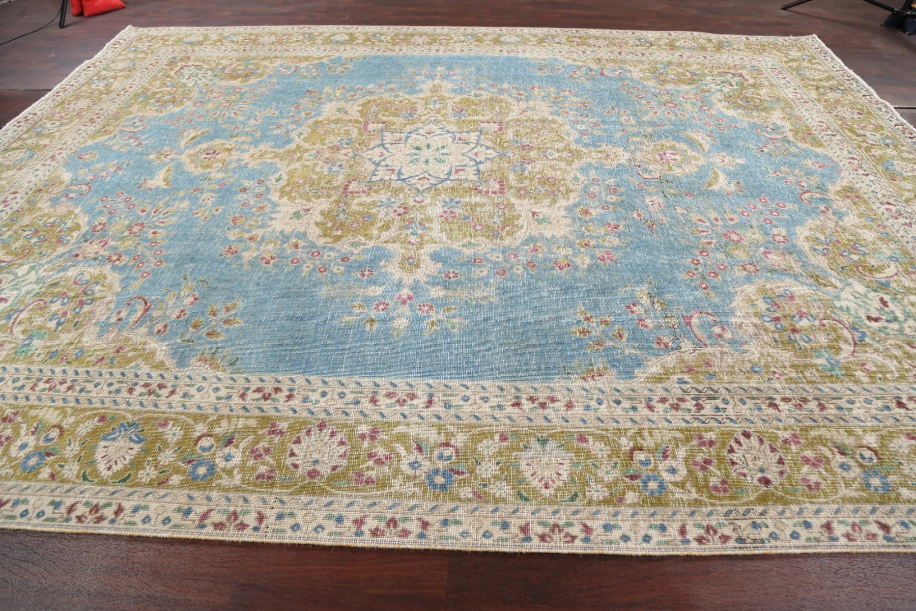 A Beautiful Genuine Persia ( Persia ) Tabriz rug is Hand Knotted by skillful weavers in Persia ( Persia ) with 100% Wool Material. This rug is in Very Good (Evenly Low Pile) condition. dimensions are 12' 7'' X 9' 10'' in foot and 384 X 300 in centimeter. the primary color is Navy Blue & Blues.