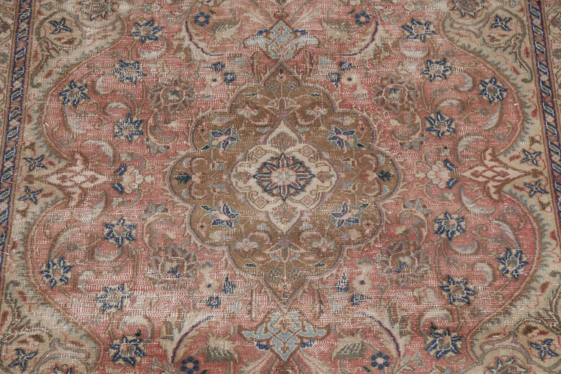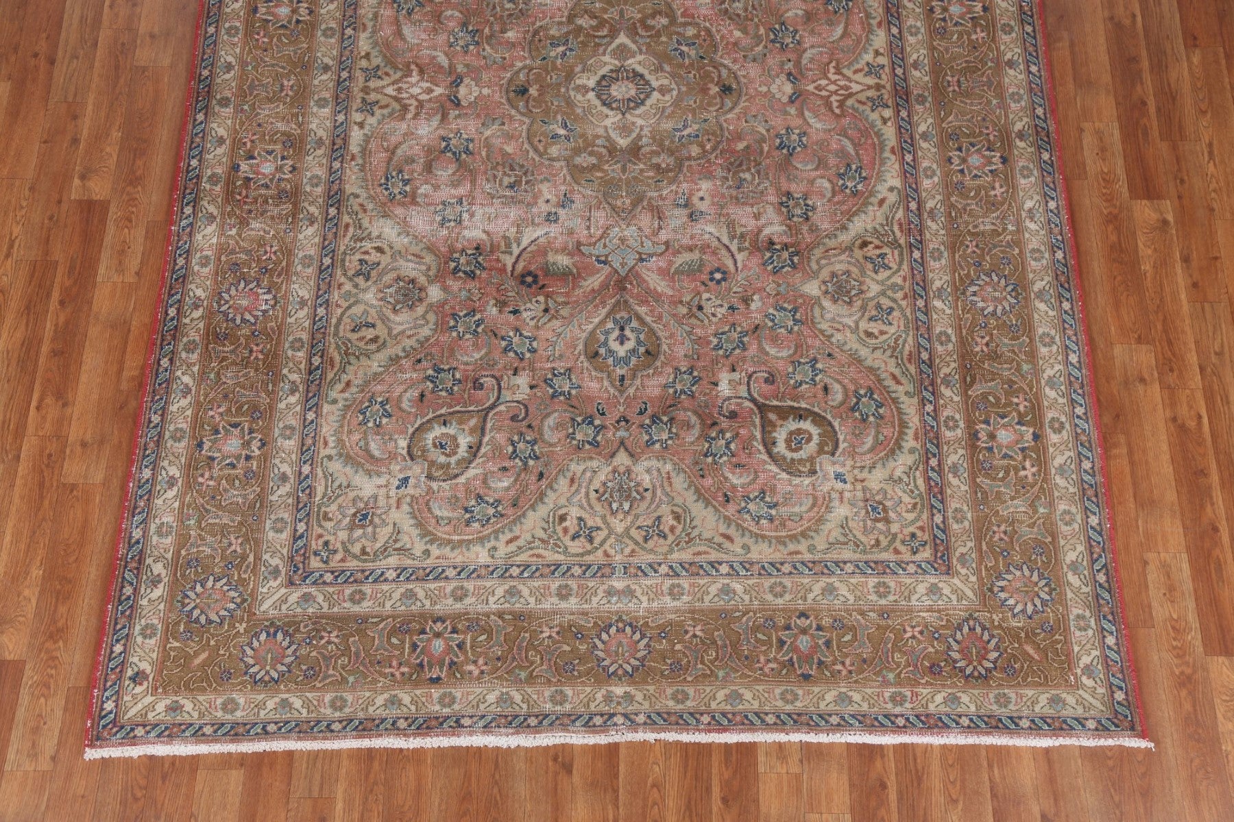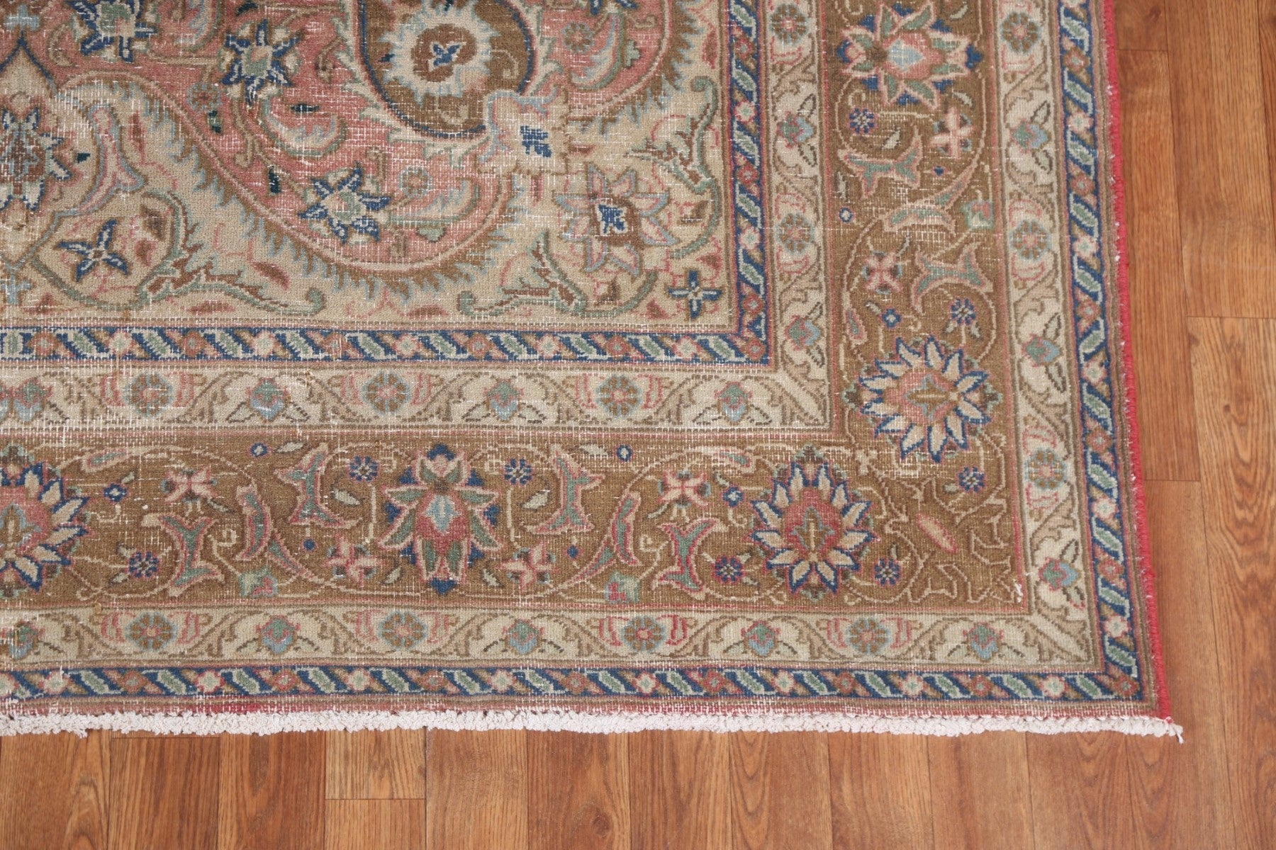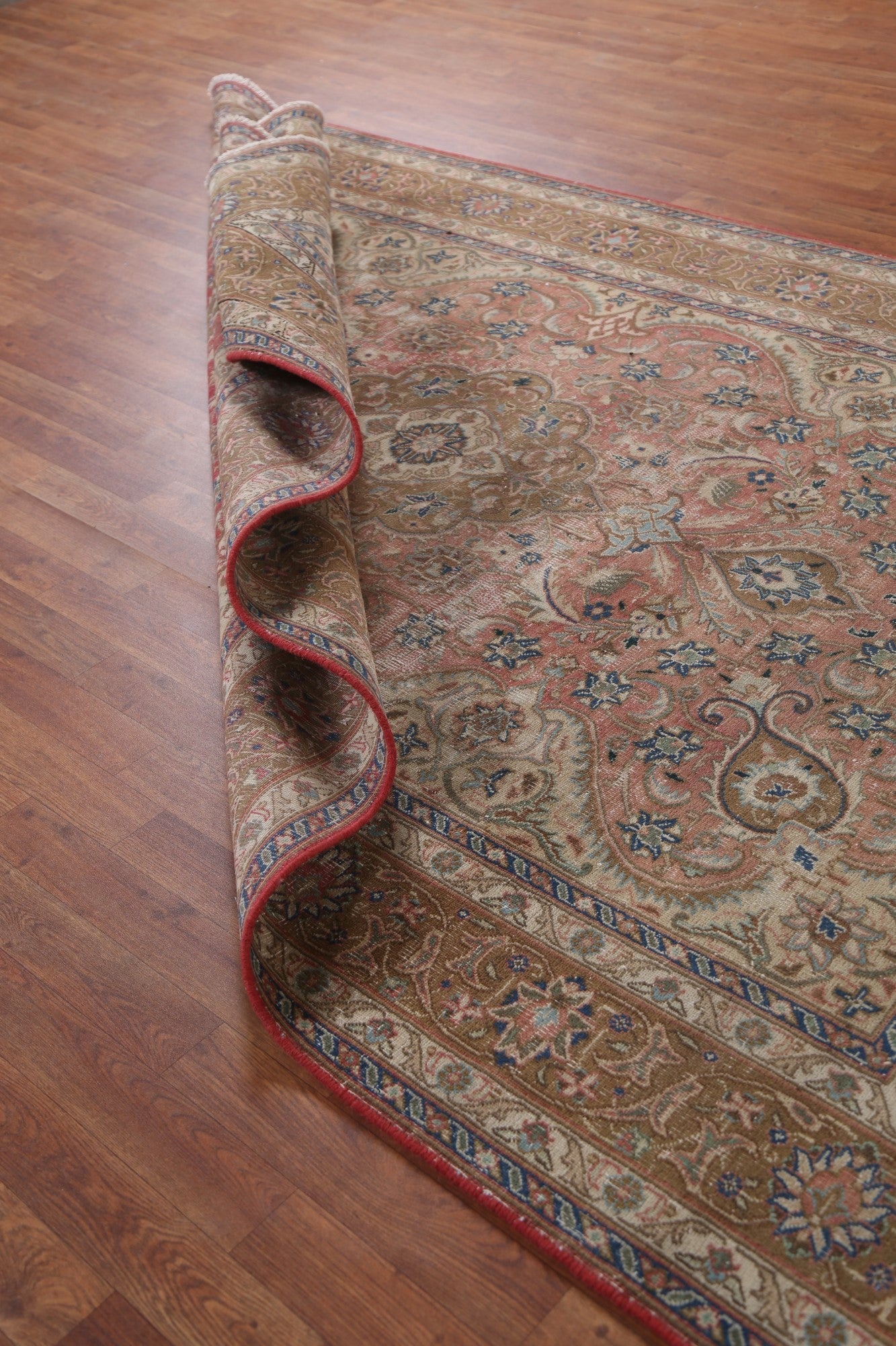 A Beautiful Genuine Persia ( Persia ) Tabriz rug is Hand Knotted by skillful weavers in Persia ( Persia ) with 100% Wool Material. This rug is in Very Good ( Low Pile ) condition. dimensions are 9' 6'' X 6' 3'' in foot and 290 X 191 in centimeter. the primary color is Coral.
