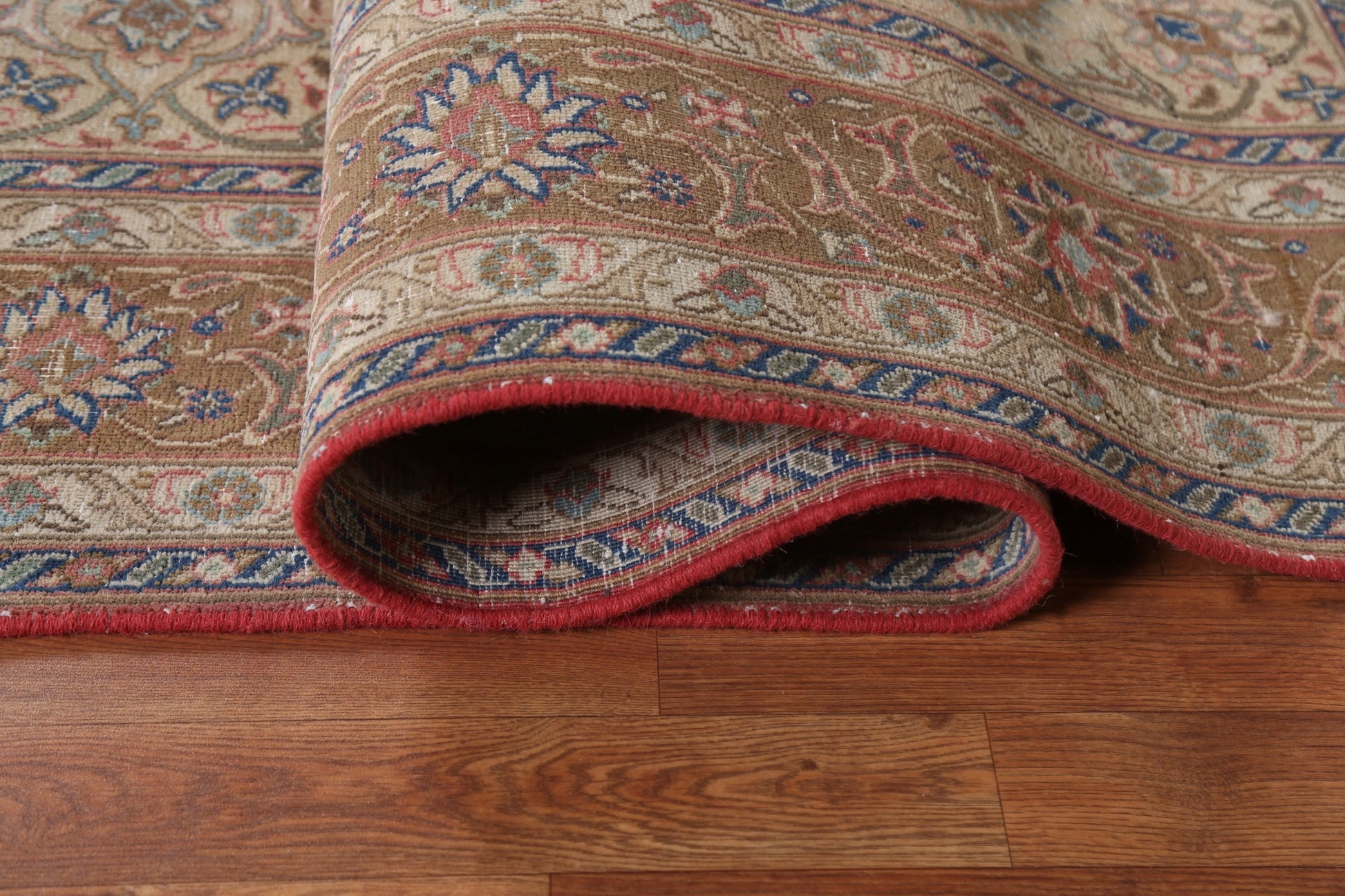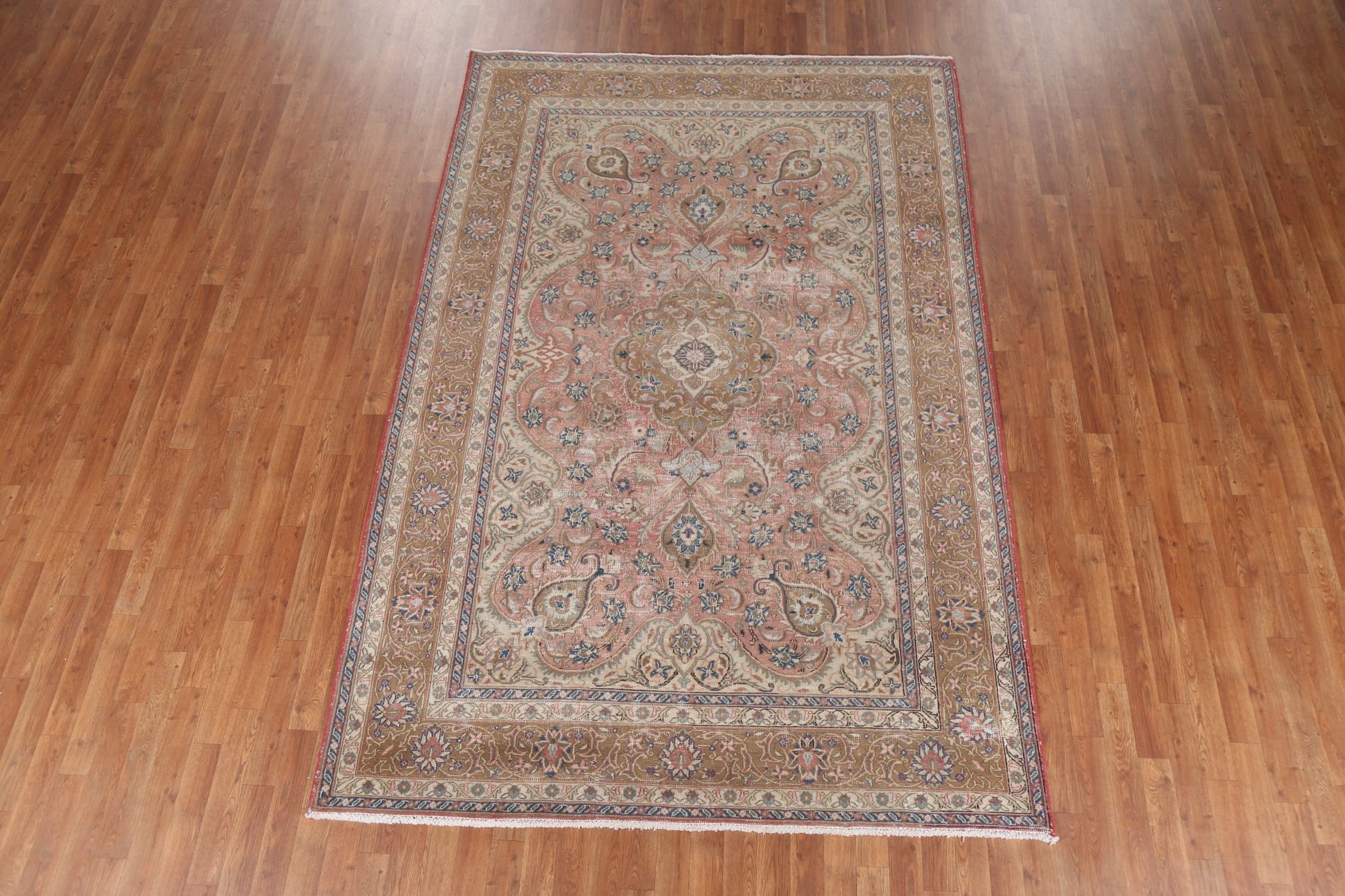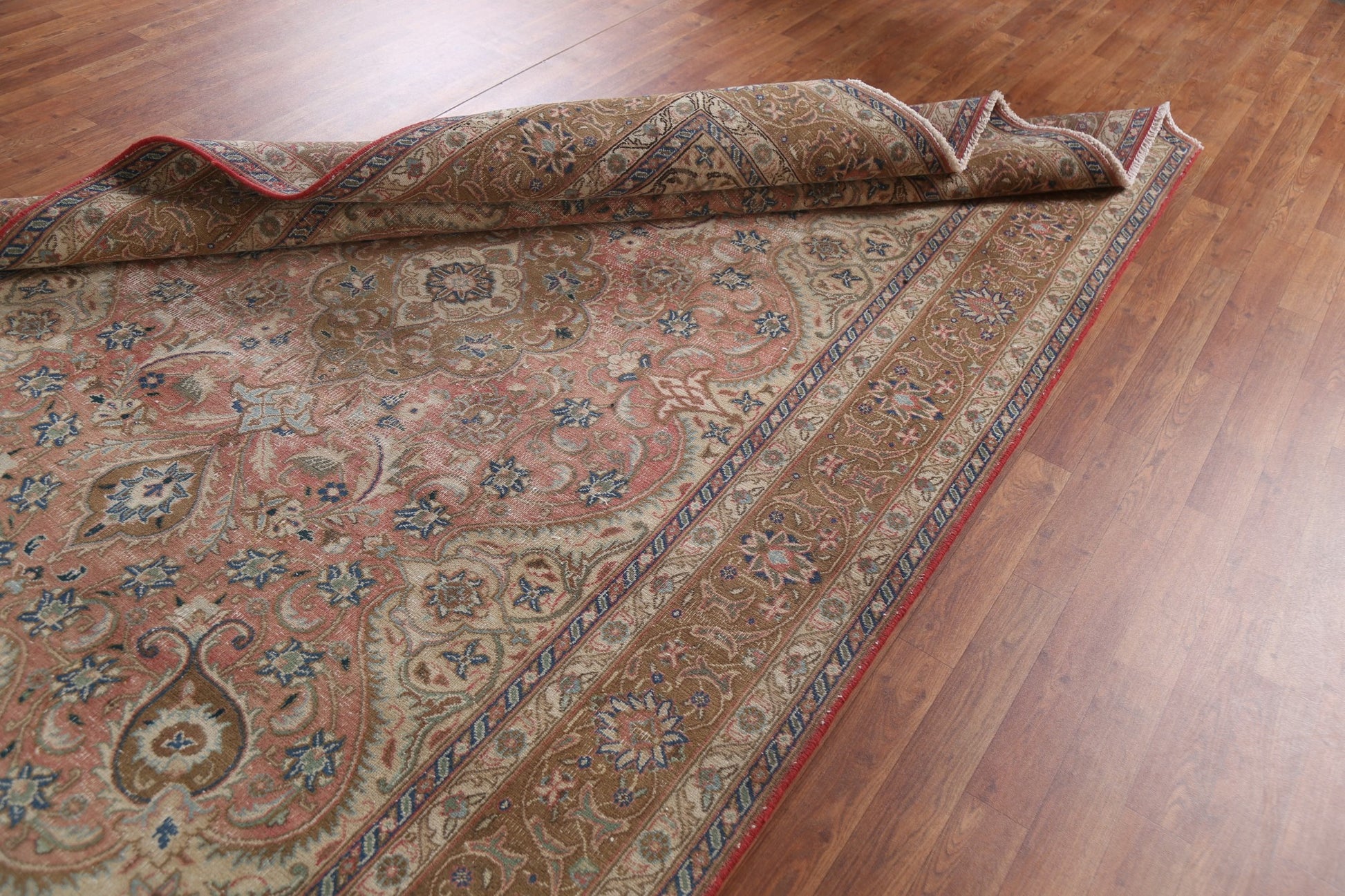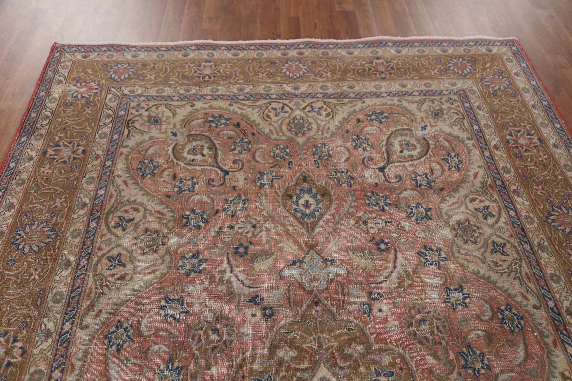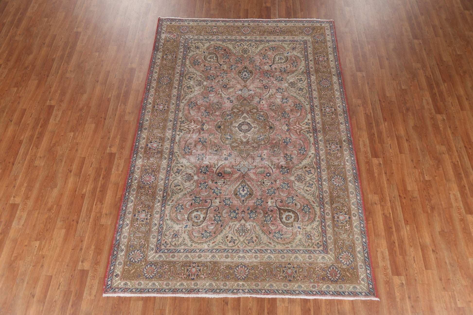 A Beautiful Genuine Persia ( Persia ) Tabriz rug is Hand Knotted by skillful weavers in Persia ( Persia ) with 100% Wool Material. This rug is in Very Good ( Low Pile ) condition. dimensions are 9' 6'' X 6' 3'' in foot and 290 X 191 in centimeter. the primary color is Coral.