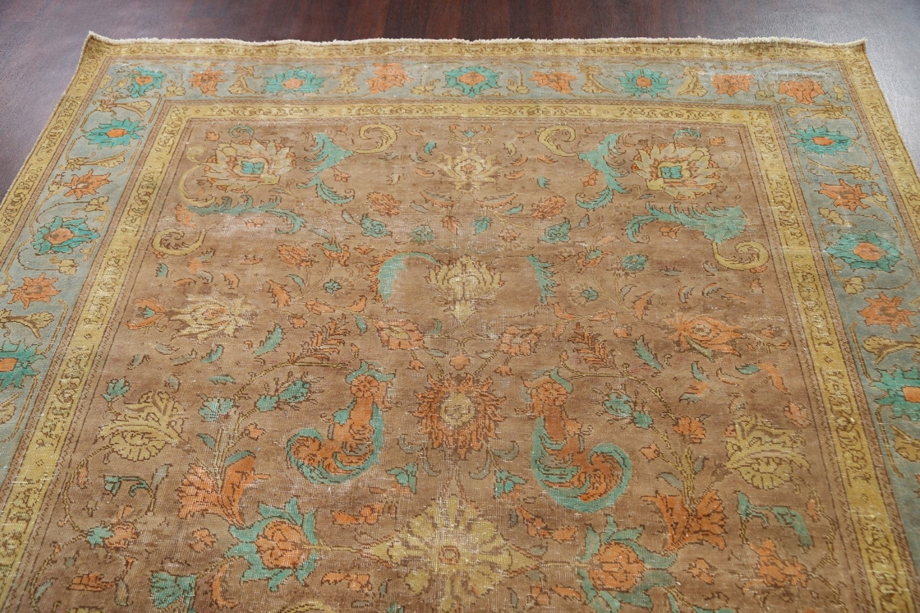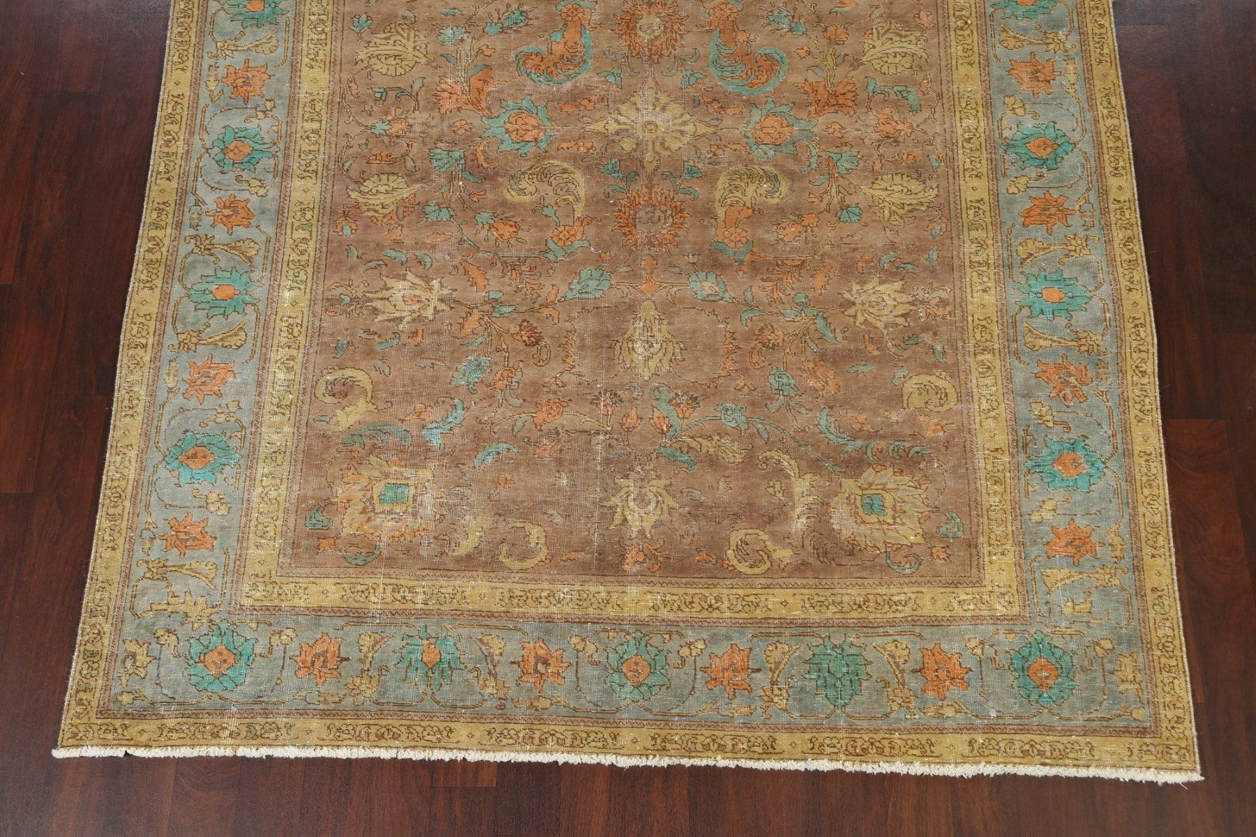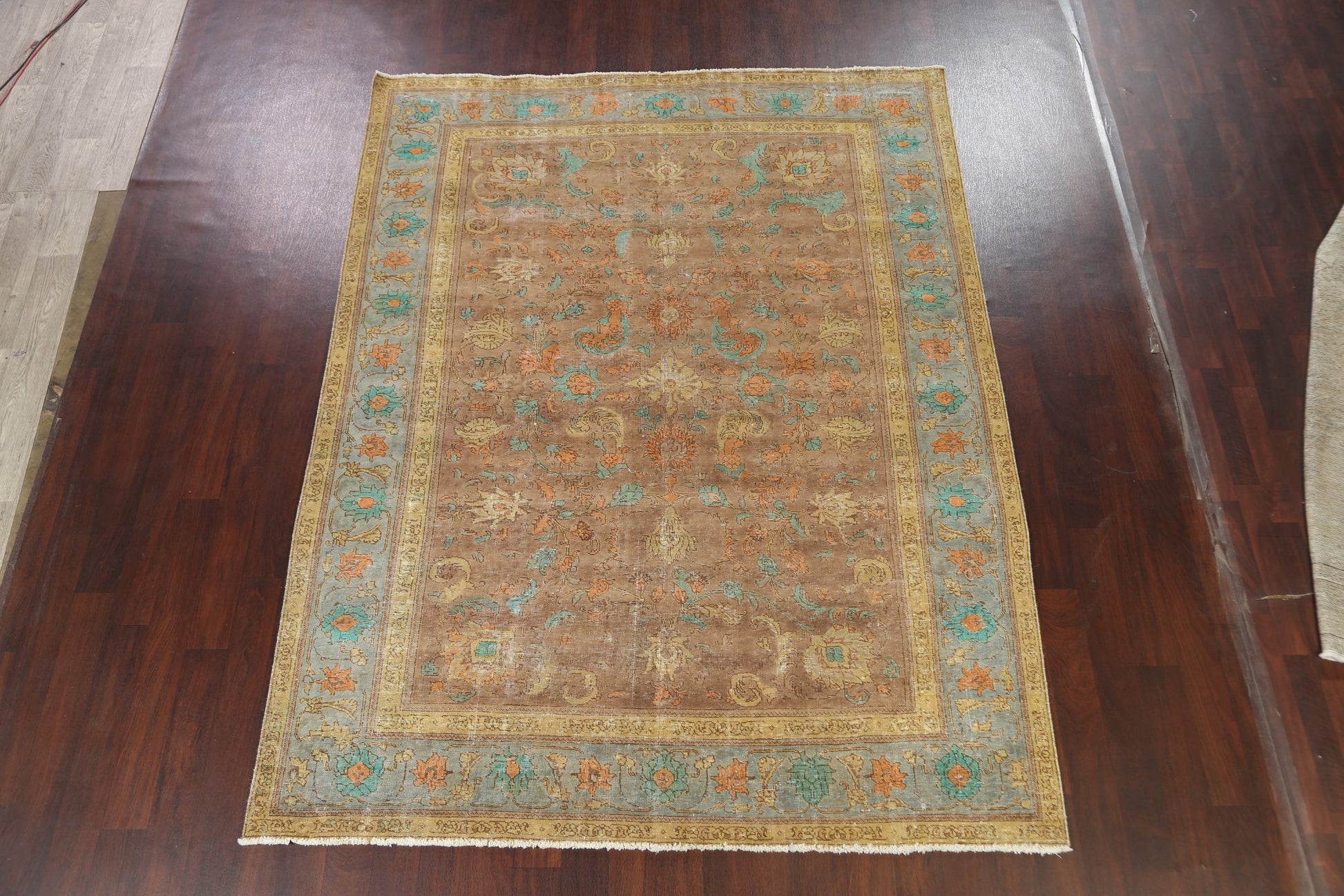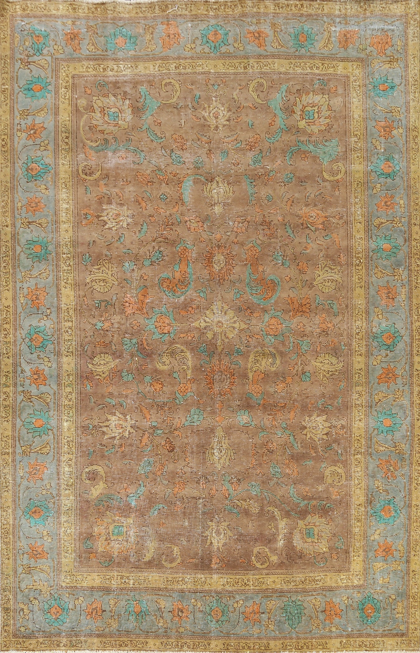 A Beautiful Genuine Persia ( Persia ) Tabriz rug is Hand Knotted by skillful weavers in Persia ( Persia ) with 100% Wool Material. This rug is in Very Good (Evenly Low Pile) condition. dimensions are 9' 7'' X 7' 4'' in foot and 292 X 224 in centimeter. the primary color is Brown.
