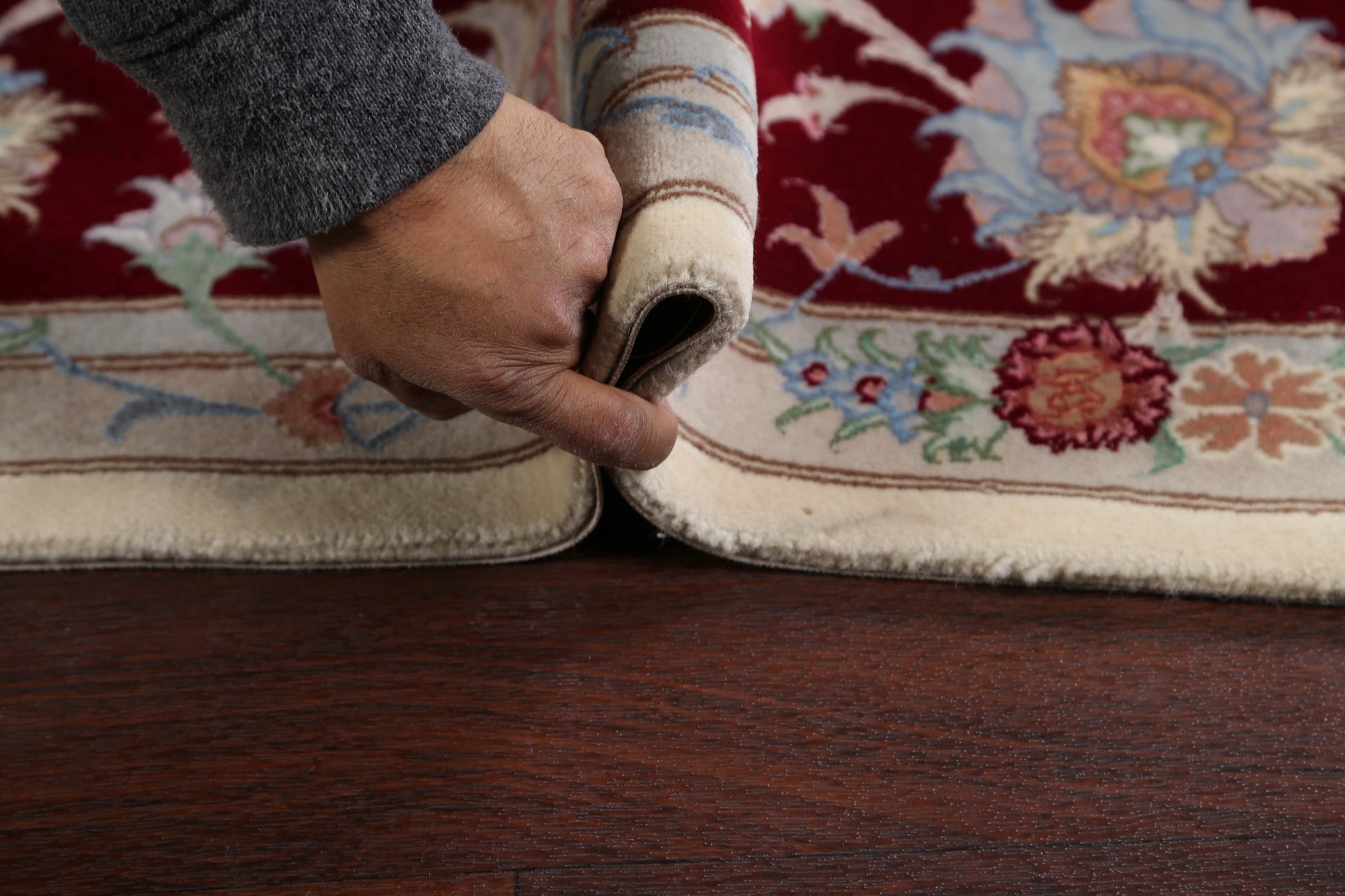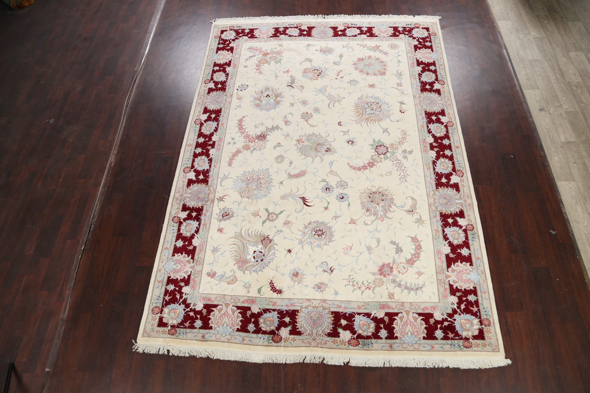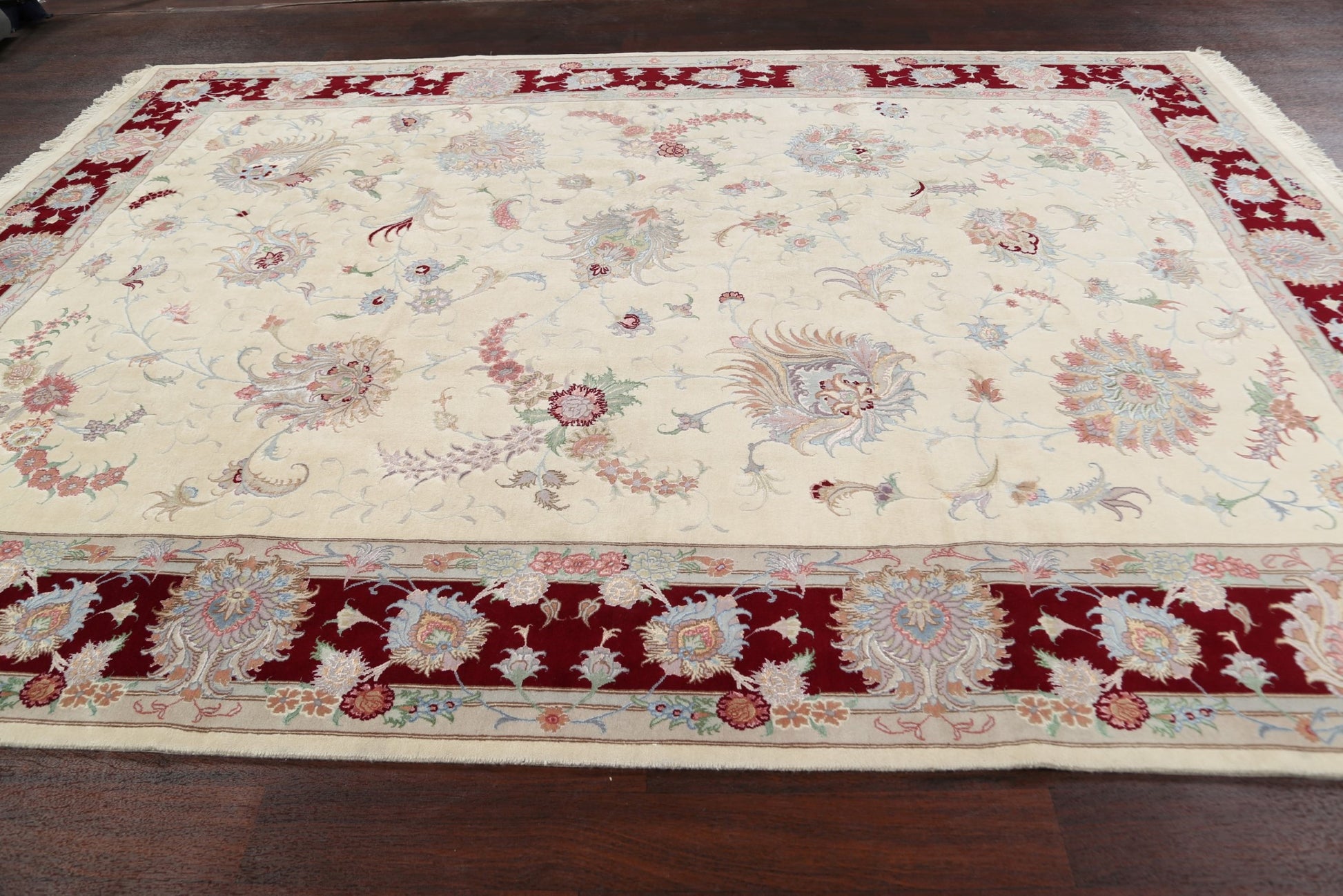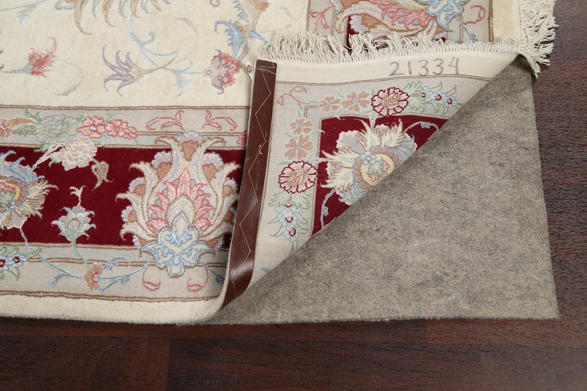A Beautiful Genuine Persia ( Persia ) Tabriz rug is Hand Knotted by skillful weavers in Persia ( Persia ) with Wool & Silk Material. This rug is in New, First Quality condition. dimensions are 11' 1'' X 8' 0'' in foot and 338 X 244 in centimeter. the primary color is Beige & Ivories.