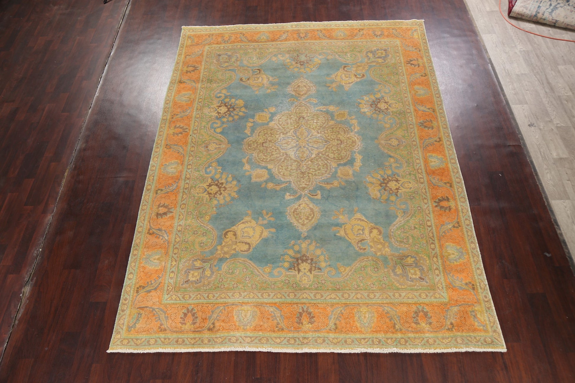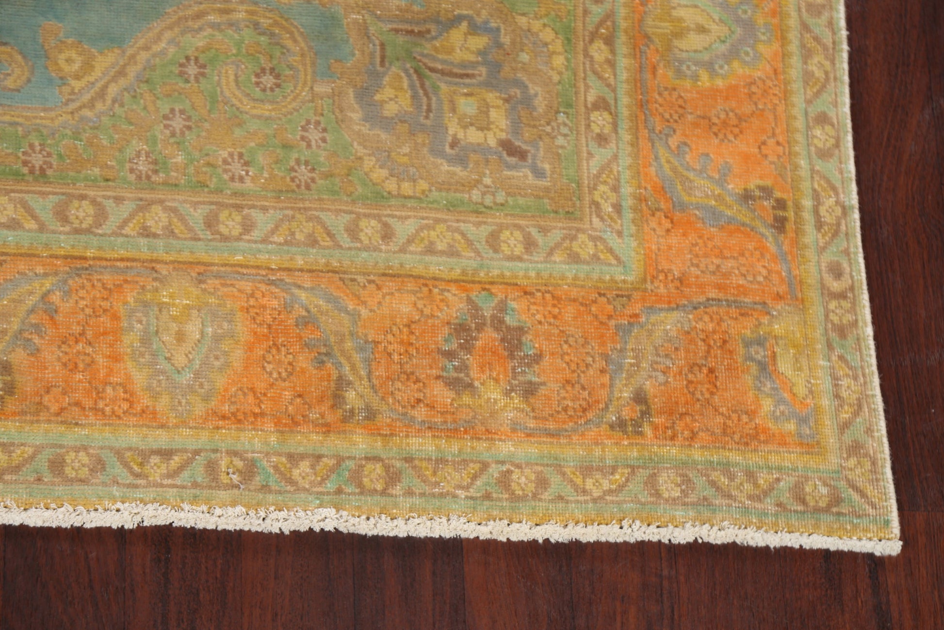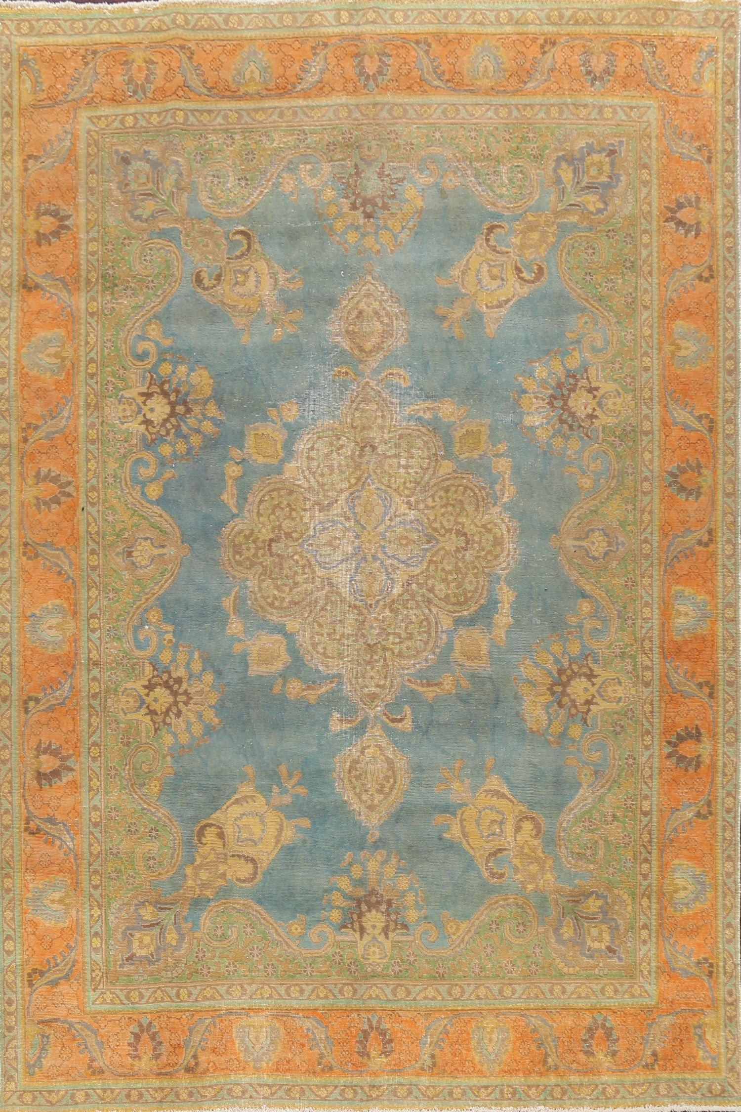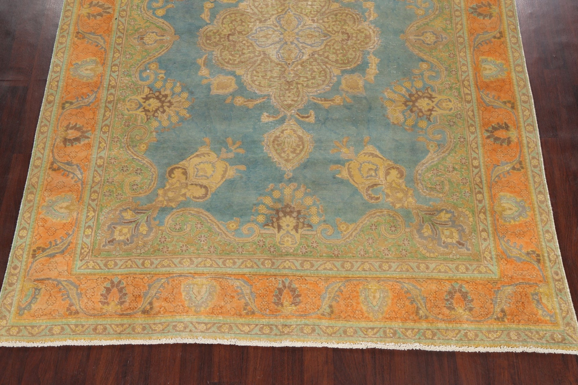 A Beautiful Genuine Persia ( Persia ) Tabriz rug is Hand Knotted by skillful weavers in Persia ( Persia ) with 100% Wool Material. This rug is in Very Good ( Low Pile ) condition. dimensions are 10' 10'' X 8' 1'' in foot and 330 X 246 in centimeter. the primary color is Navy Blue & Blues.