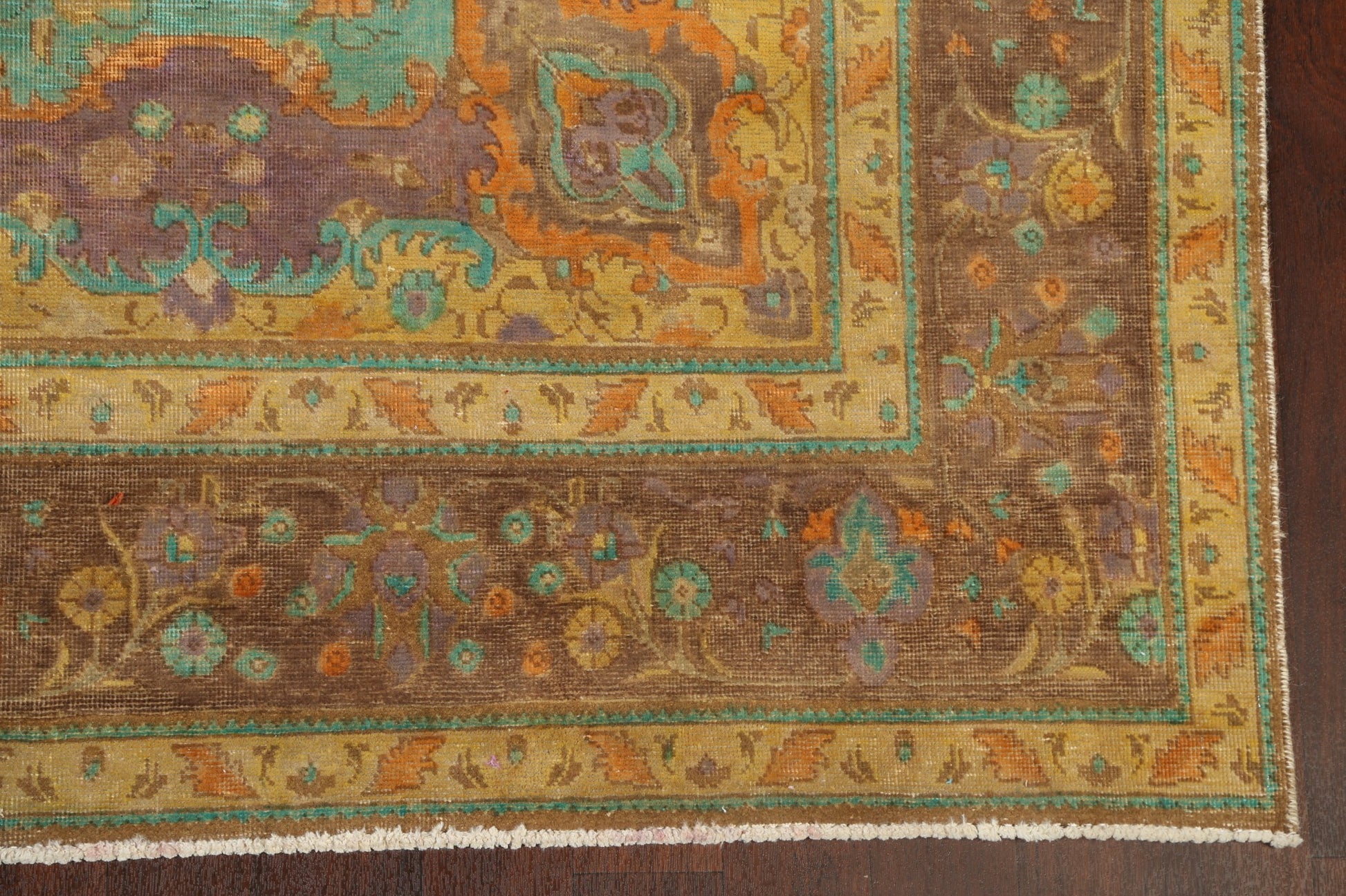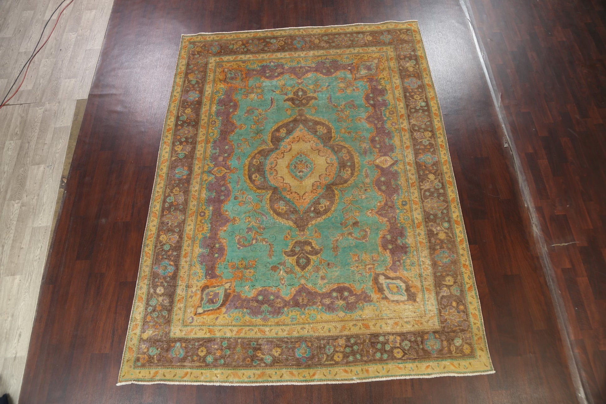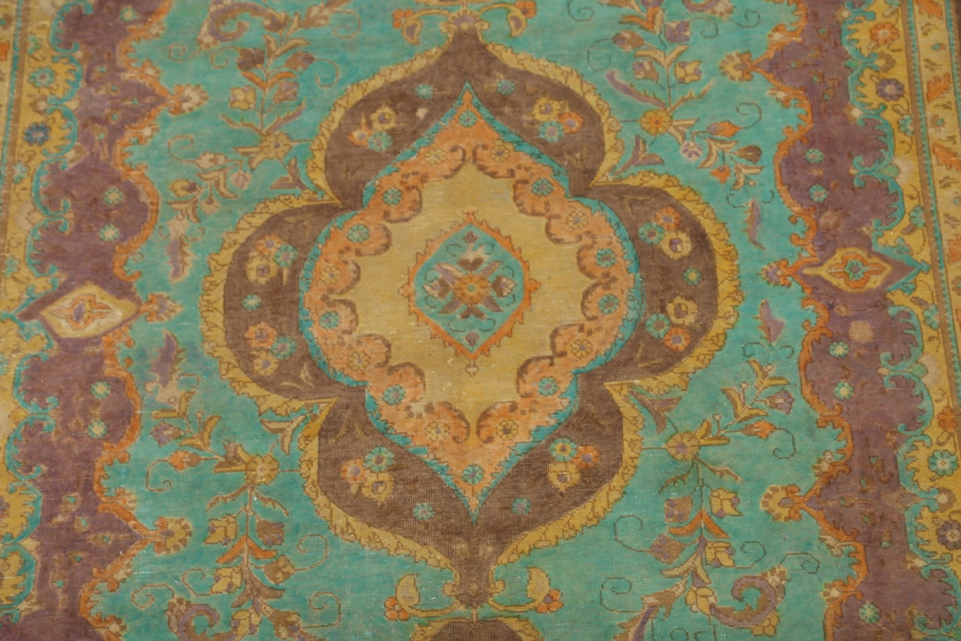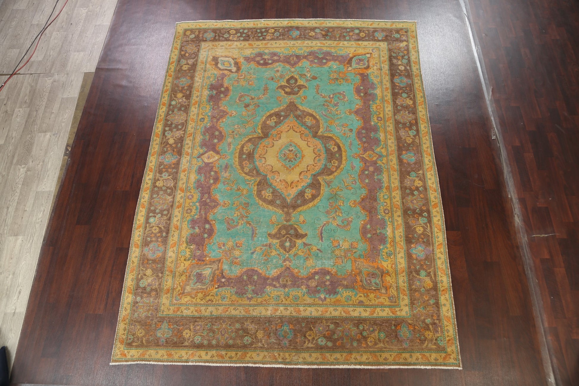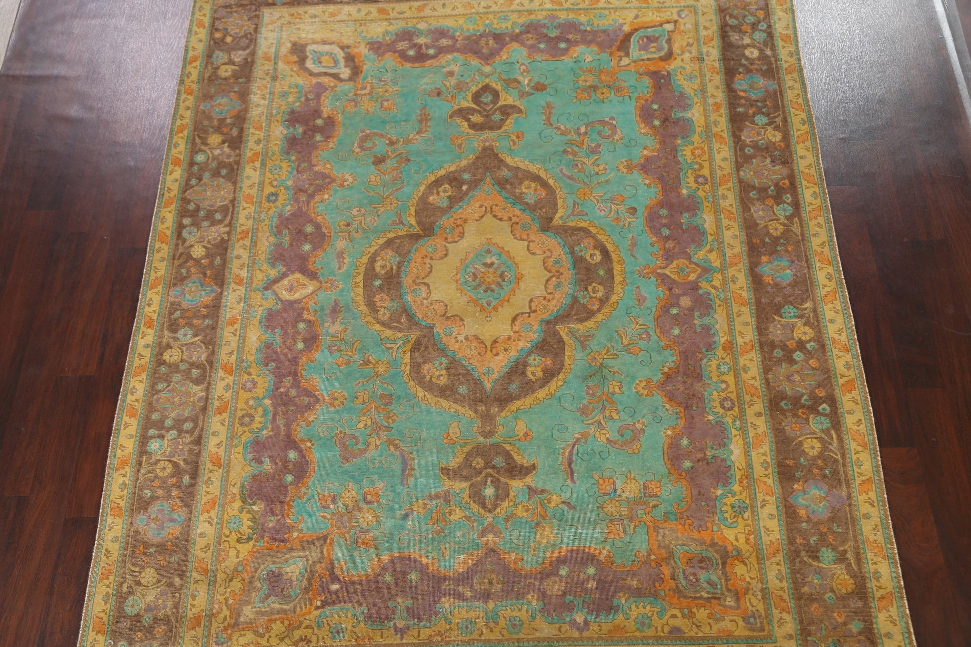 A Beautiful Genuine Persia ( Persia ) Tabriz rug is Hand Knotted by skillful weavers in Persia ( Persia ) with 100% Wool Material. This rug is in Very Good ( Evenly Low Pile-Repair) condition. dimensions are 10' 9'' X 7' 11'' in foot and 328 X 241 in centimeter. the primary color is Green.