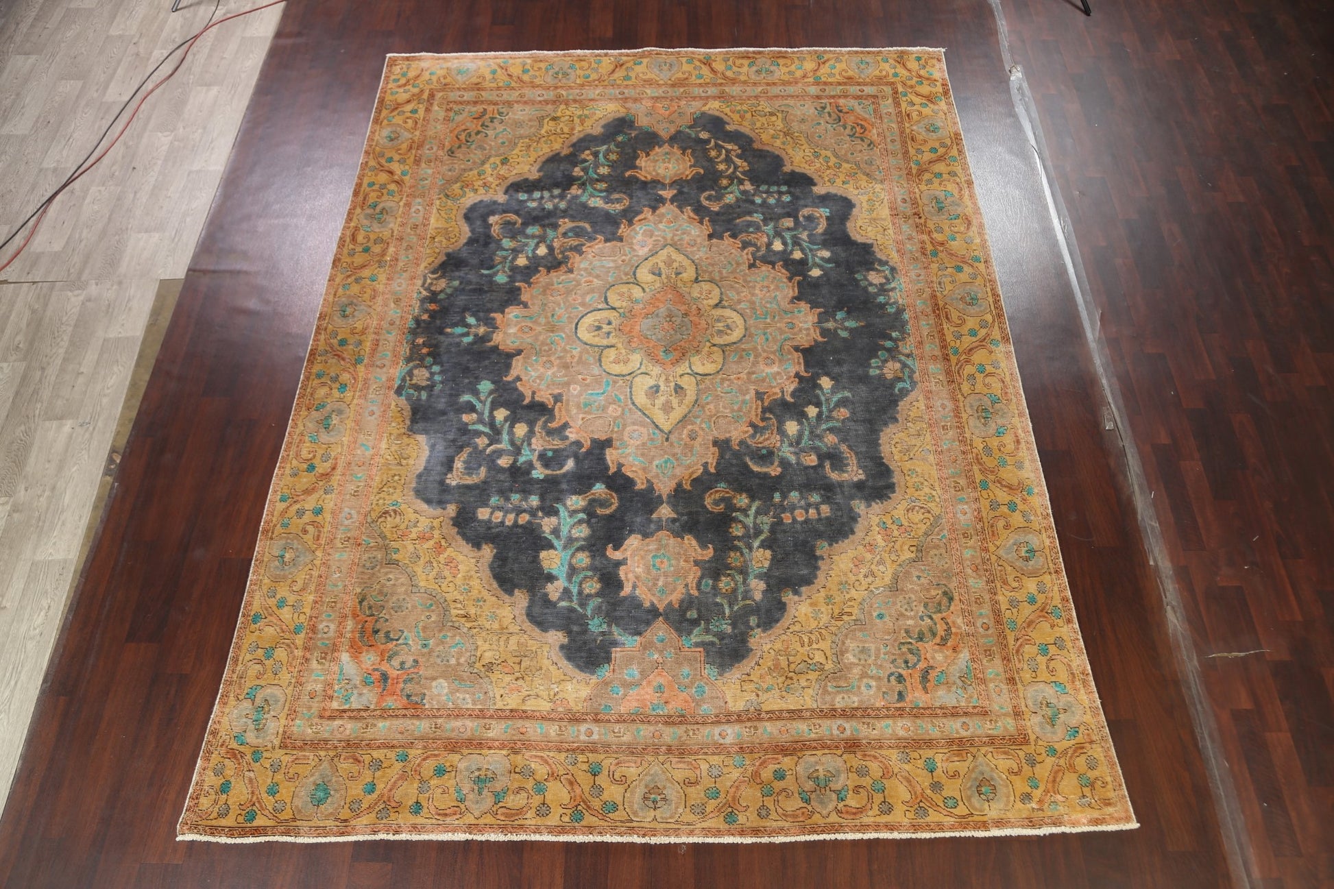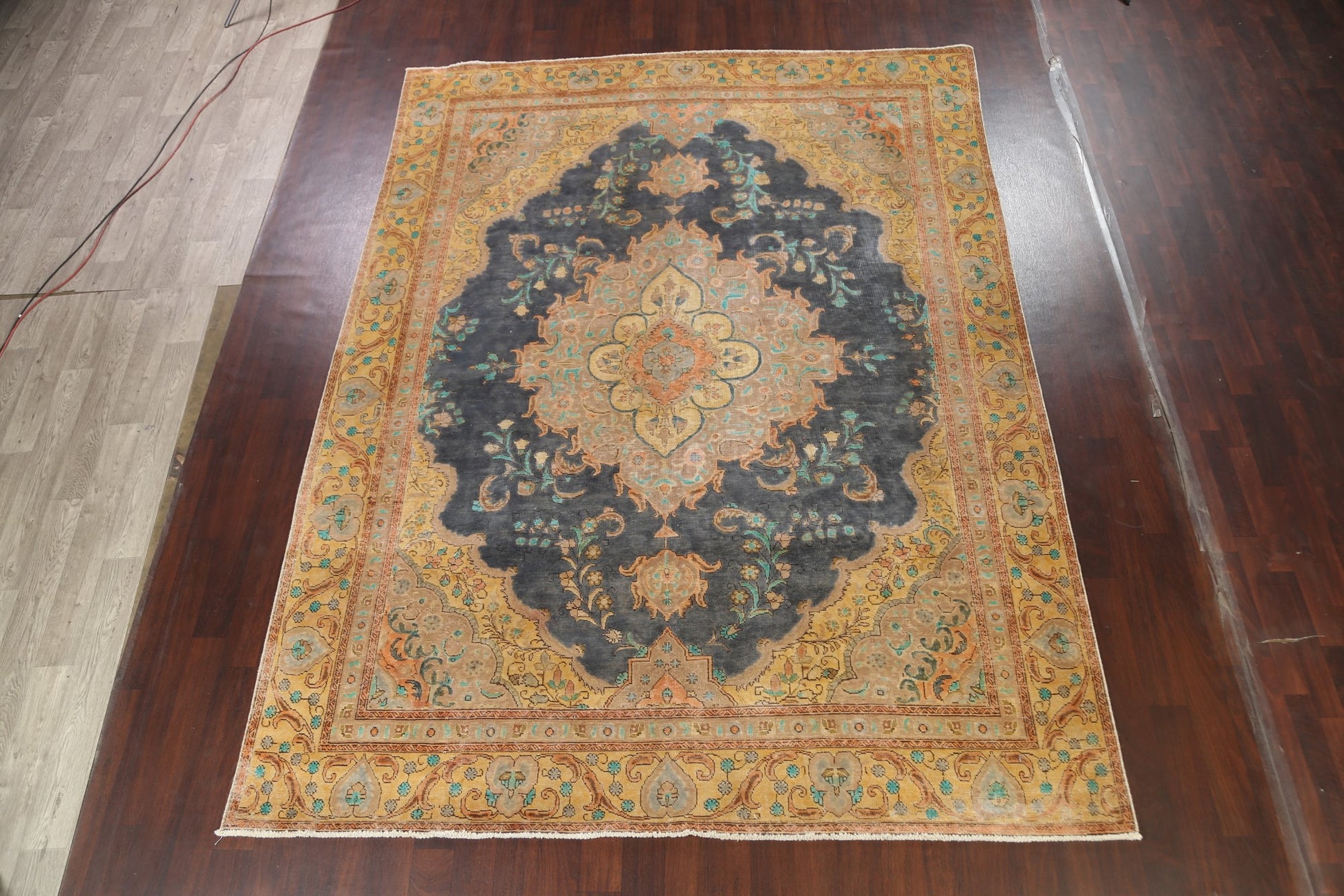 A Beautiful Genuine Persia ( Persia ) Tabriz rug is Hand Knotted by skillful weavers in Persia ( Persia ) with 100% Wool Material. This rug is in Very Good (Evenly Low Pile) condition. dimensions are 12' 1'' X 9' 0'' in foot and 368 X 274 in centimeter. the primary color is Greys & Charcoal.