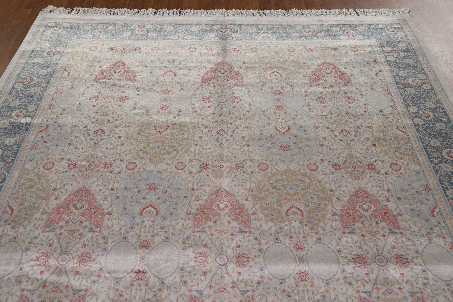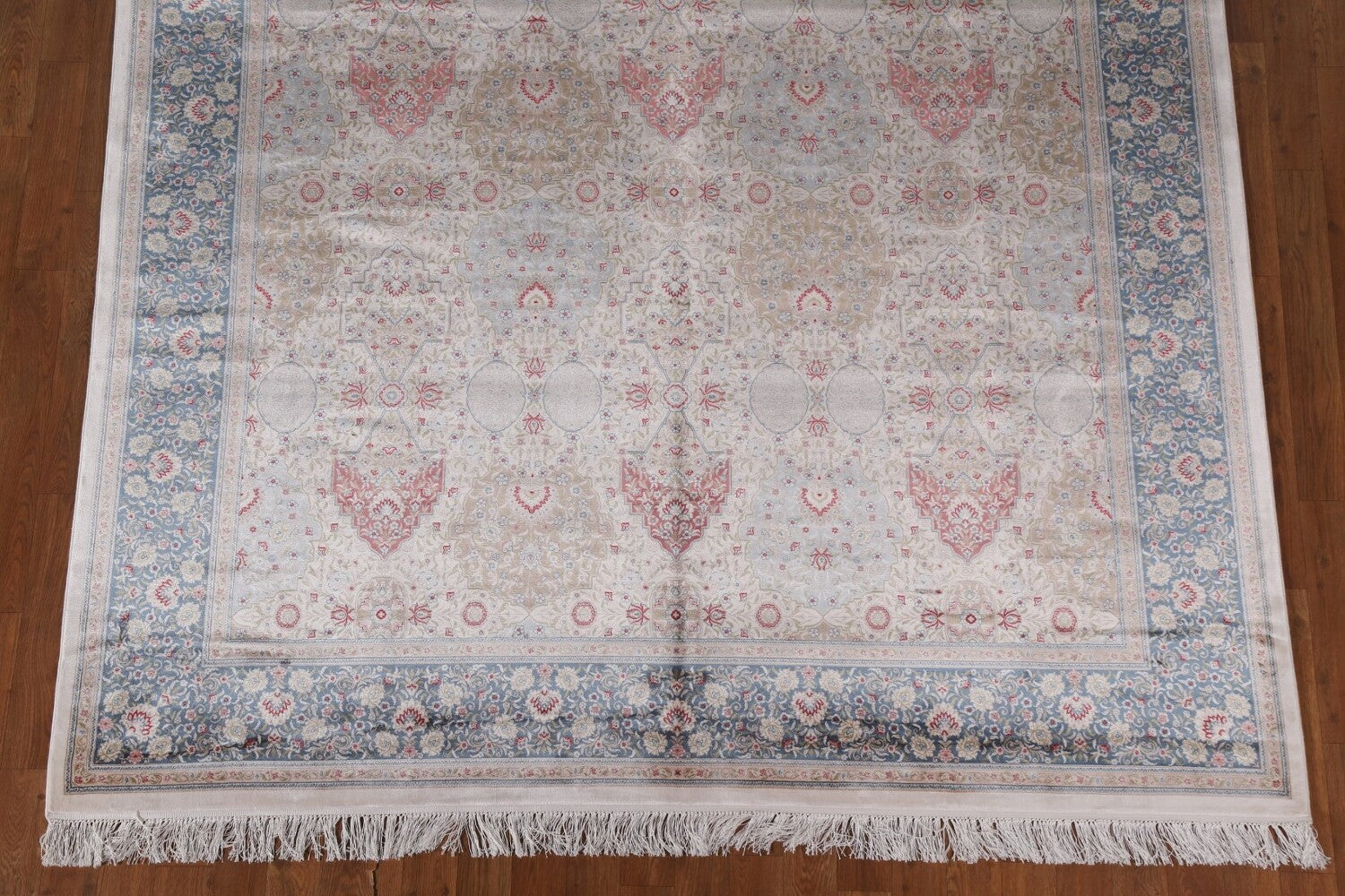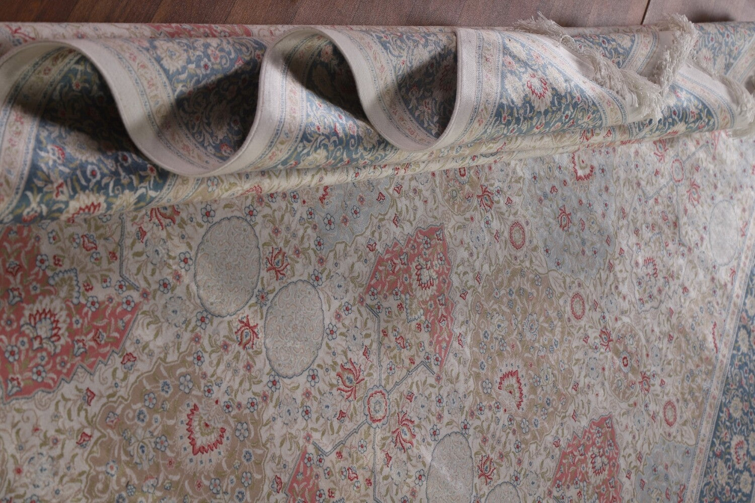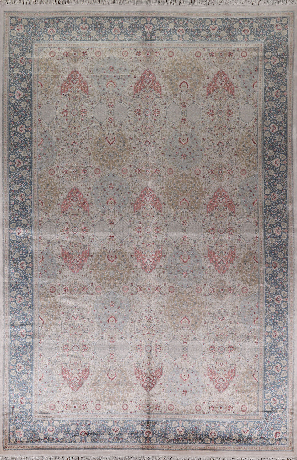 A Beautiful Genuine Turkey Tabriz rug is Machine Made by skillful weavers in Turkey with 90% Silk - 10% Polyester Material. This rug is in condition. dimensions are 9' 7'' X 6' 5'' in foot and 292 X 196 in centimeter. the primary color is Beige & Ivories.