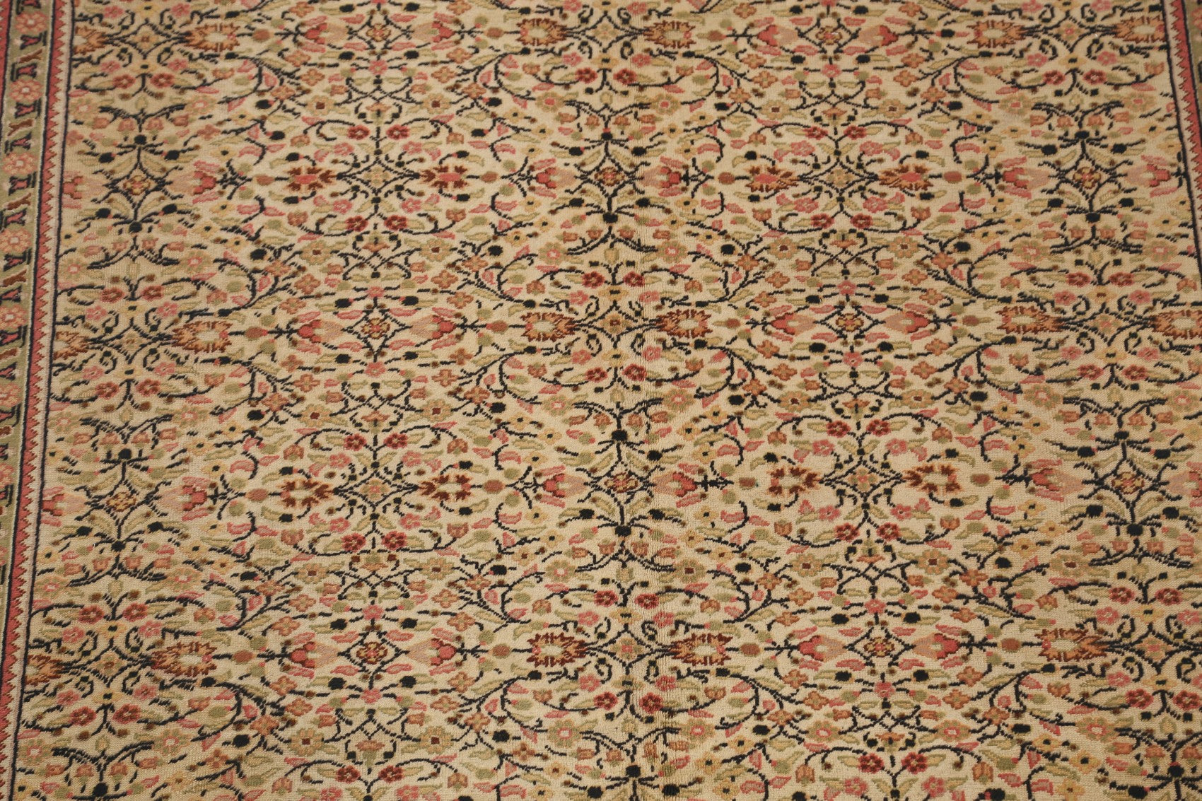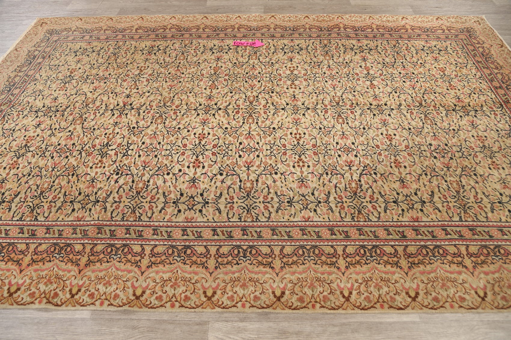 A Beautiful Genuine Turkey Anatolian rug is Hand Knotted by skillful weavers in Turkey with 100% Wool Material. This rug is in Very Good (Low Pile) condition. dimensions are 9' 9'' X 6' 6'' in foot and 297 X 198 in centimeter. the primary color is Beige & Ivories.