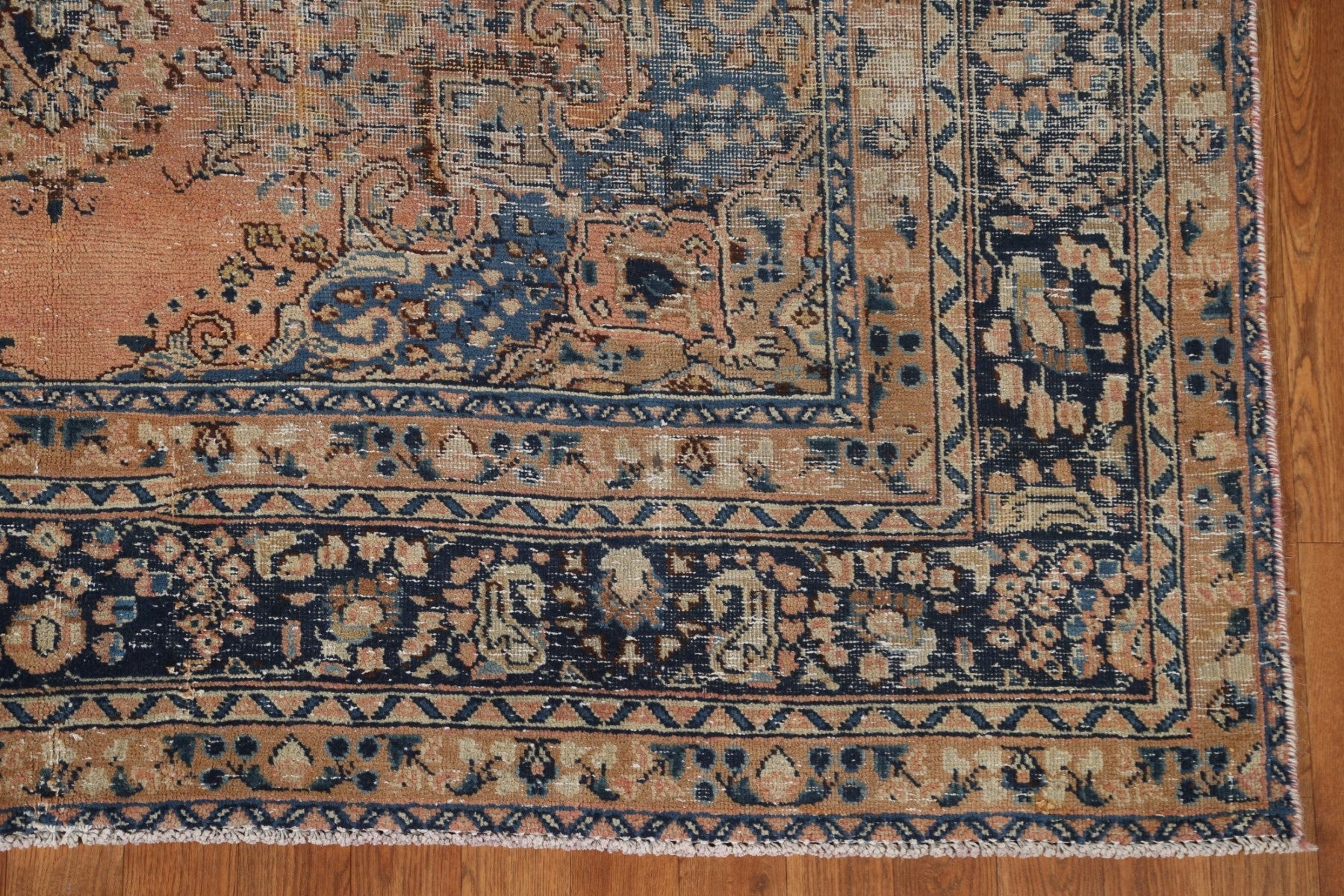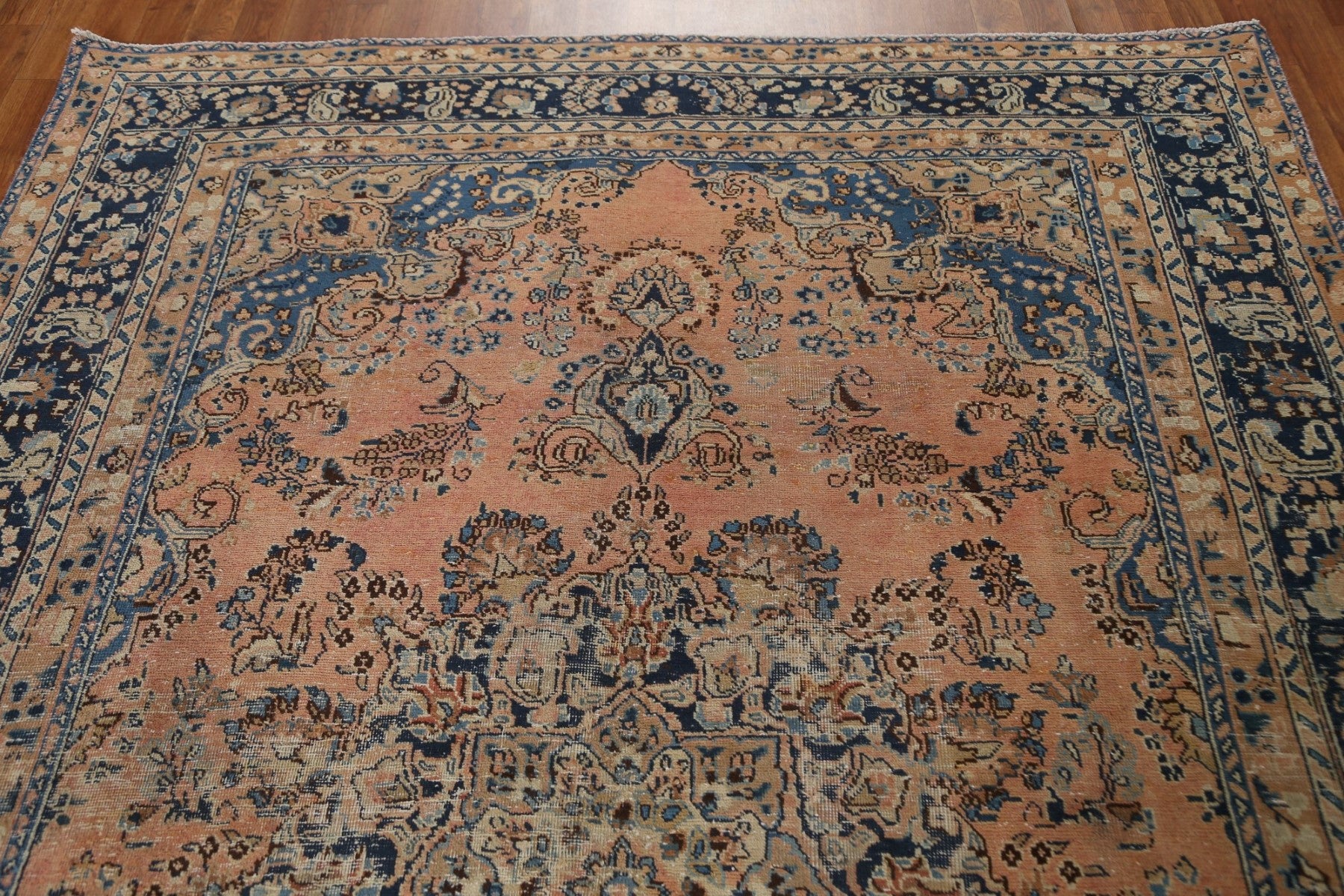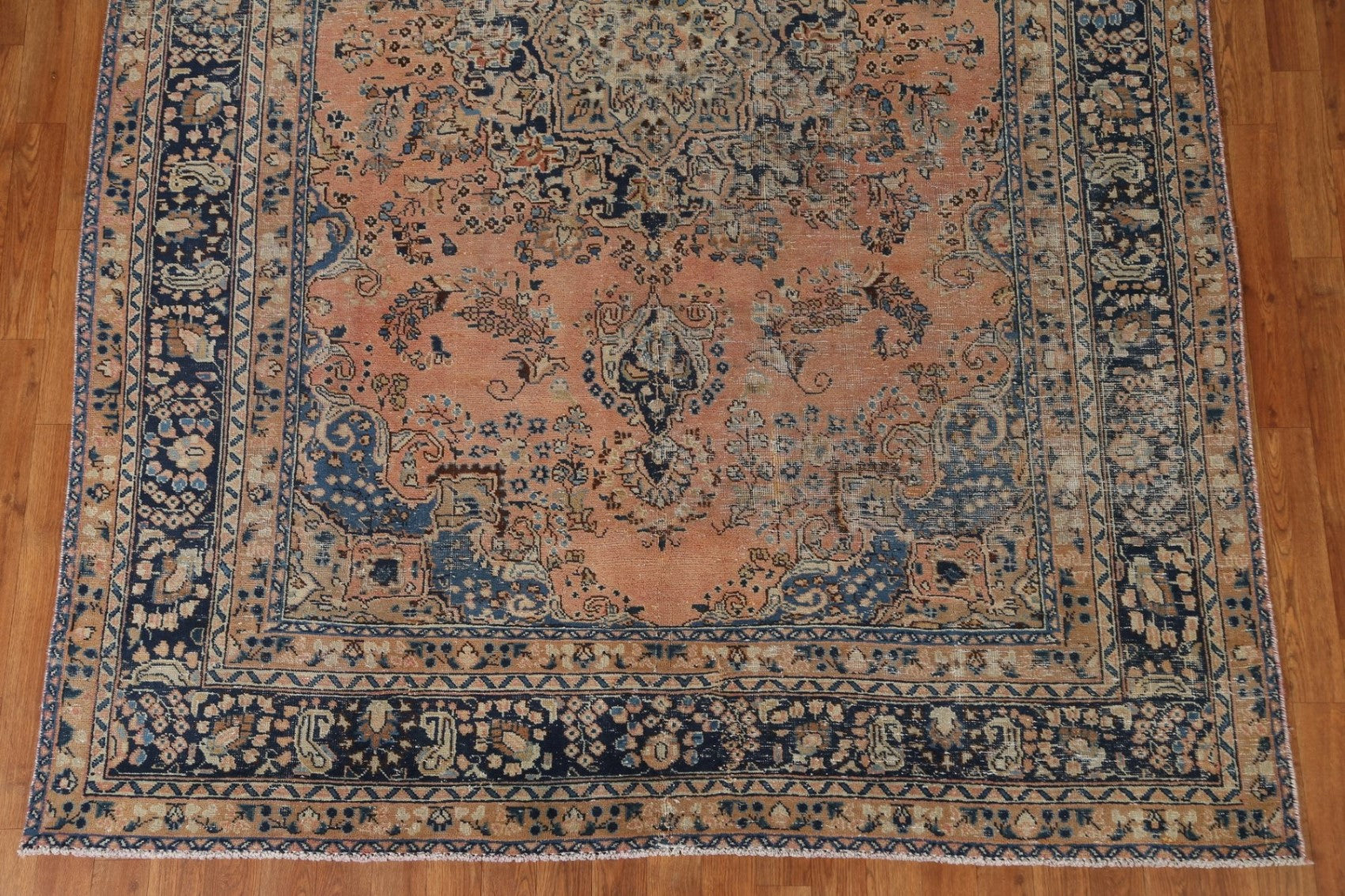 A Beautiful Genuine Persia ( Persia ) Mashad rug is Hand Knotted by skillful weavers in Persia ( Persia ) with 100% Wool Material. This rug is in Good (Evenly Low Pile-Worn) condition. dimensions are 9' 2'' X 6' 4'' in foot and 279 X 193 in centimeter. the primary color is Coral.