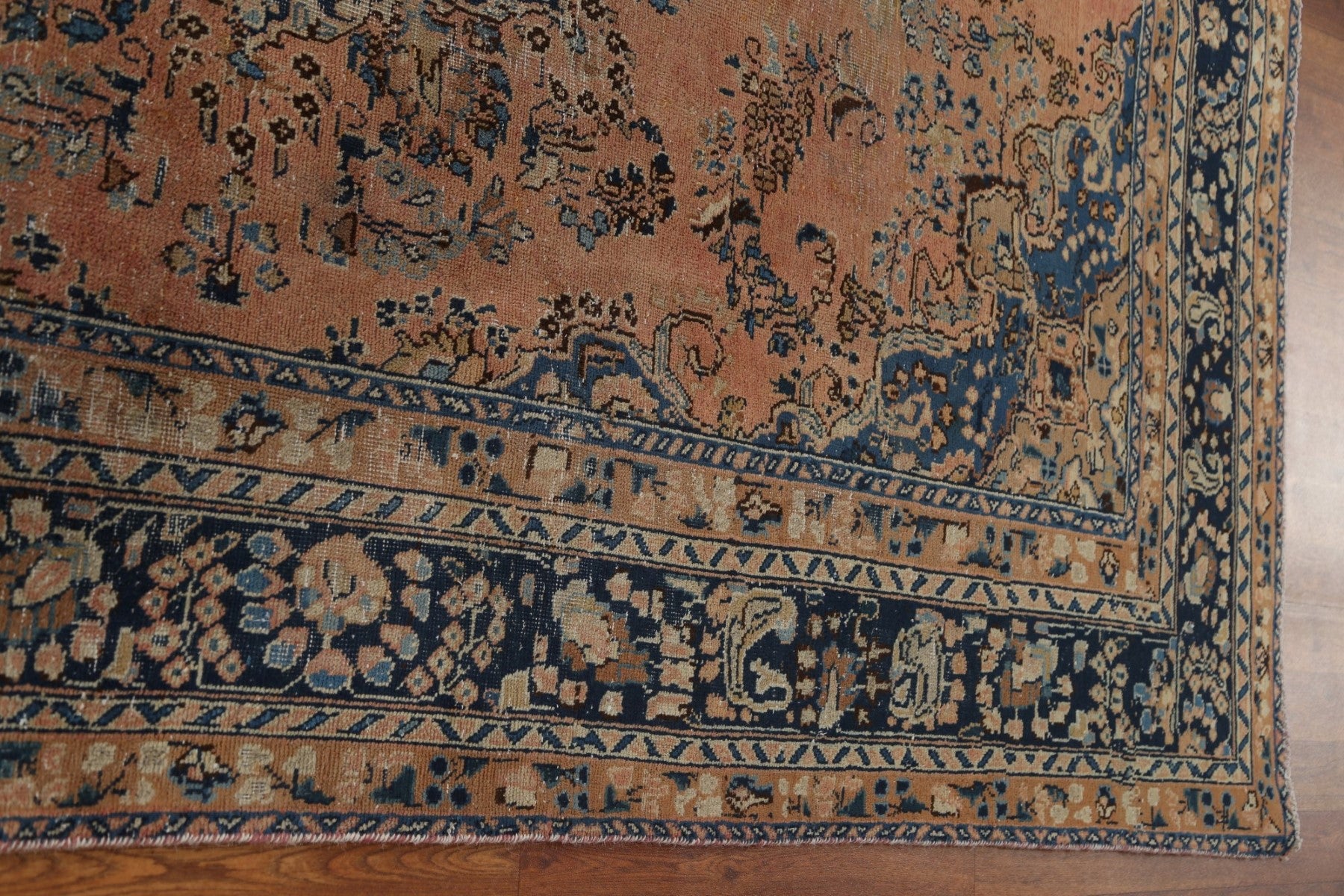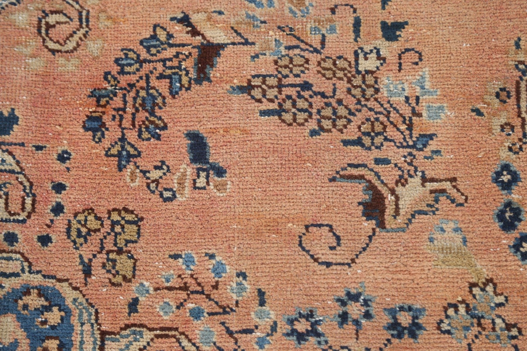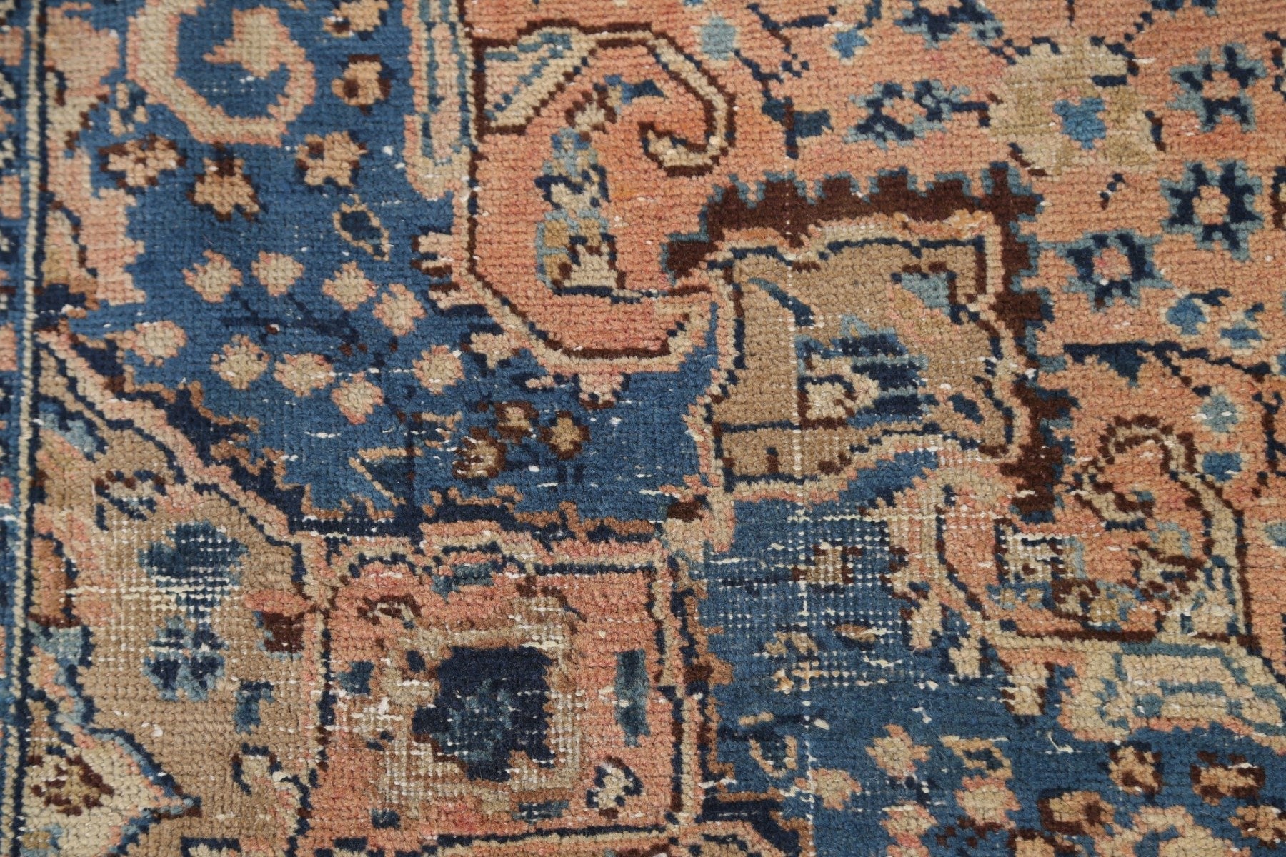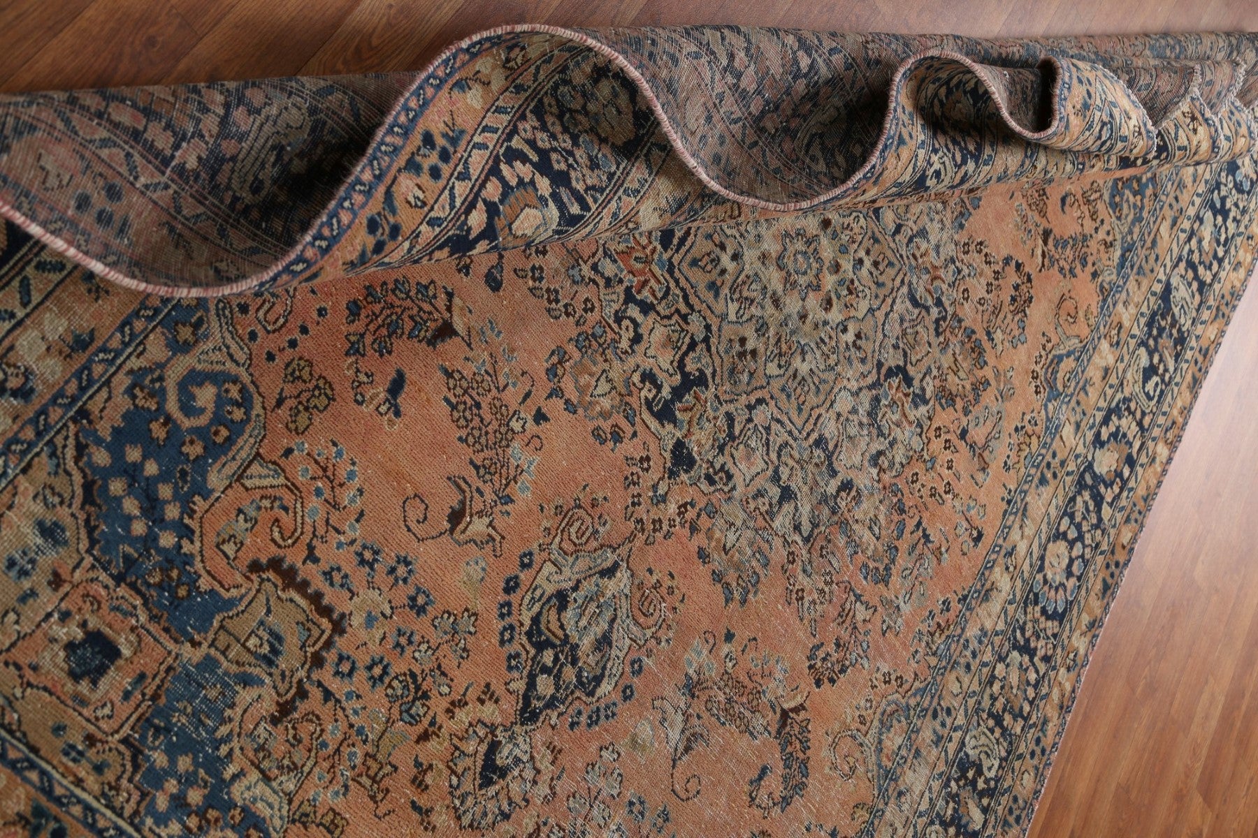 A Beautiful Genuine Persia ( Persia ) Mashad rug is Hand Knotted by skillful weavers in Persia ( Persia ) with 100% Wool Material. This rug is in Good (Evenly Low Pile-Worn) condition. dimensions are 9' 2'' X 6' 4'' in foot and 279 X 193 in centimeter. the primary color is Coral.