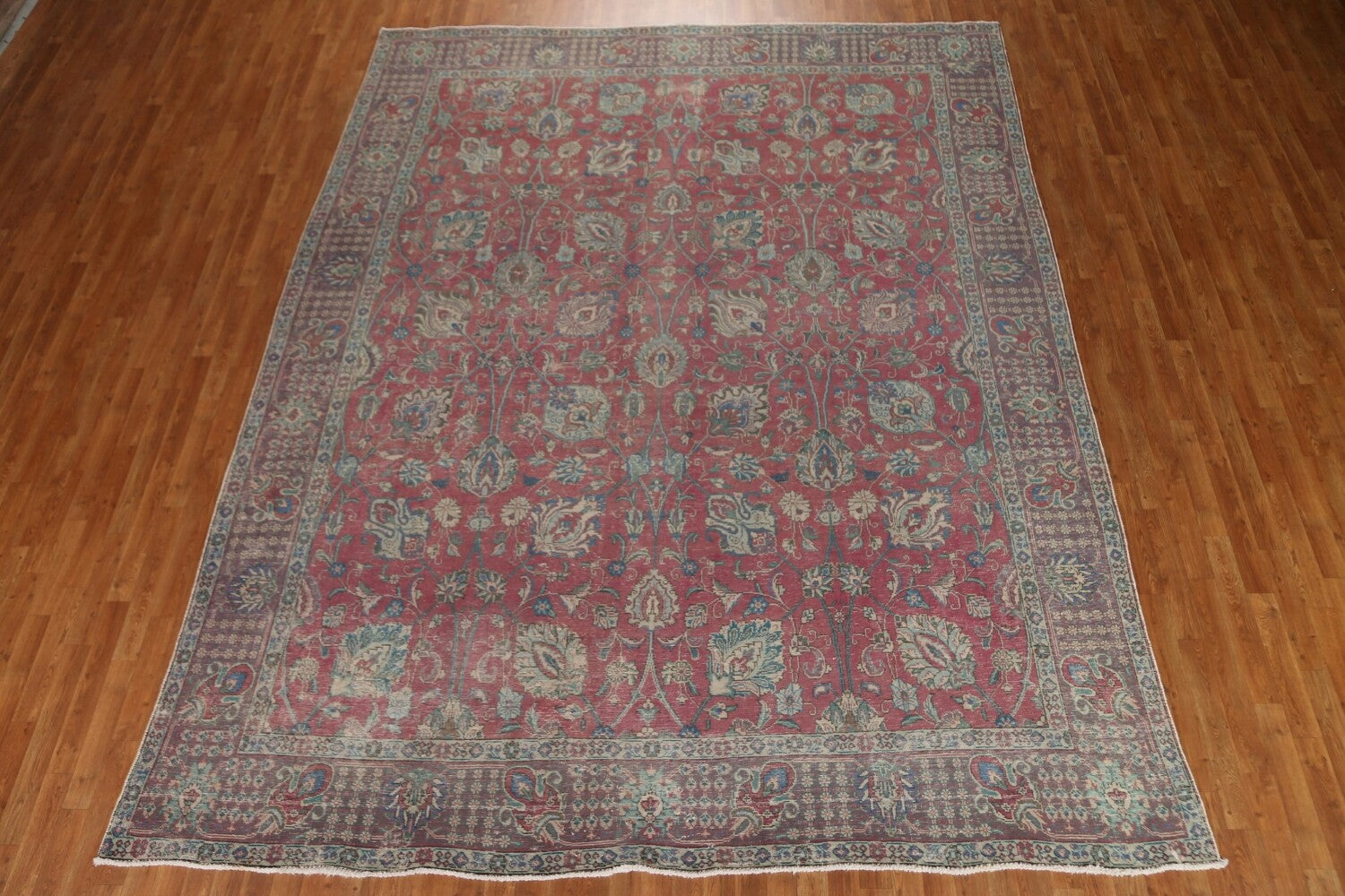 Floral Vintage Tabriz Persian Area Rug 10x12