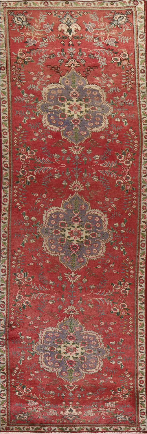 Floral Vintage Tabriz Persian Runner Rug 3x13