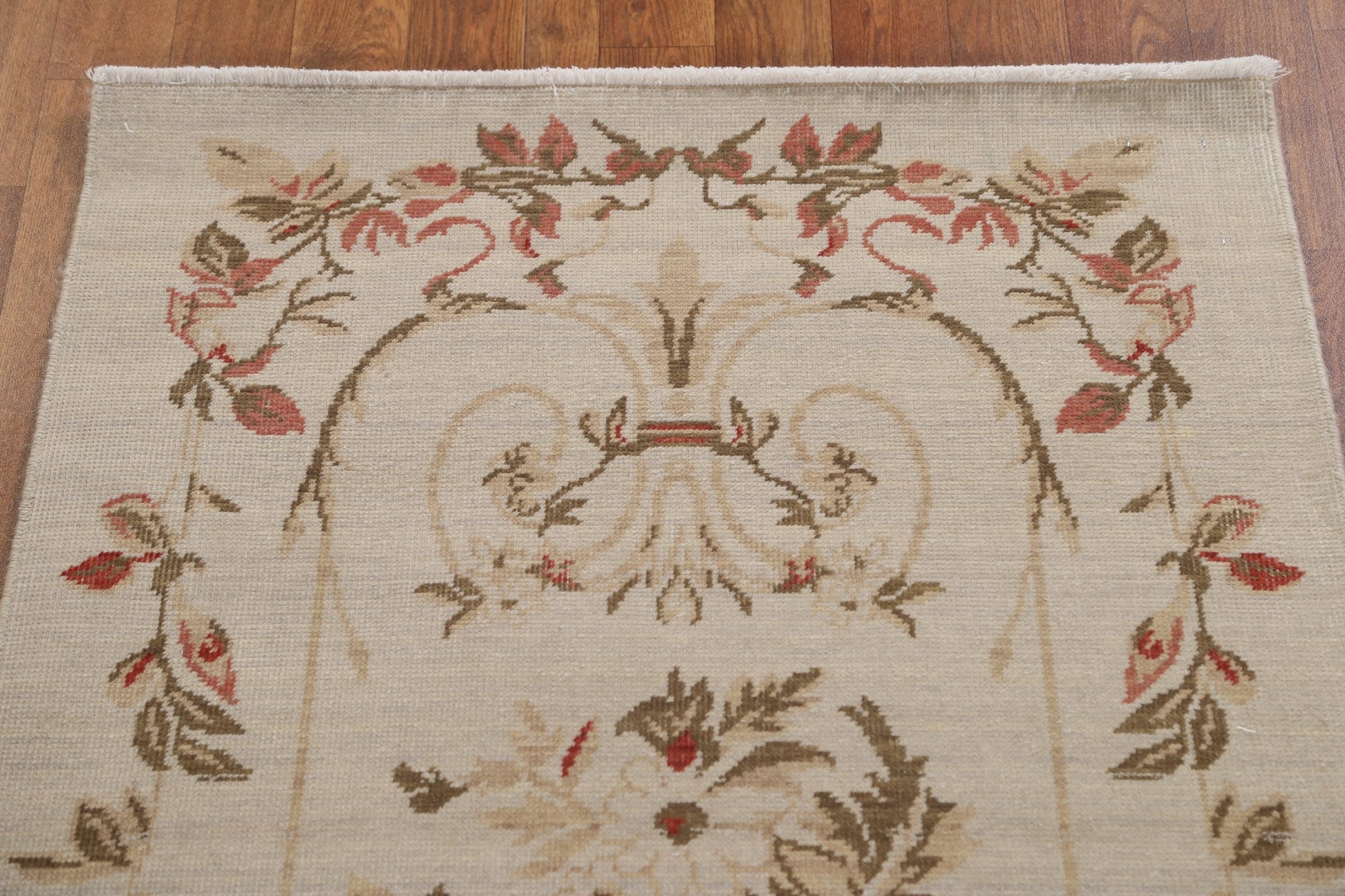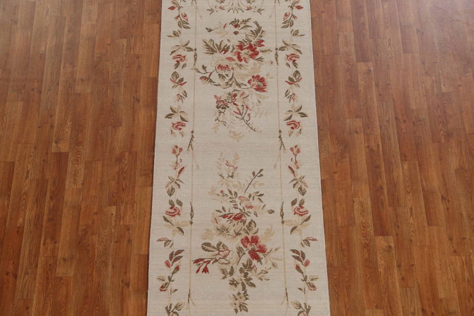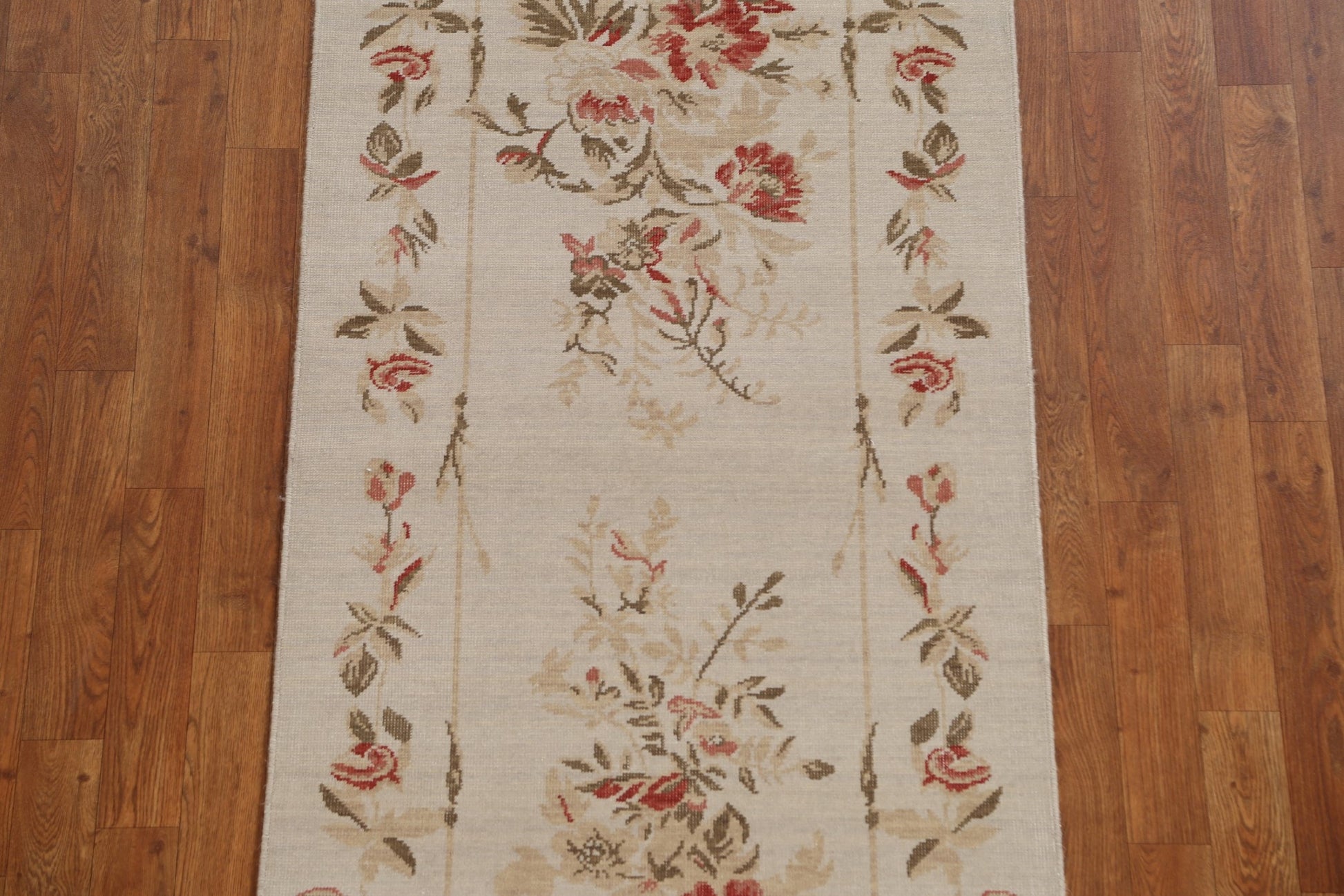 Floral Wool Aubusson Turkish Runner Rug 3x8