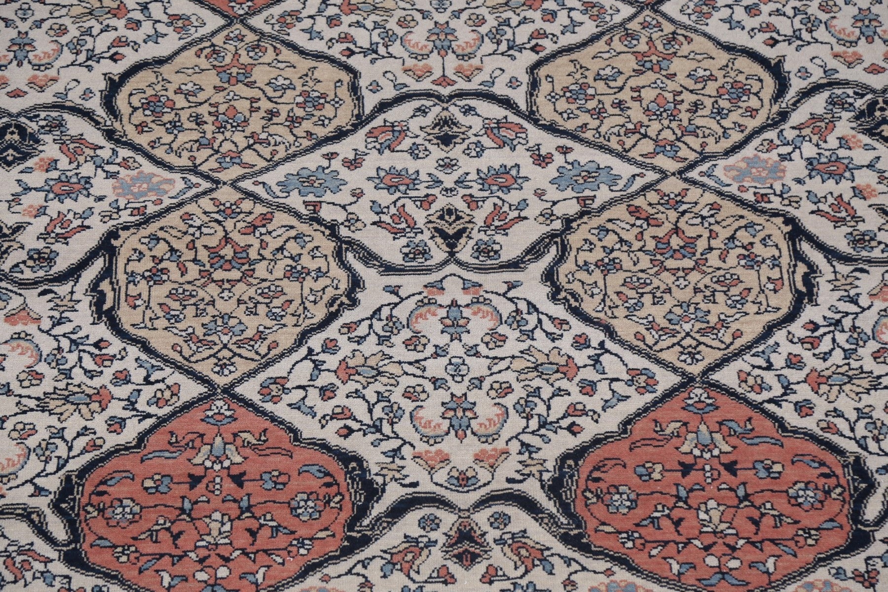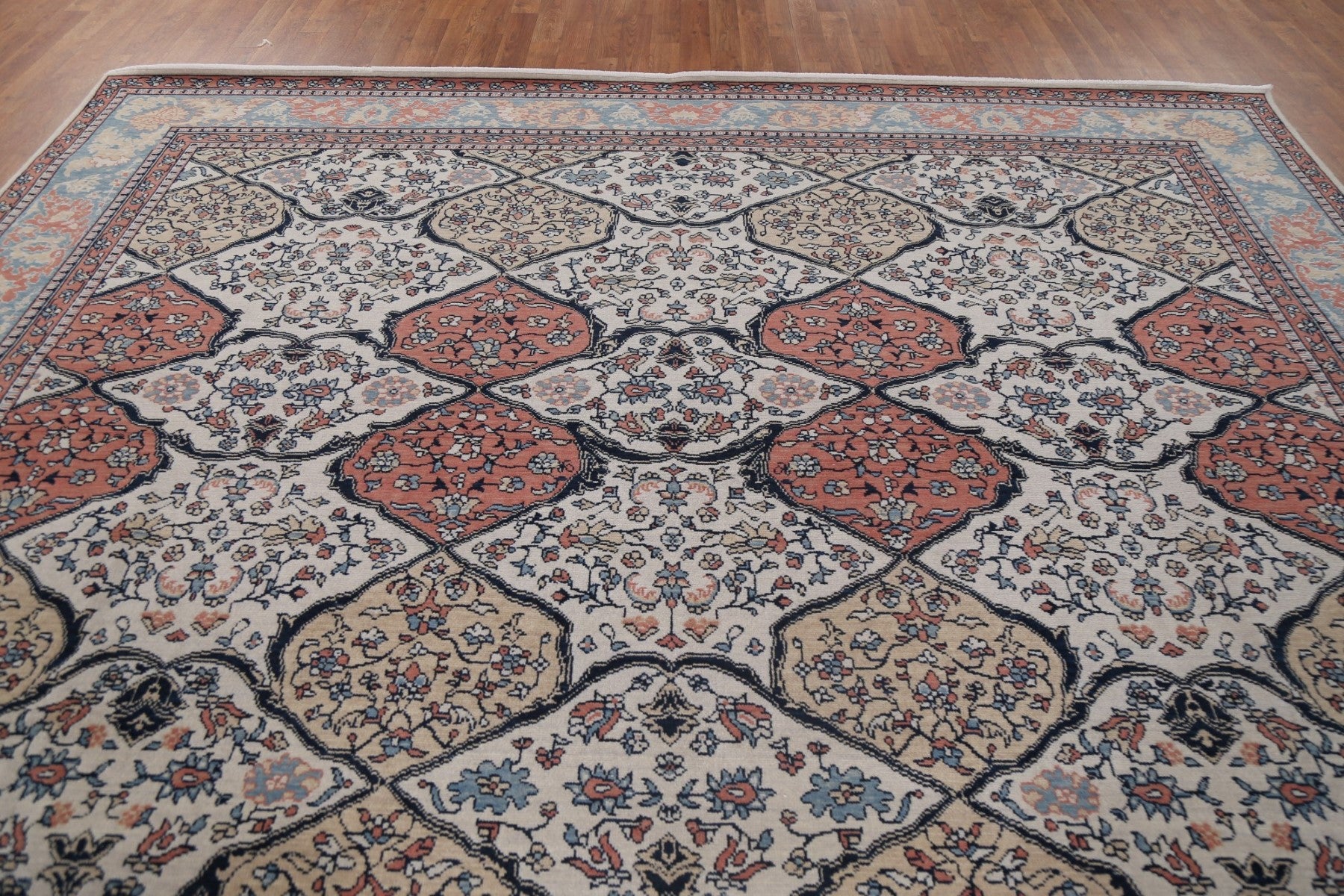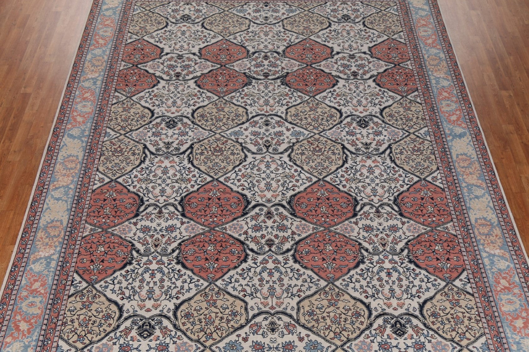 A Beautiful Genuine Turkey Bakhtiari rug is Hand Knotted by skillful weavers in Turkey with 100% Wool Material. This rug is in New, First Quality condition. dimensions are 12' 11'' X 9' 10'' in foot and 394 X 300 in centimeter. the primary color is Beige & Ivories.