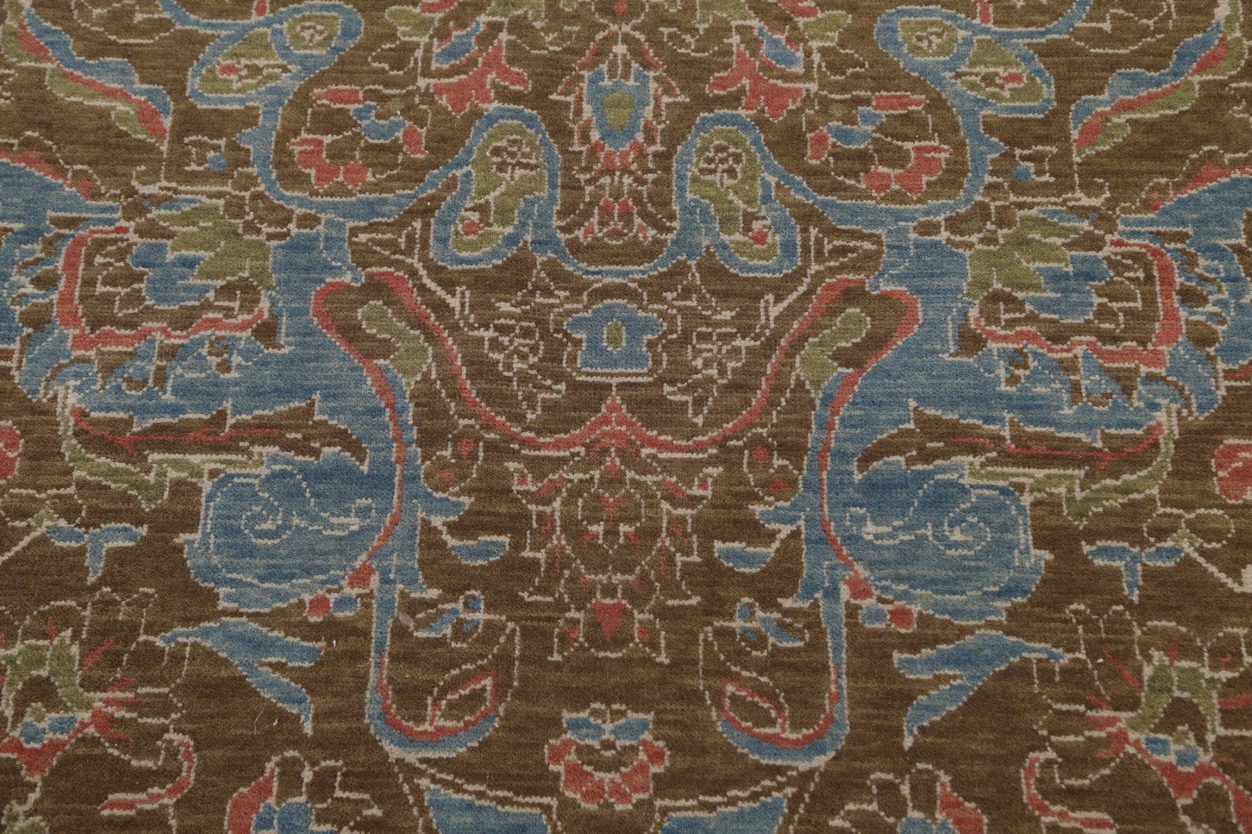 A Beautiful Genuine Turkey Oushak rug is Hand Knotted by skillful weavers in Turkey with 100% Wool Material. This rug is in New, First Quality condition. dimensions are 9' 9'' X 7' 0'' in foot and 297 X 213 in centimeter. the primary color is Brown.
