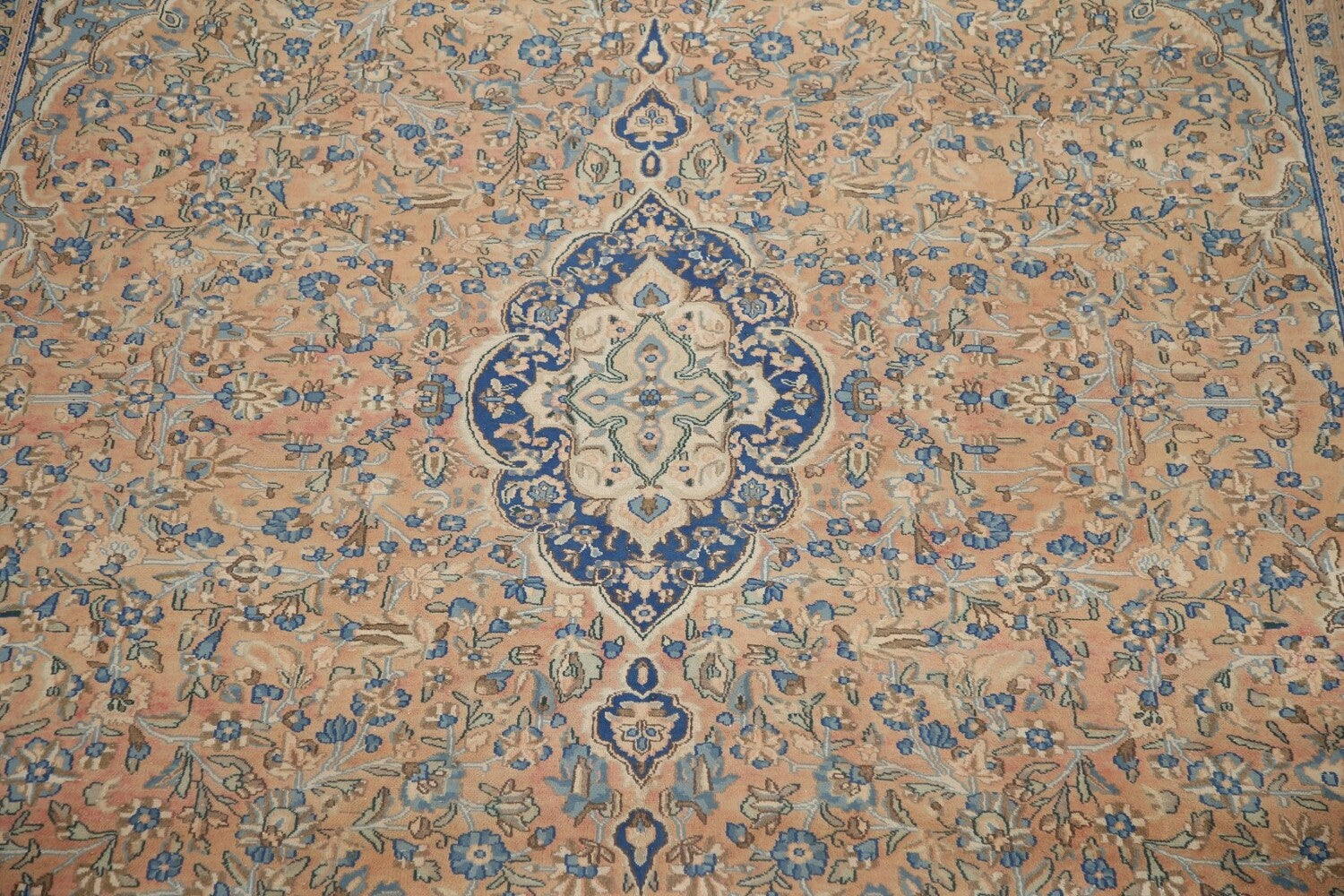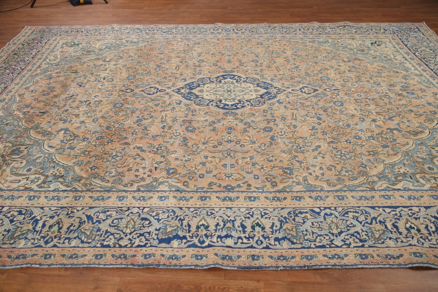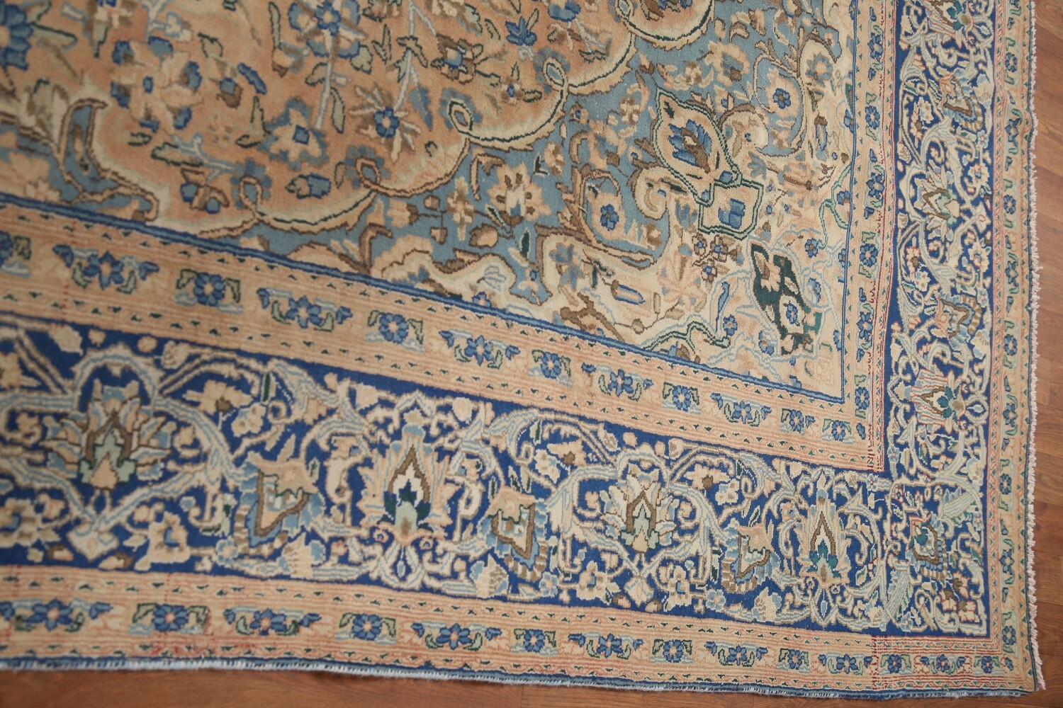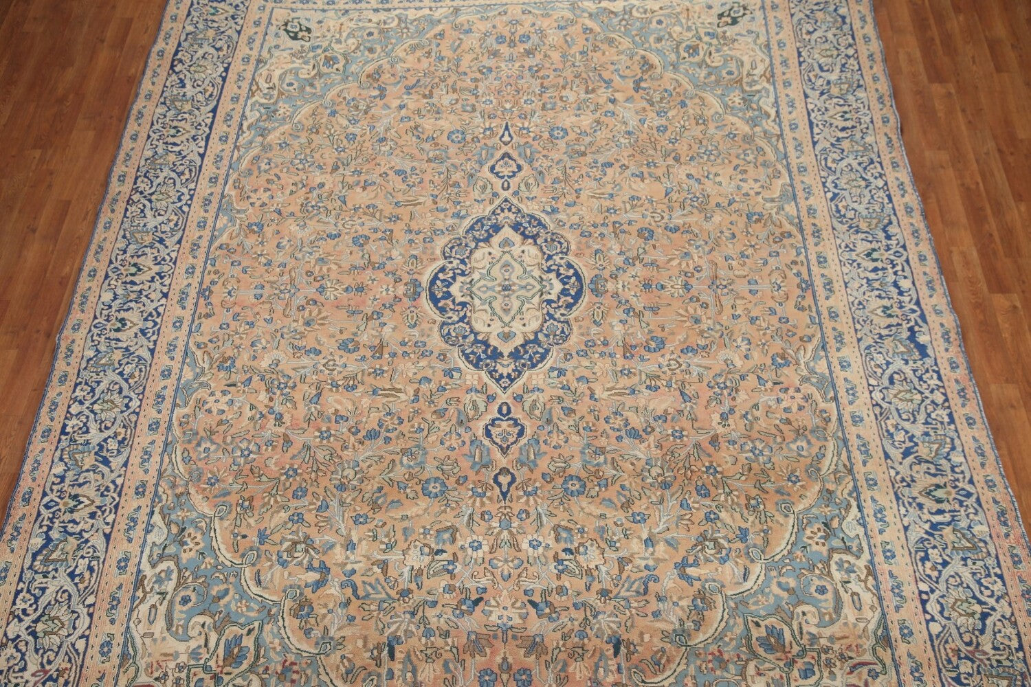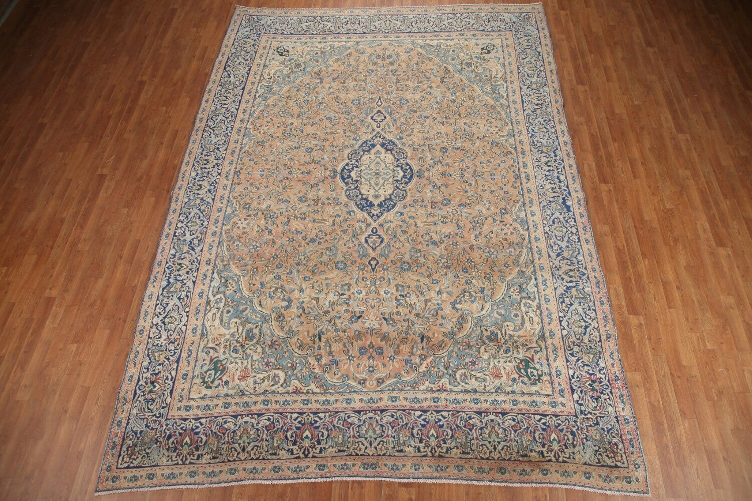 A Beautiful Genuine Persia ( Persia ) Kashan rug is Hand Knotted by skillful weavers in Persia ( Persia ) with 100% Wool Material. This rug is in Very Good (Faded Color) condition. dimensions are 13' 0'' X 9' 4'' in foot and 396 X 284 in centimeter. the primary color is Peach.