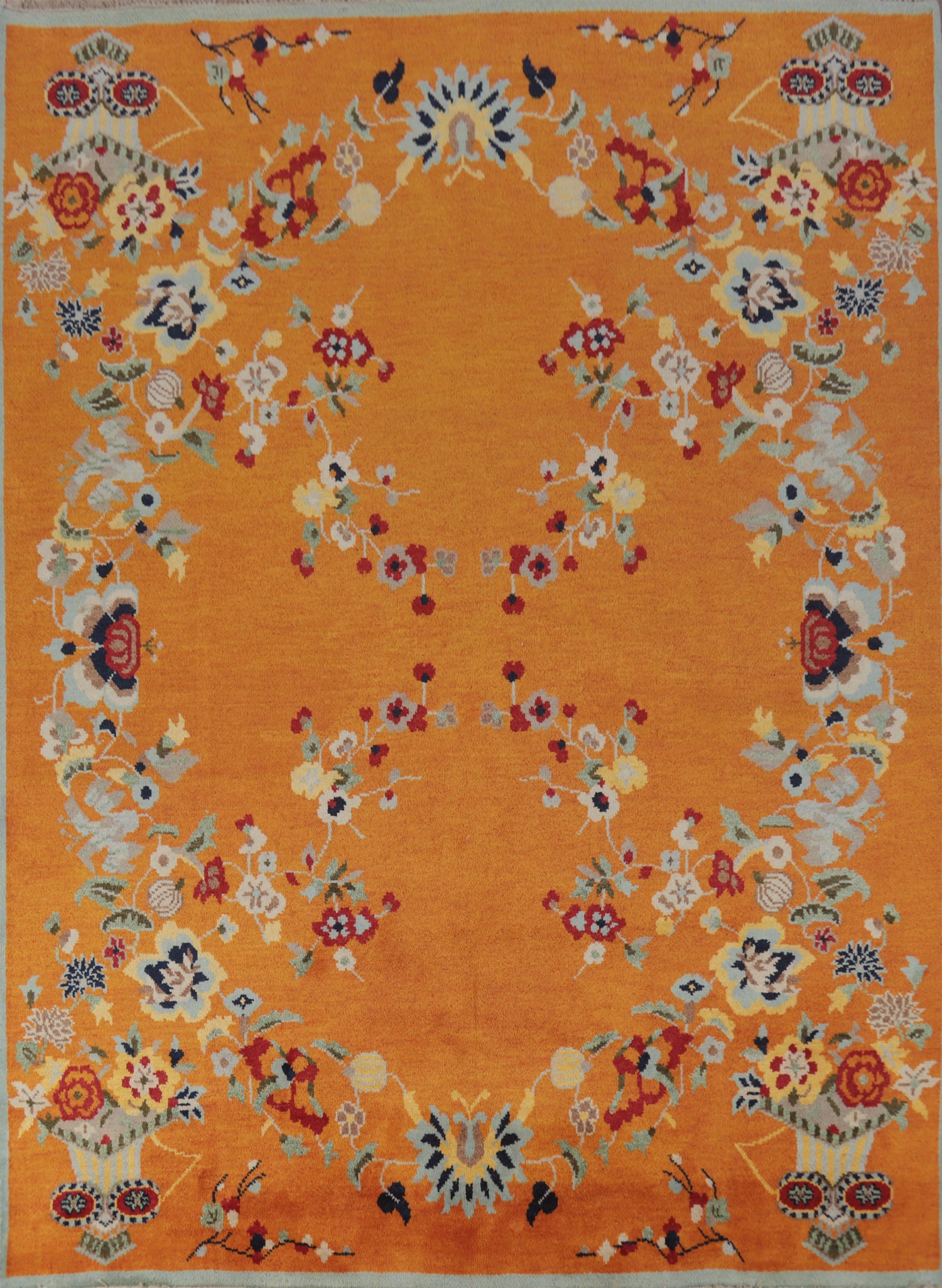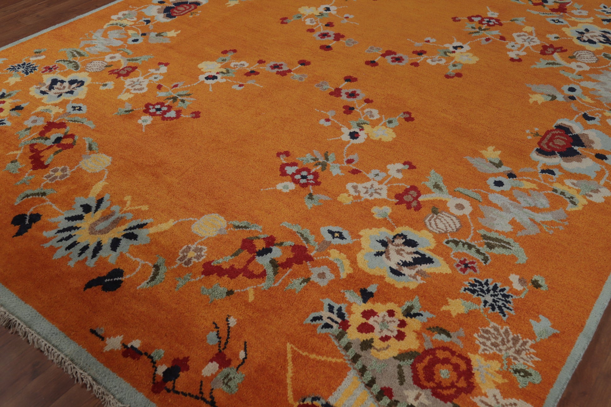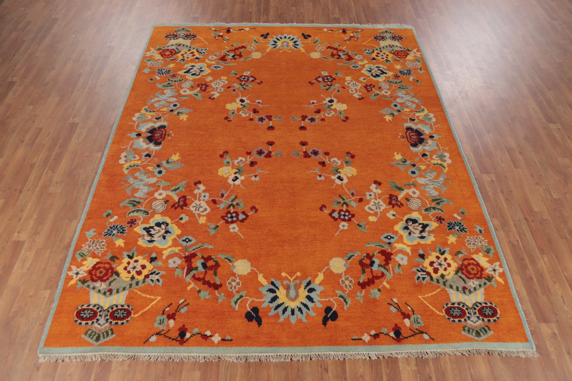 Floral Wool Orange Heriz Serapi Indian Area Rug 8x10