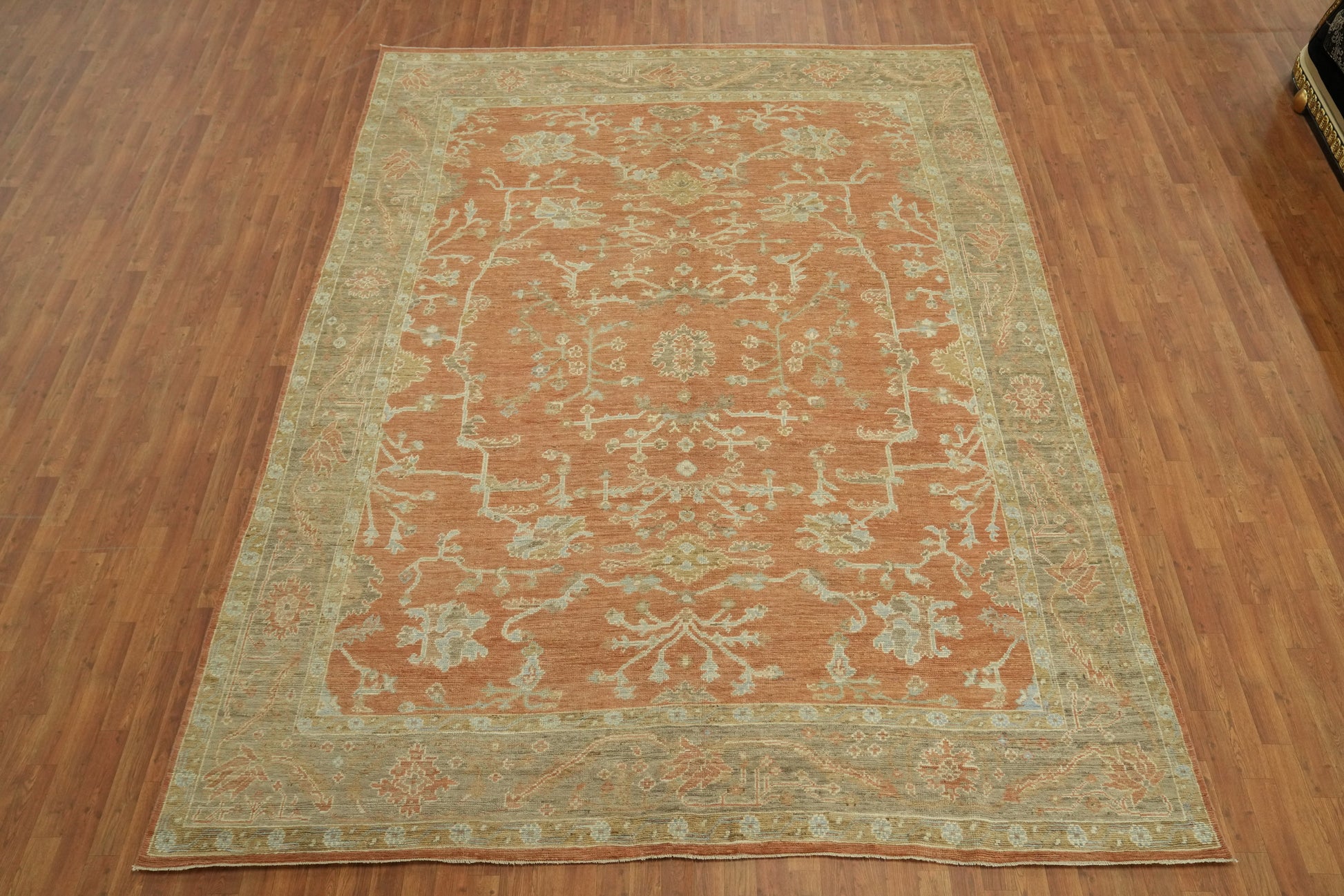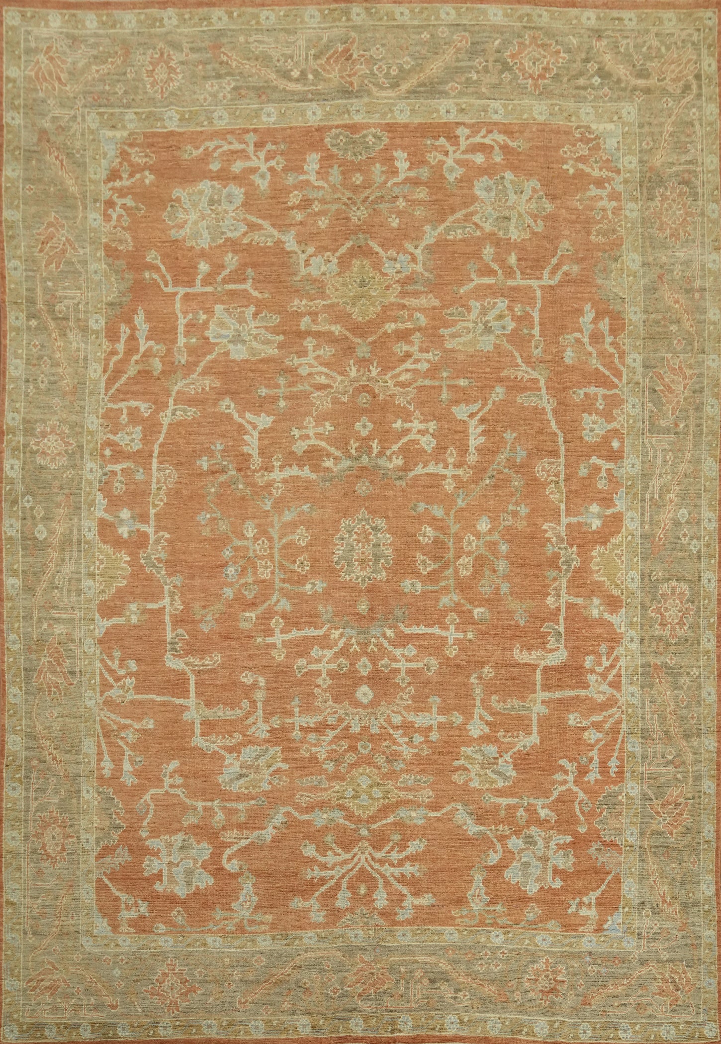 Floral Wool Orange Oushak Vegetable Dye Area Rug 9x12