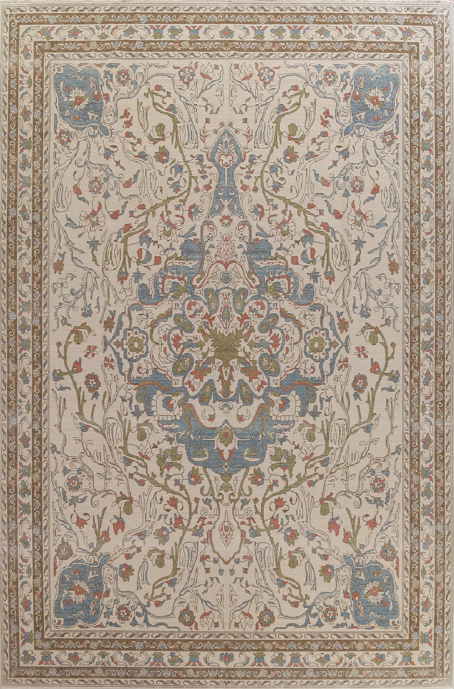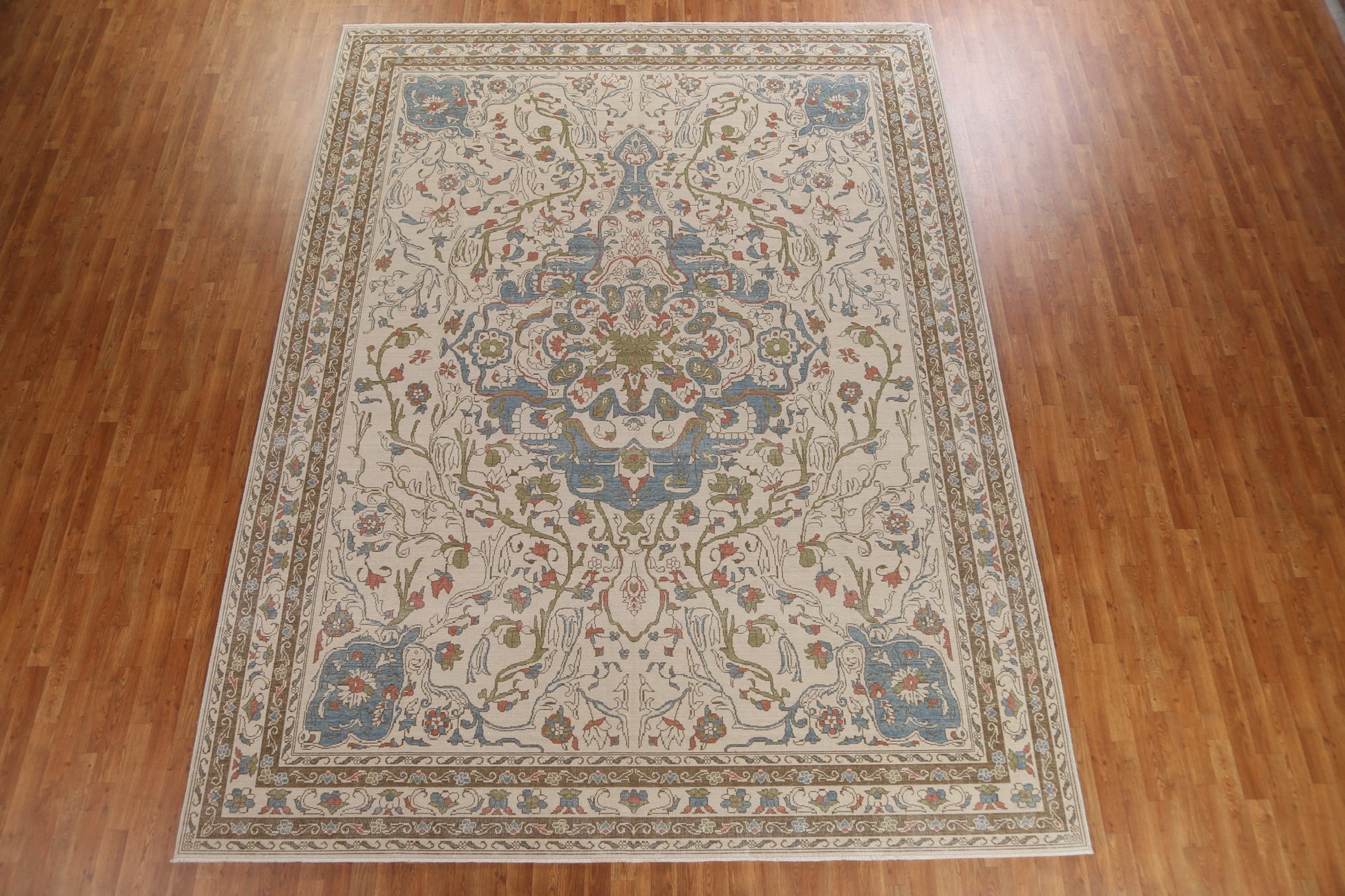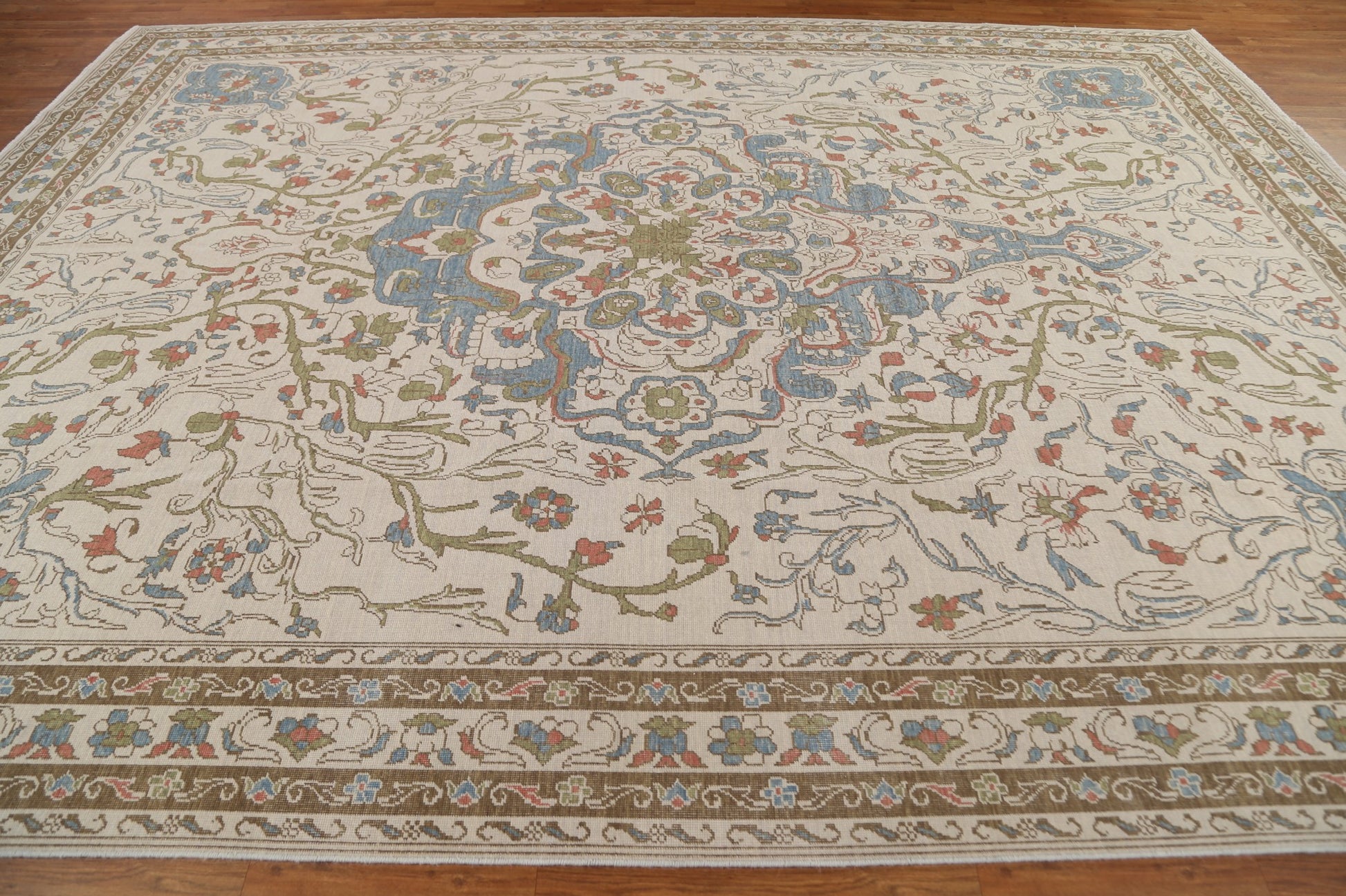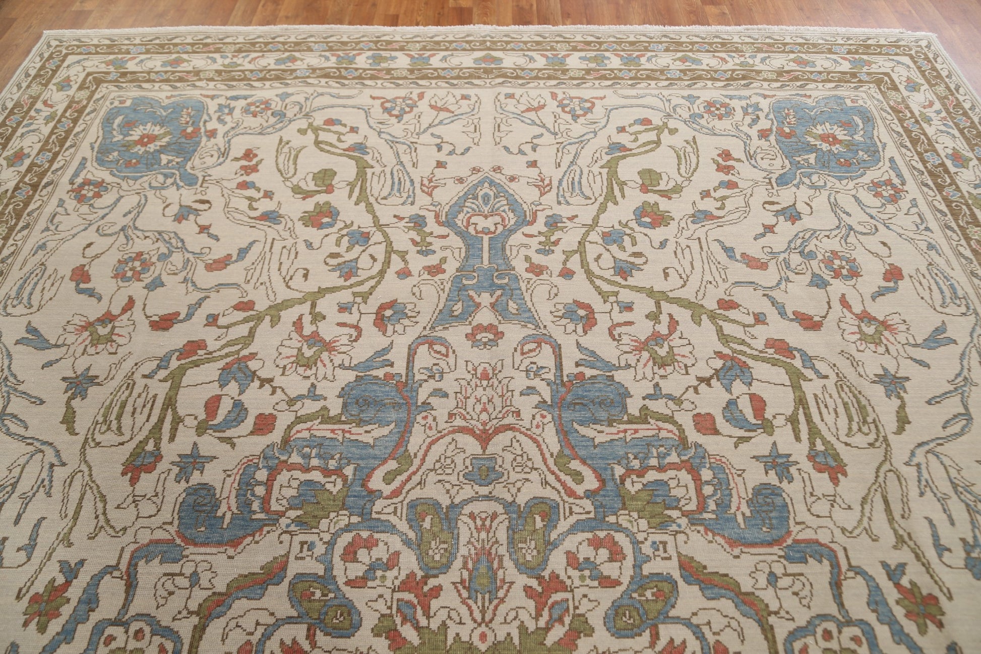 A Beautiful Genuine Turkey Oushak rug is Hand Knotted by skillful weavers in Turkey with 100% Wool Material. This rug is in New, First Quality condition. dimensions are 13' 0'' X 9' 9'' in foot and 396 X 297 in centimeter. the primary color is Beige & Ivories.