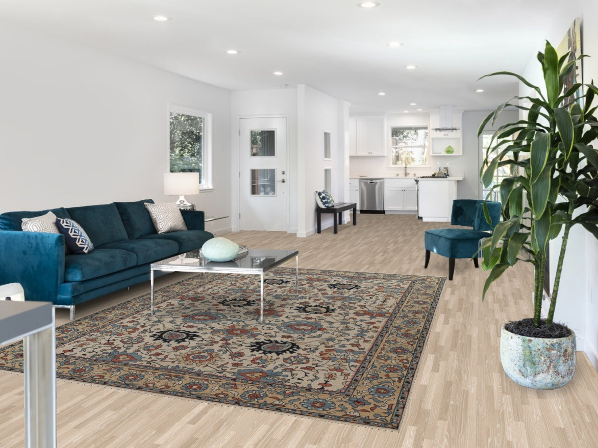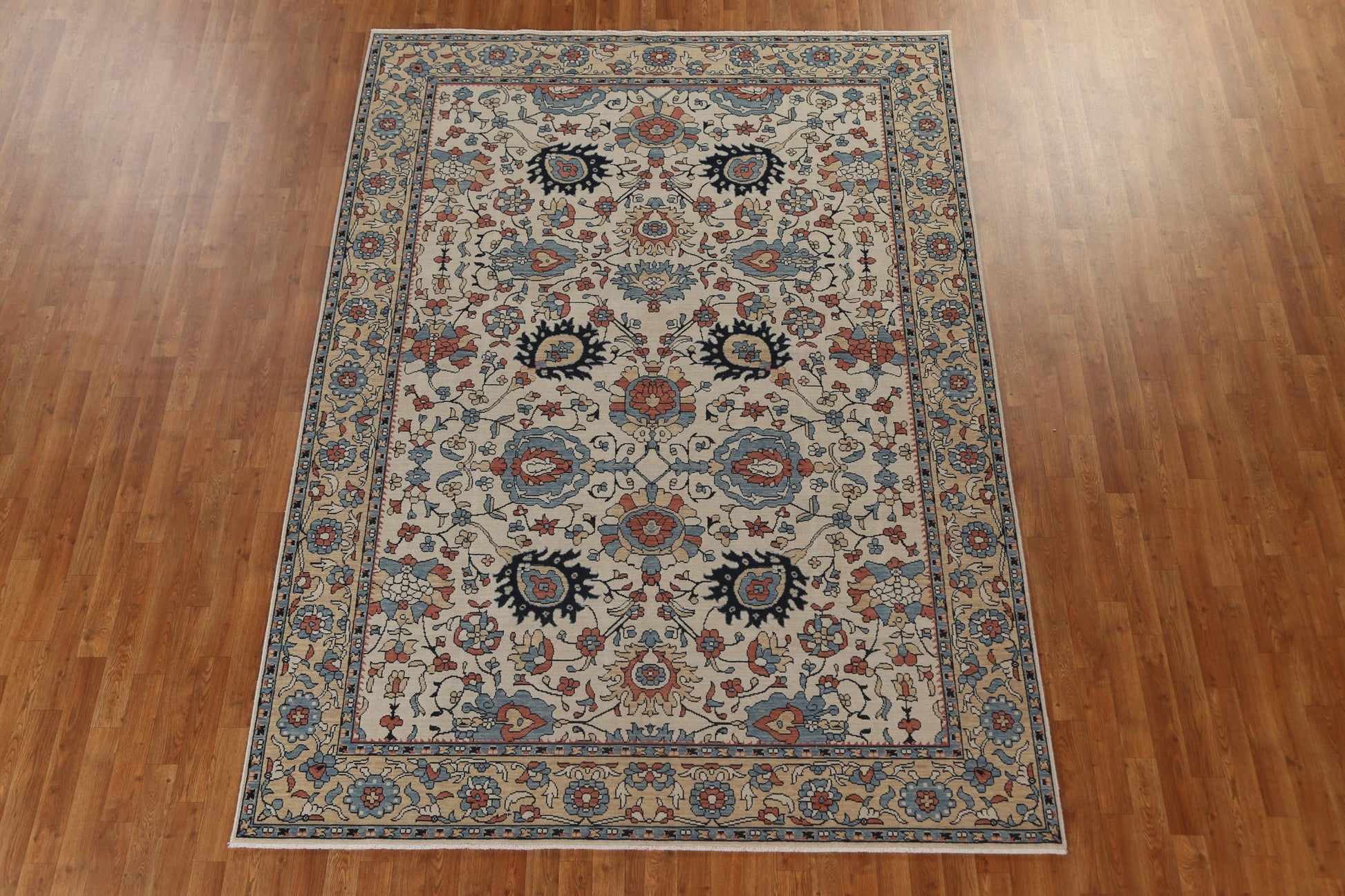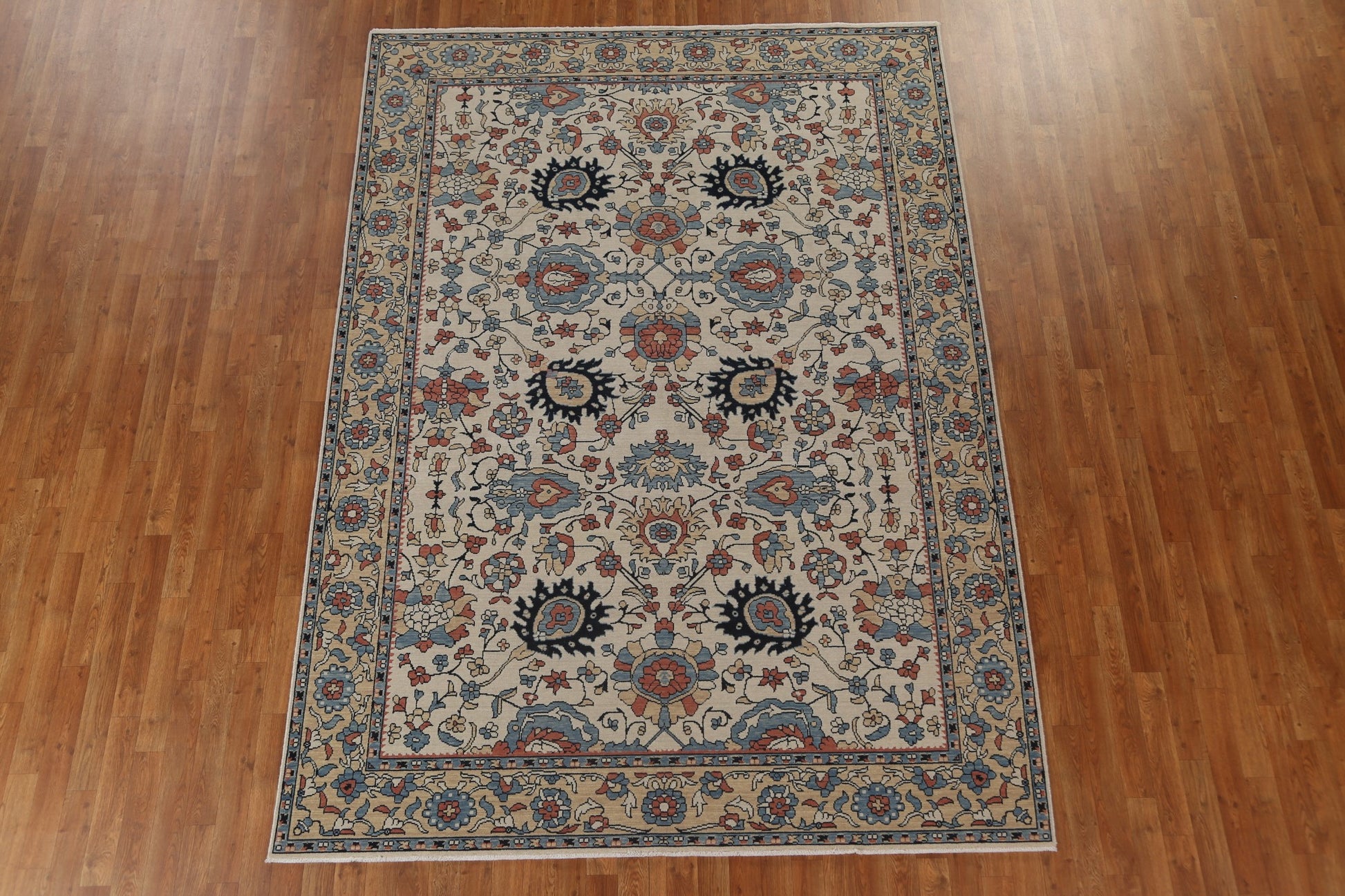A Beautiful Genuine Turkey Sultanabad (Ziegler) rug is Hand Knotted by skillful weavers in Turkey with 100% Wool Material. This rug is in New, First Quality condition. dimensions are 9' 9'' X 7' 0'' in foot and 297 X 213 in centimeter. the primary color is Beige & Ivories.