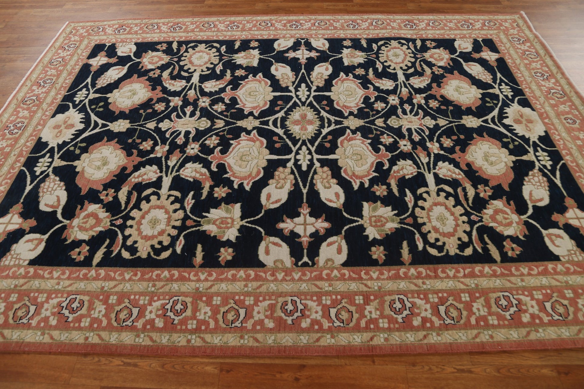 A Beautiful Genuine Turkey Sultanabad (Ziegler) rug is Hand Knotted by skillful weavers in Turkey with 100% Wool Material. This rug is in New, First Quality condition. dimensions are 9' 9'' X 7' 0'' in foot and 297 X 213 in centimeter. the primary color is Navy Blue & Blues.