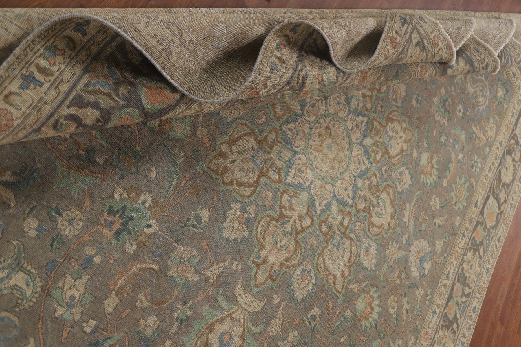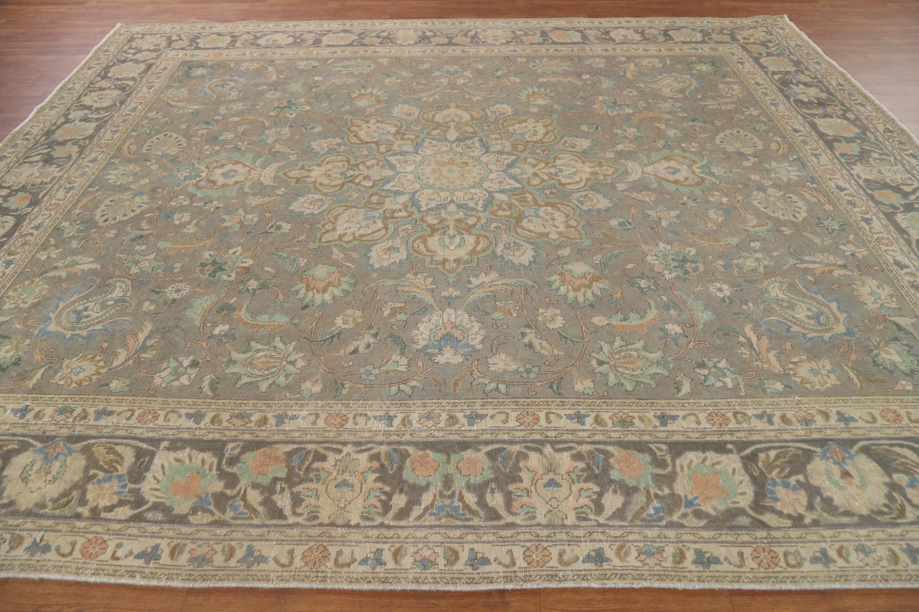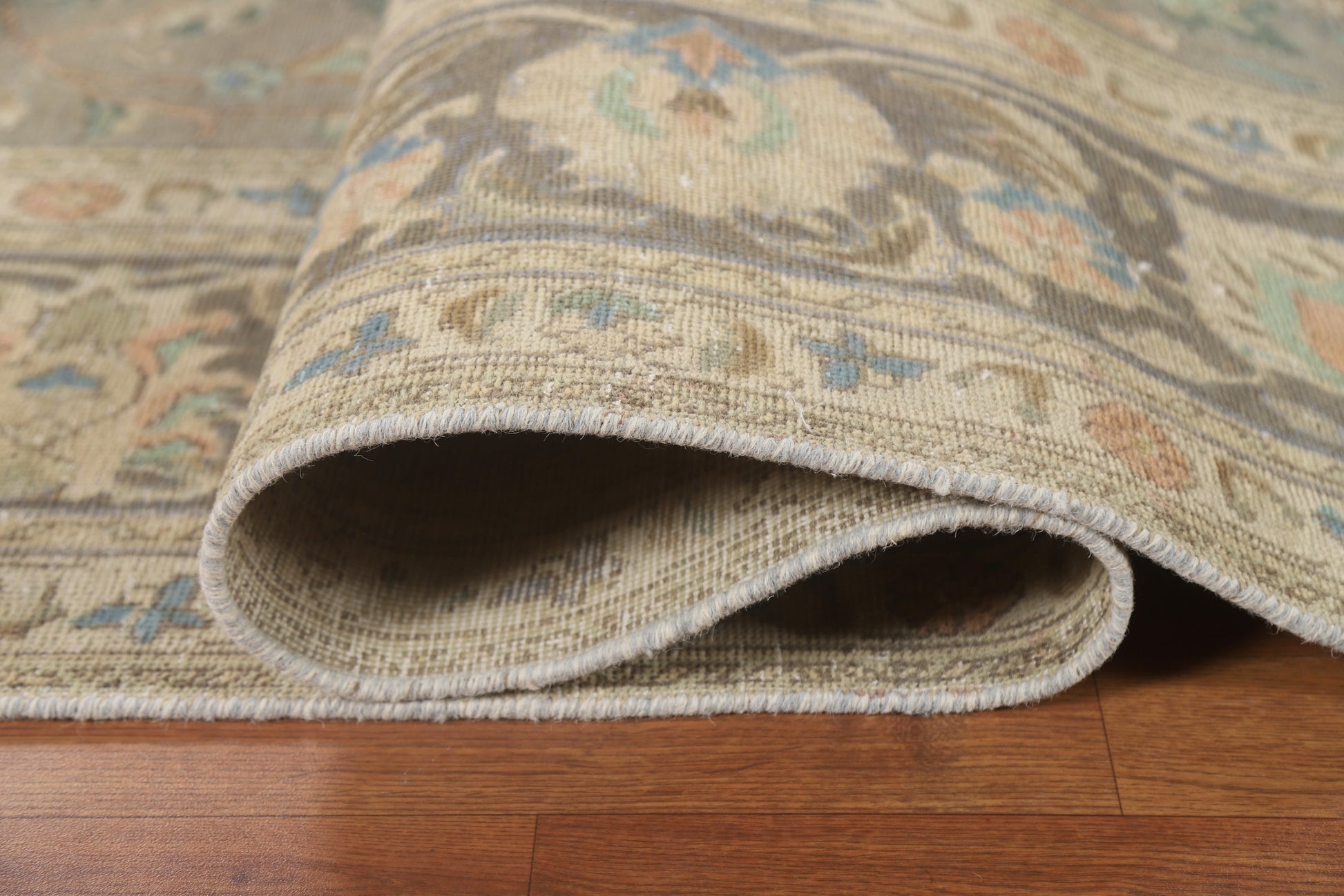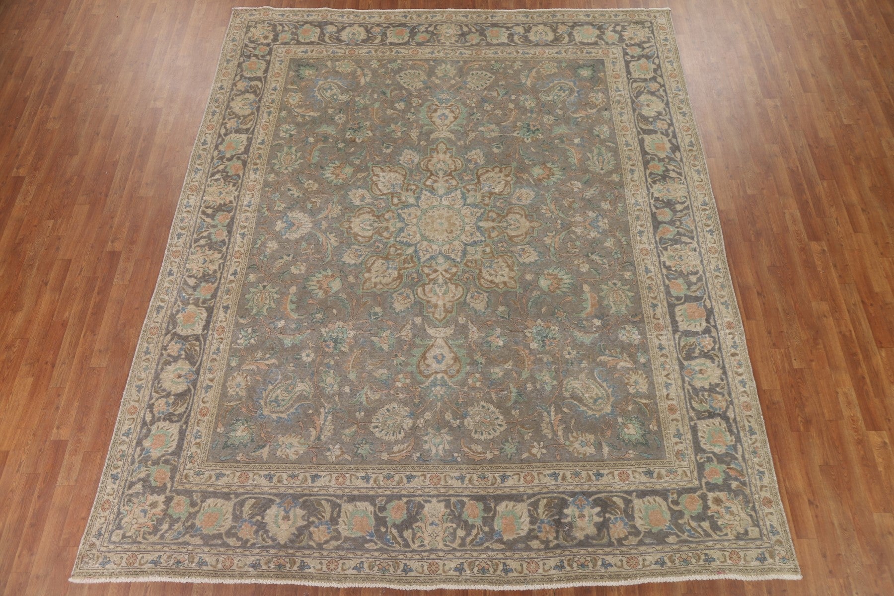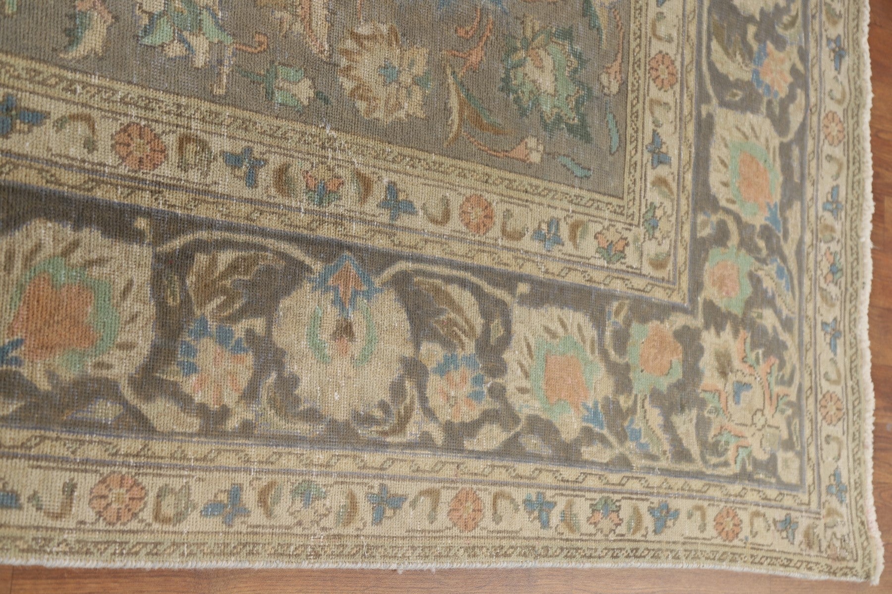 A Beautiful Genuine Persia ( Persia ) Tabriz rug is Hand Knotted by skillful weavers in Persia ( Persia ) with 100% Wool Material. This rug is in Very Good (Low Pile) condition. dimensions are 11' 3'' X 9' 3'' in foot and 343 X 282 in centimeter. the primary color is Brown.